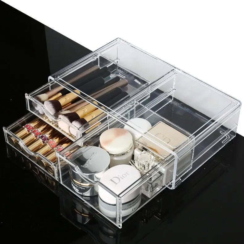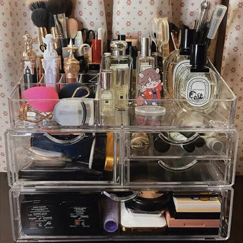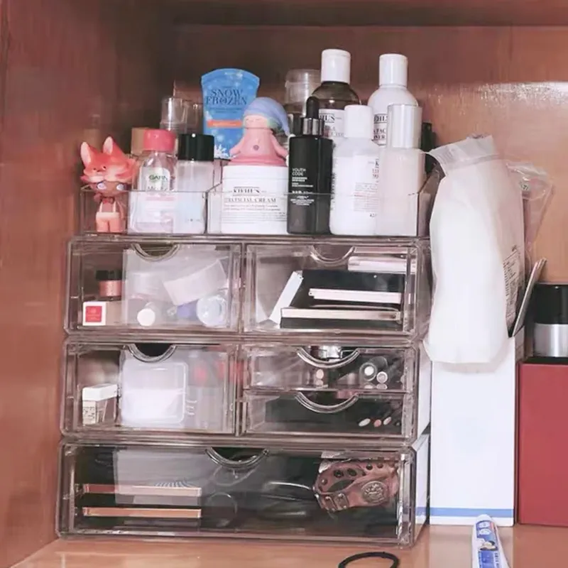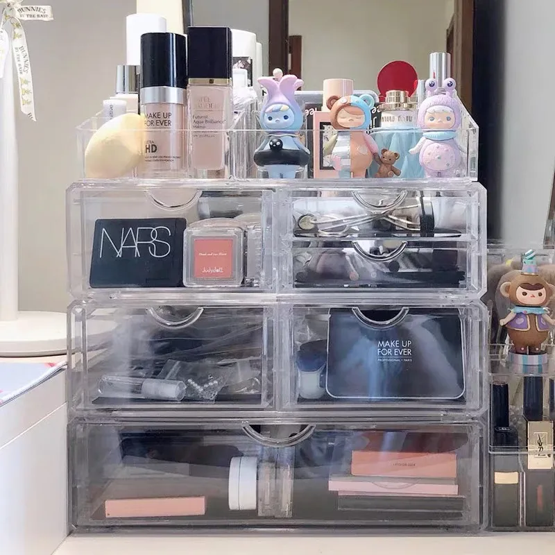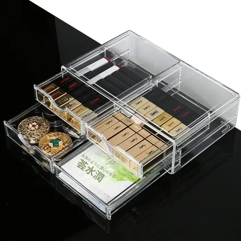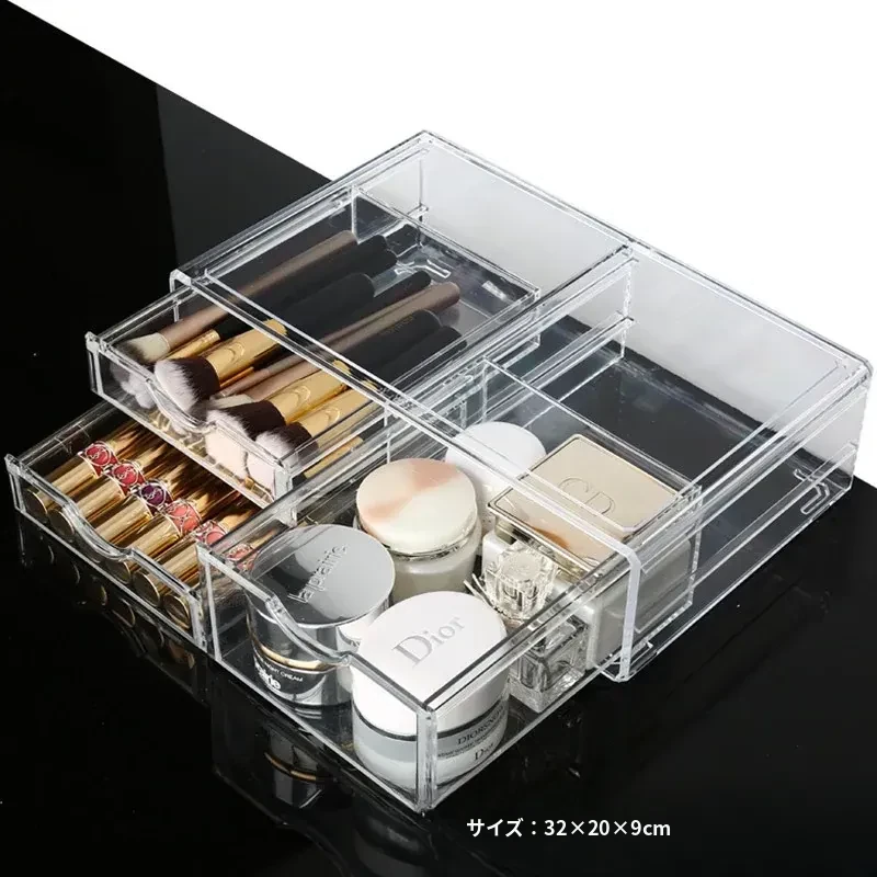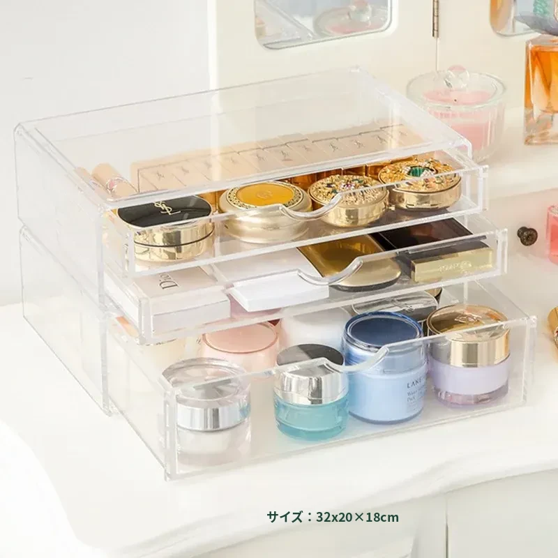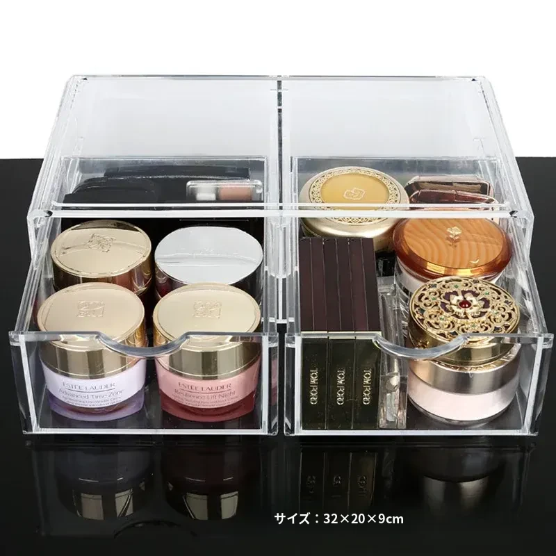 人気の化粧品収納ボックス!自宅のデスクにぴったりな大容量の口紅・スキンケア収納ラック。アクリル製の引き出しで、すっきり整理!メイク台を美しく保ち、毎日のメイクアップをもっと楽しく!