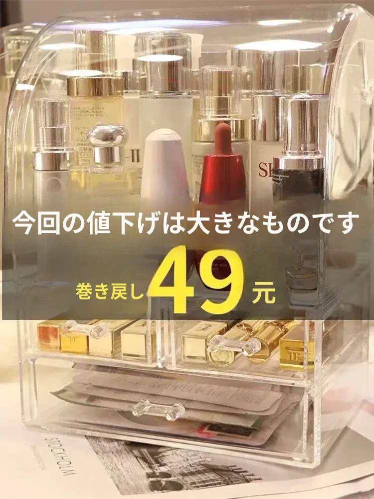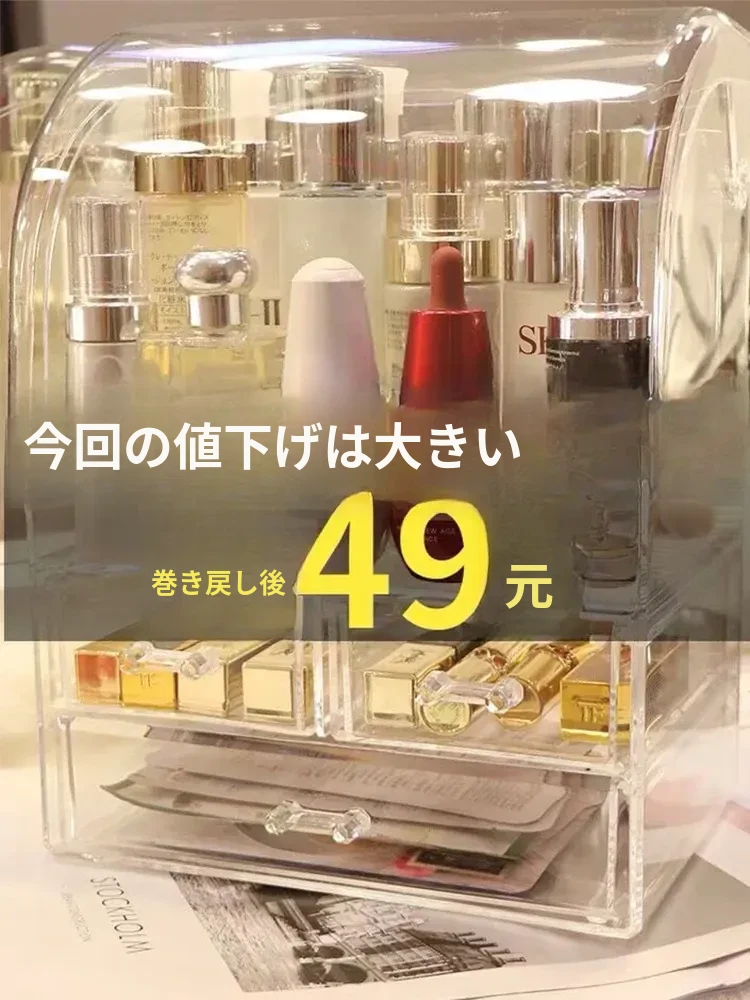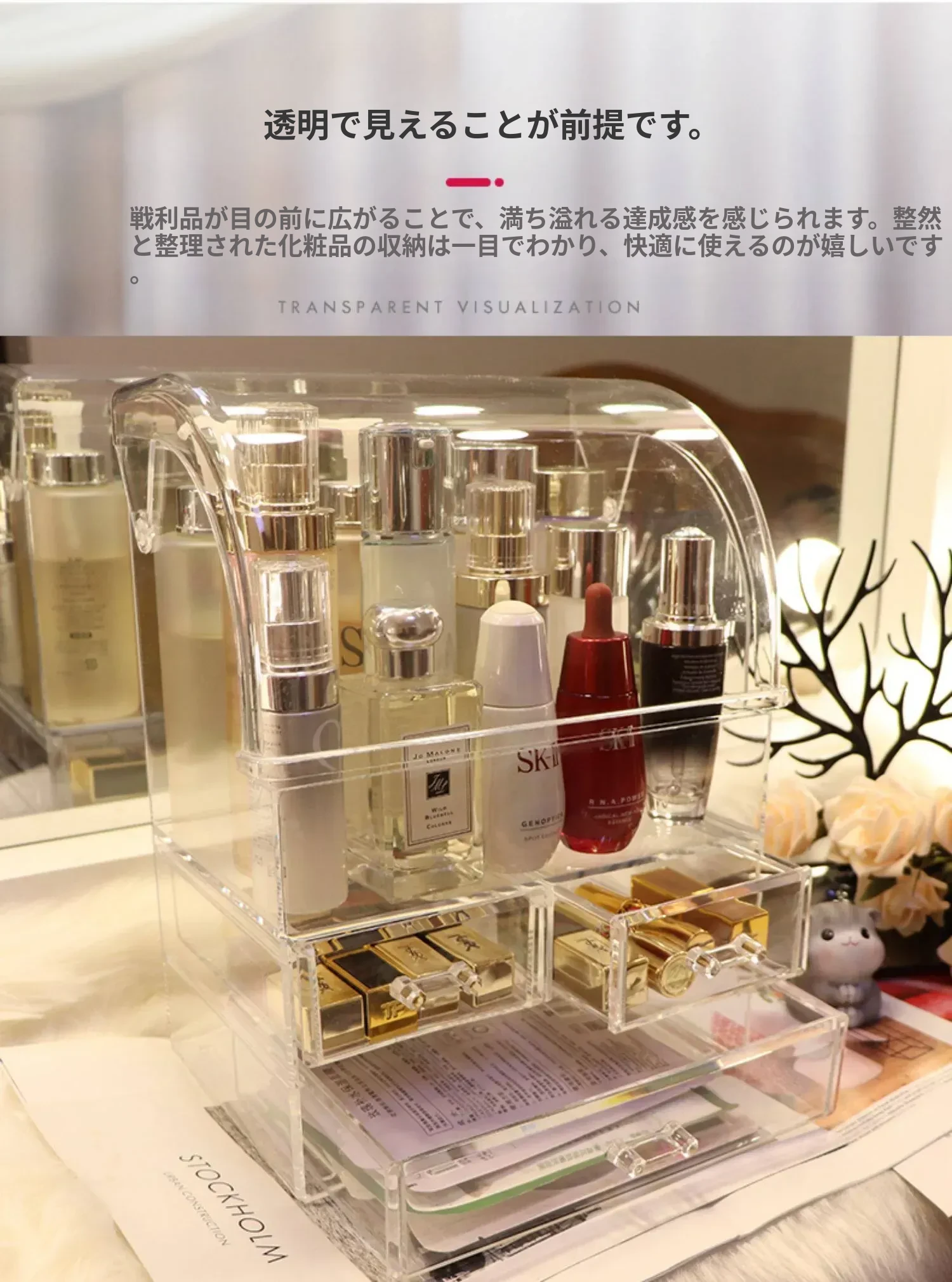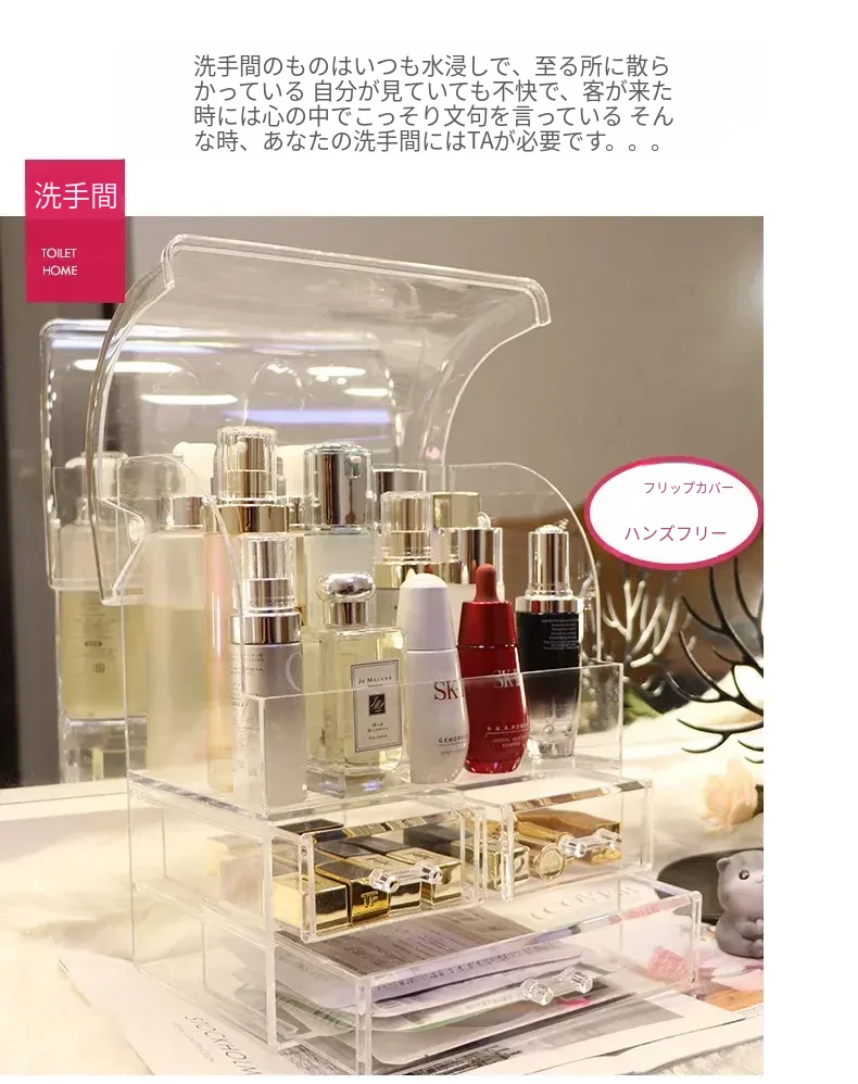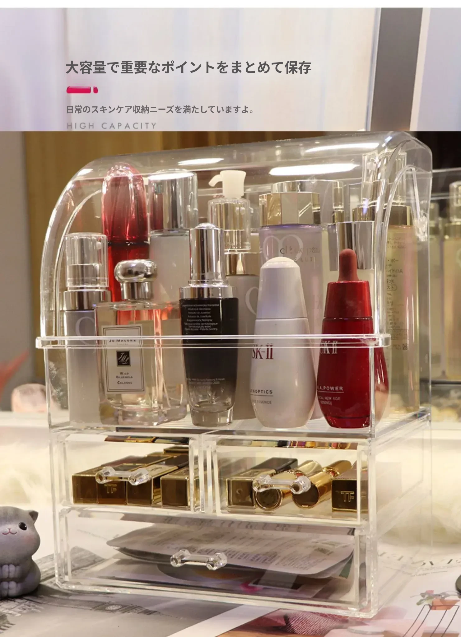 人気の透明防塵コスメ収納ボックス!アクリル製で美しいスキンケアアイテムやフェイスマスクをおしゃれに整理。メイク台やデスクの必需品、あなたの毎日を便利に彩ります。