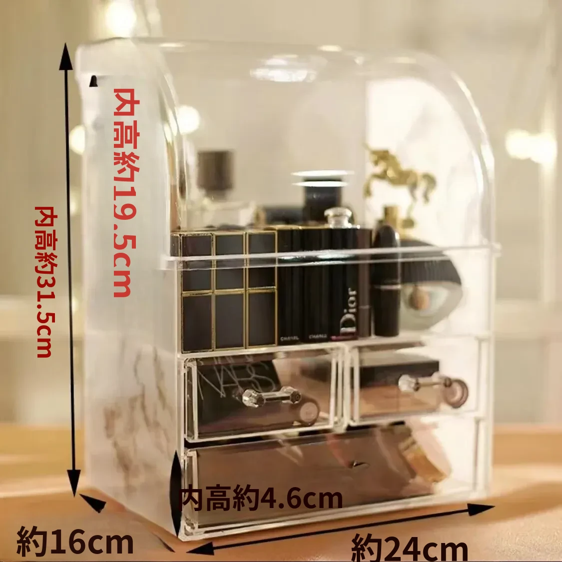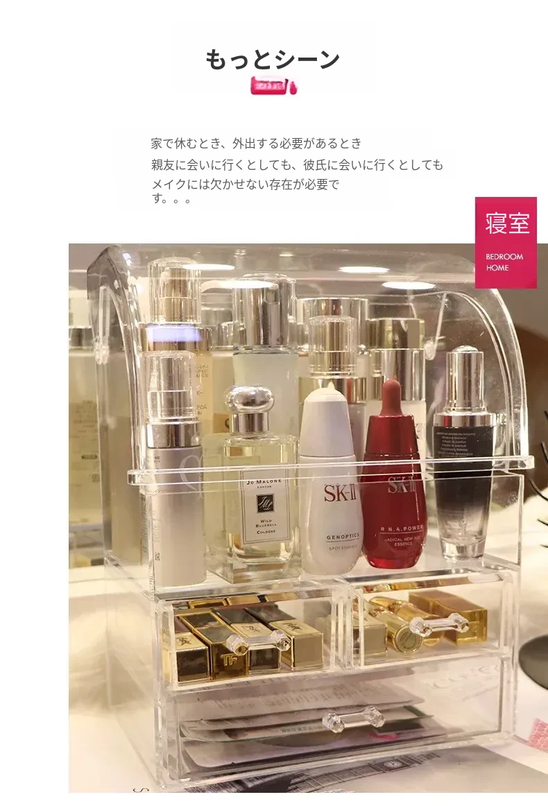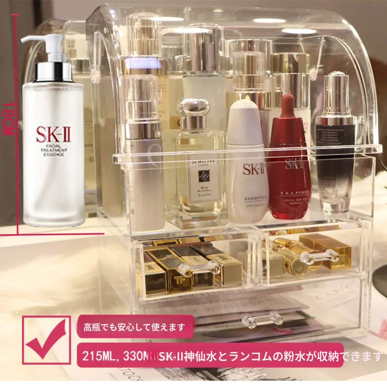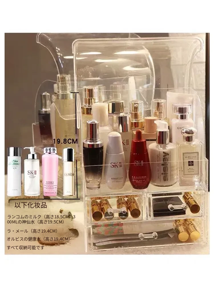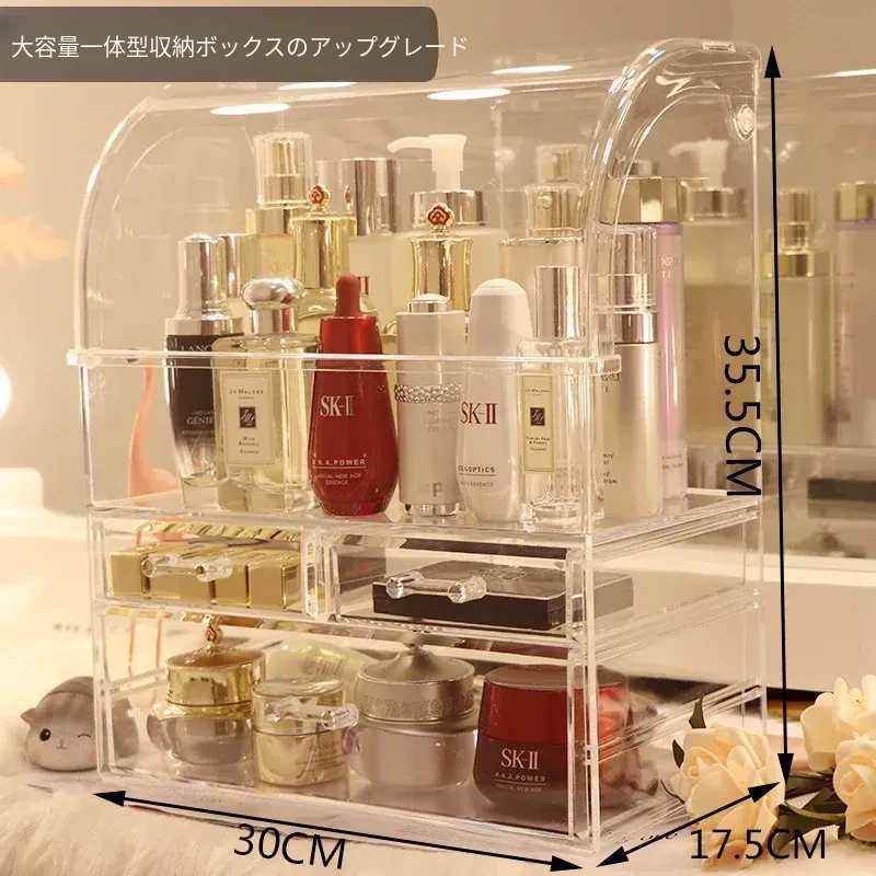 人気の透明防塵コスメ収納ボックス!アクリル製で美しいスキンケアアイテムやフェイスマスクをおしゃれに整理。メイク台やデスクの必需品、あなたの毎日を便利に彩ります。