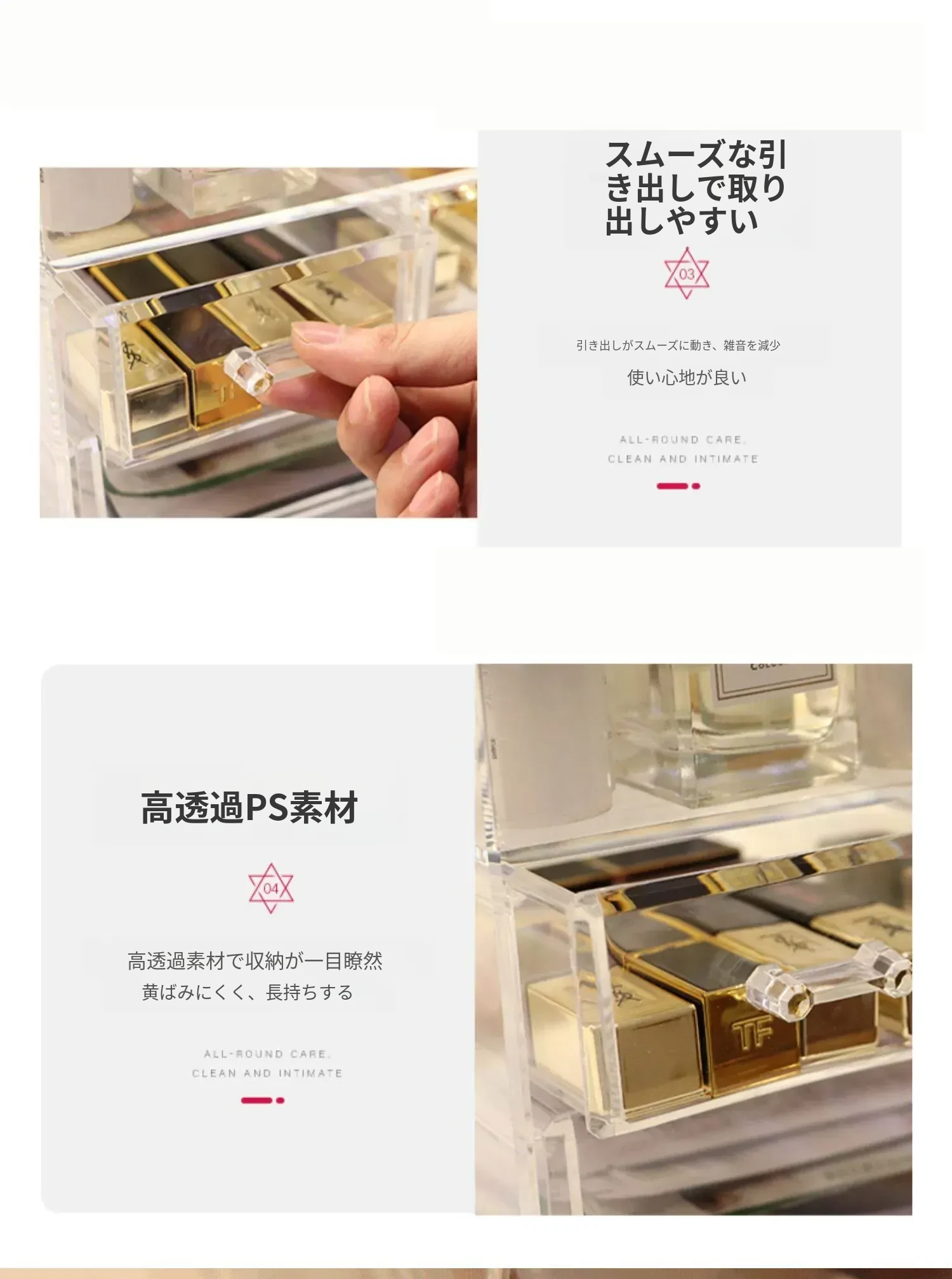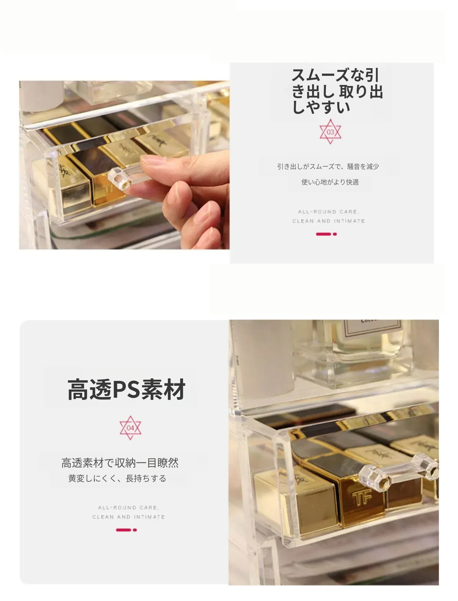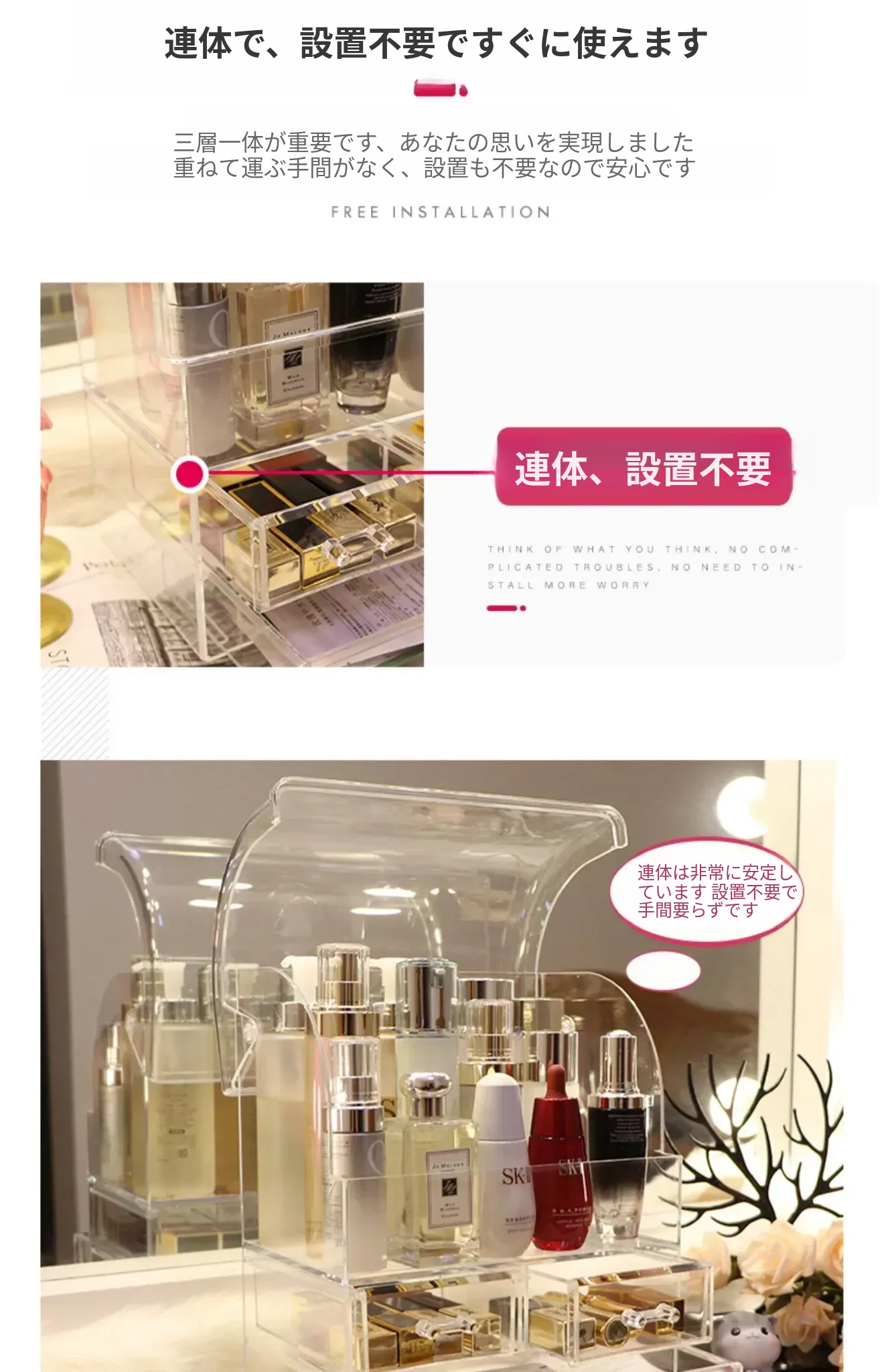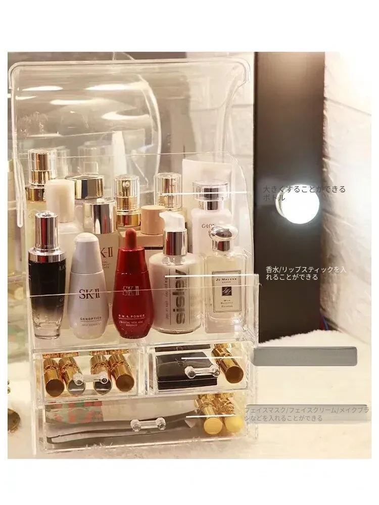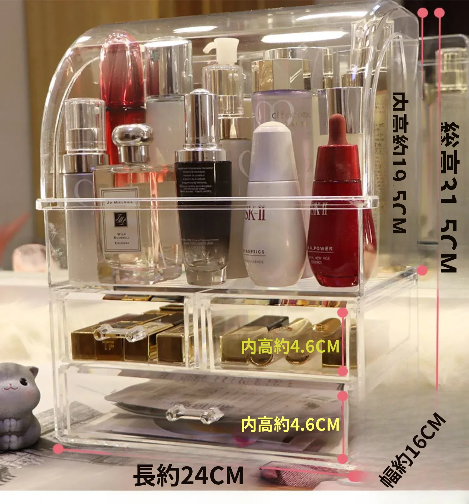 人気の透明防塵コスメ収納ボックス!アクリル製で美しいスキンケアアイテムやフェイスマスクをおしゃれに整理。メイク台やデスクの必需品、あなたの毎日を便利に彩ります。