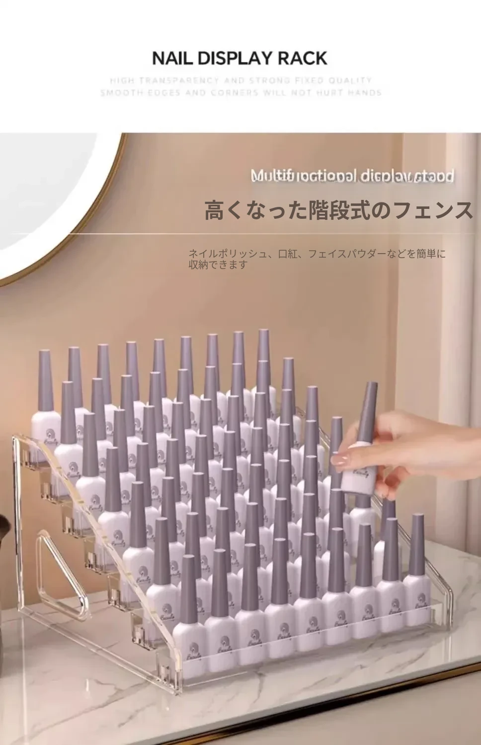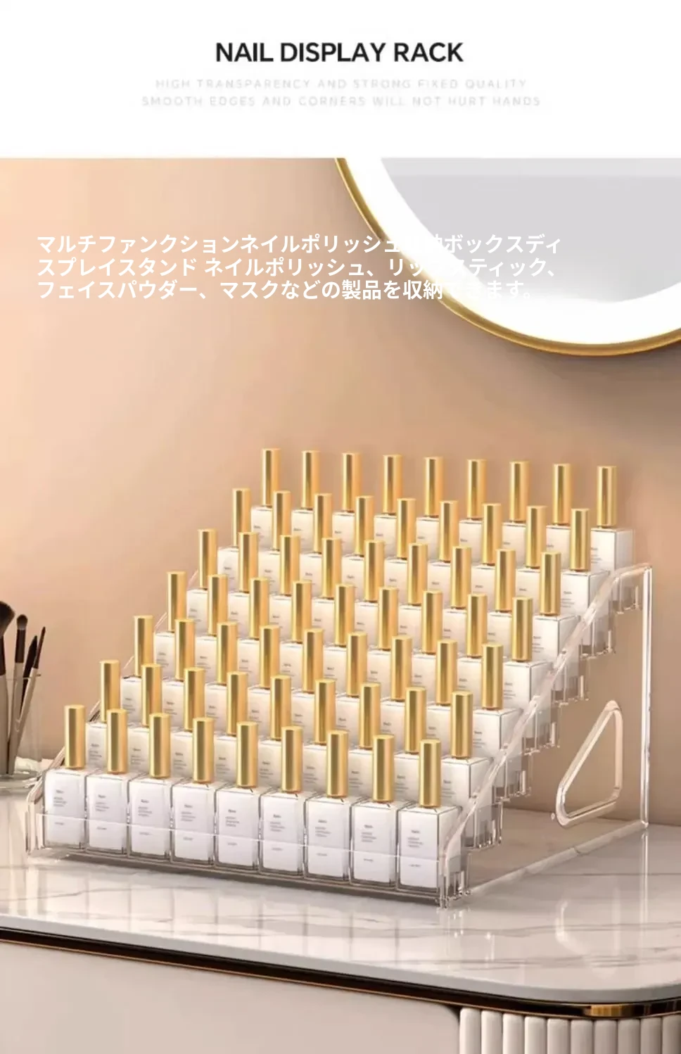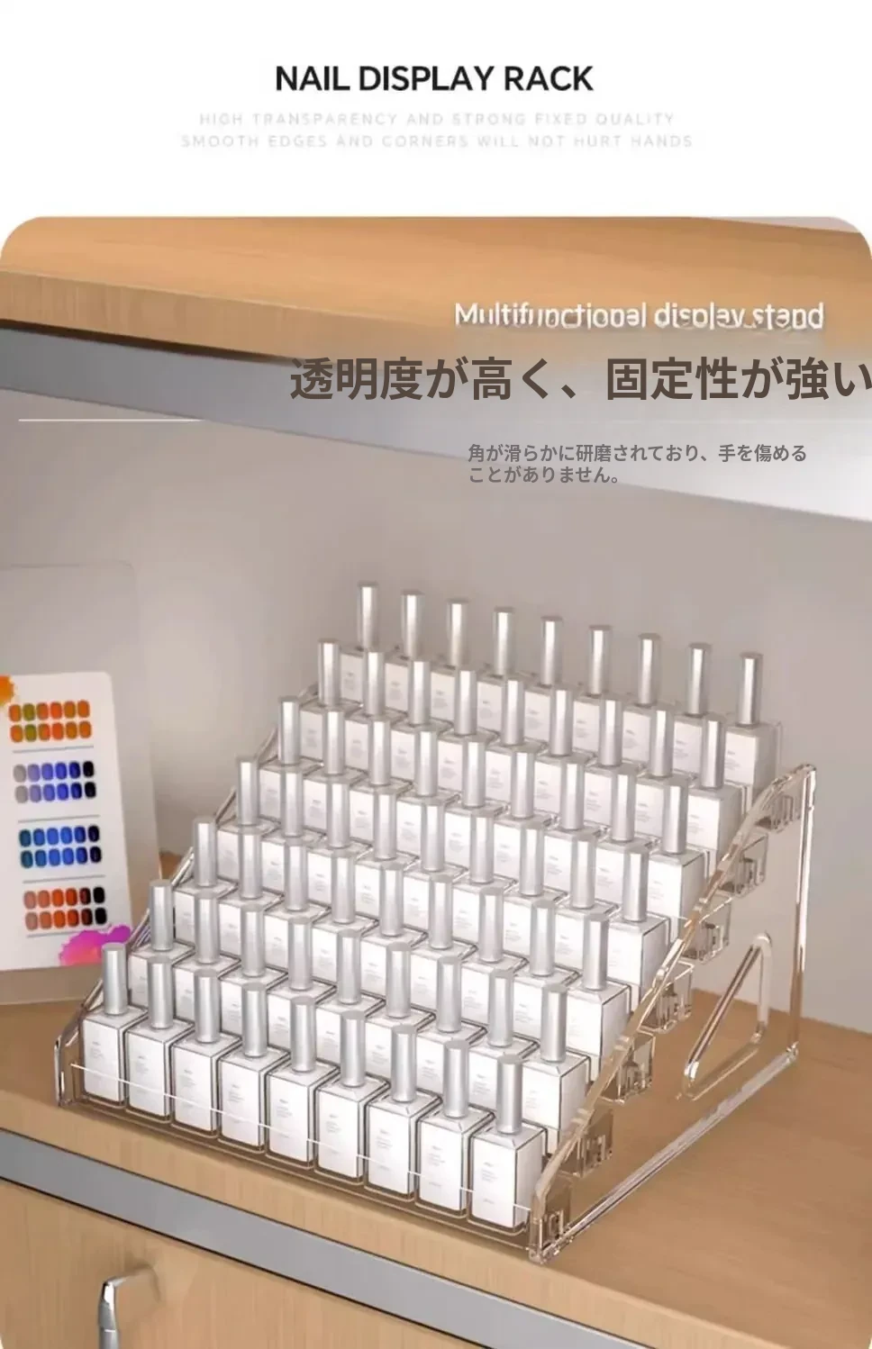 アクリル製ネイルポリッシュ収納ボックス - 美しいネイルアートのための透明なディスプレイラック!あなたのネイル用品をスタイリッシュに整理して、いつでも簡単にアクセスできます。おしゃれなデザインで、どんなインテリアにもぴったり!