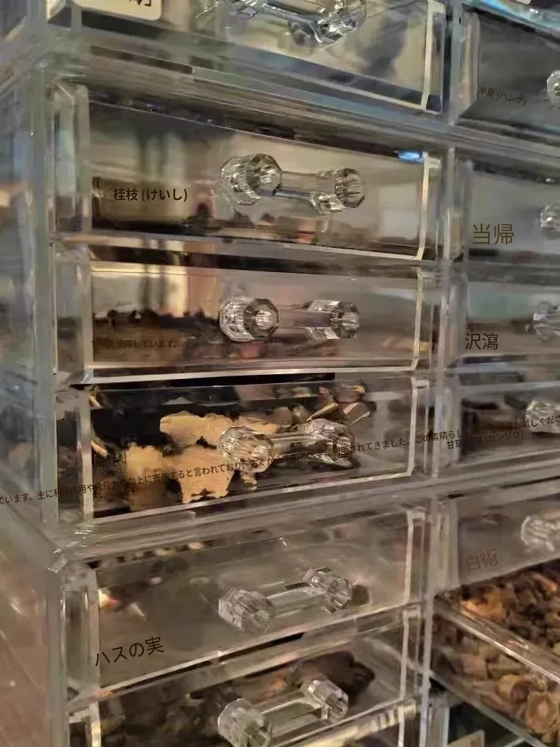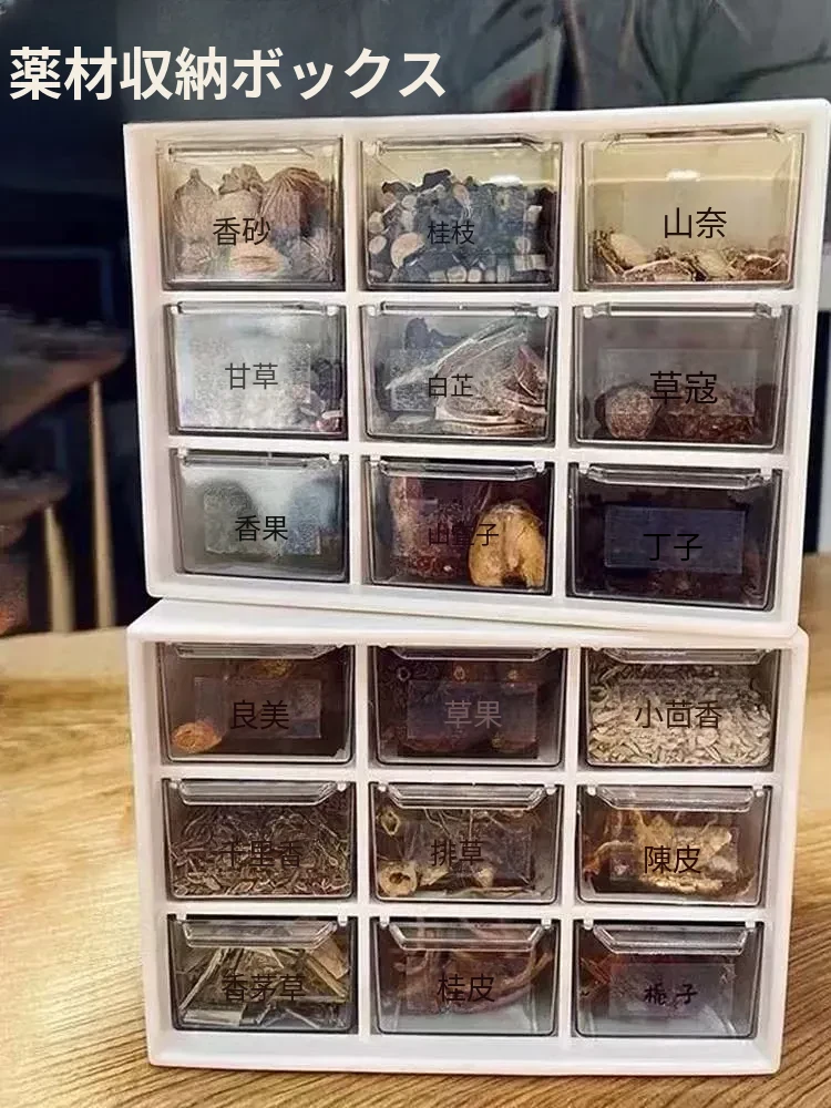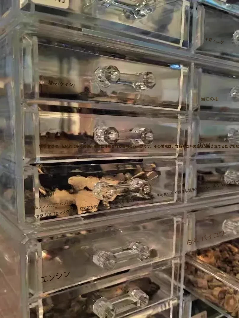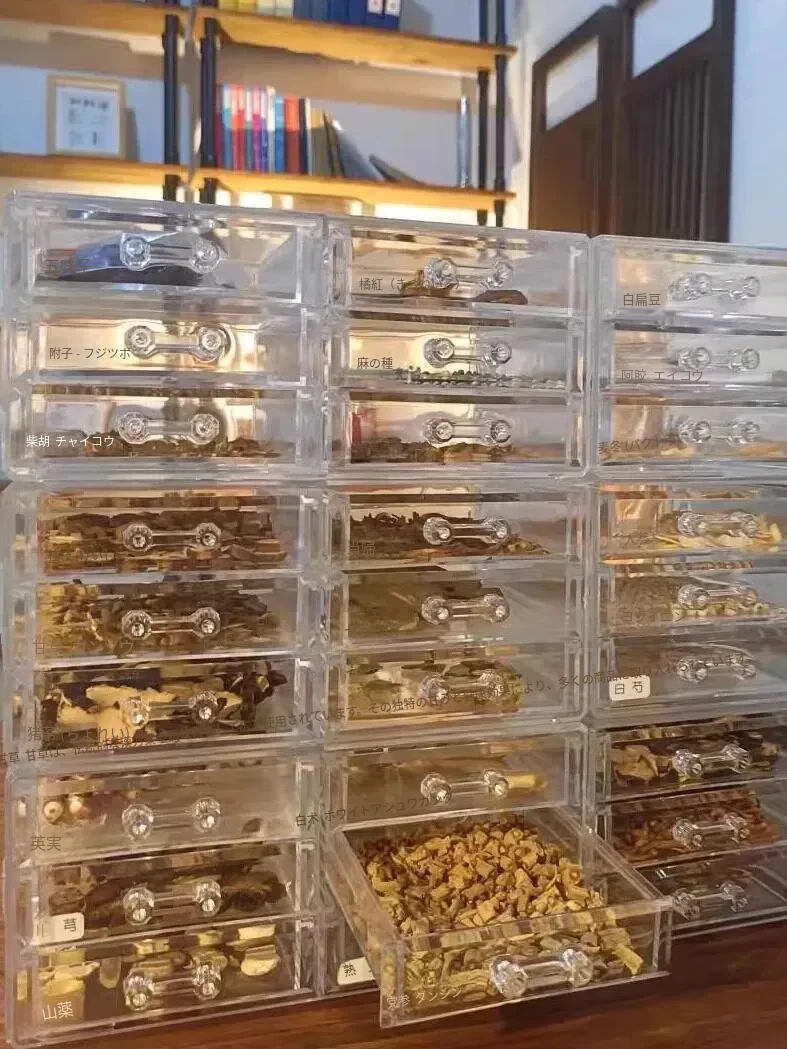 小型家庭用中薬収納ボックス - 引き出し式薬材収納ケース、透明防塵アクリル製の多層設計で、おしゃれで便利な薬収納を実現!