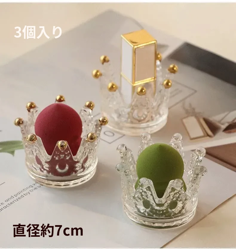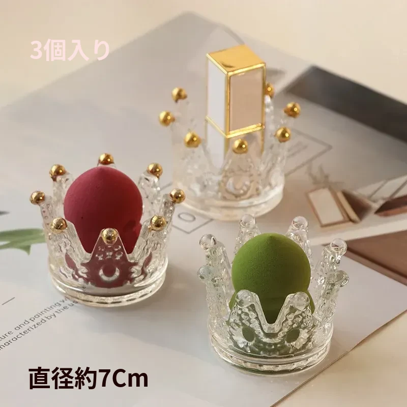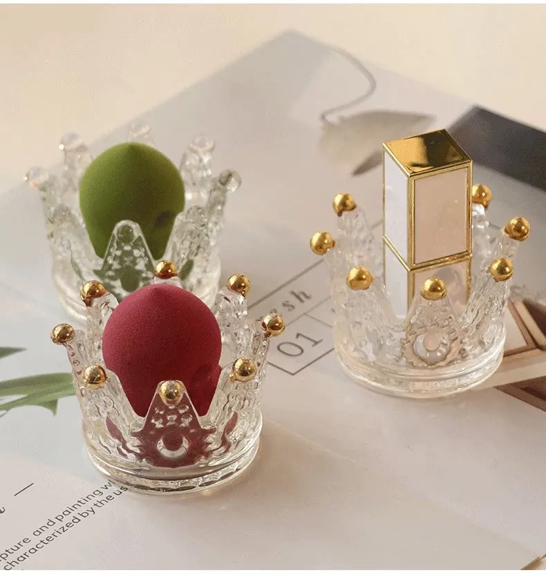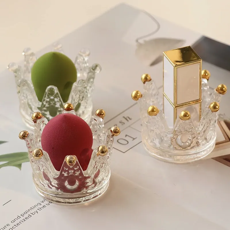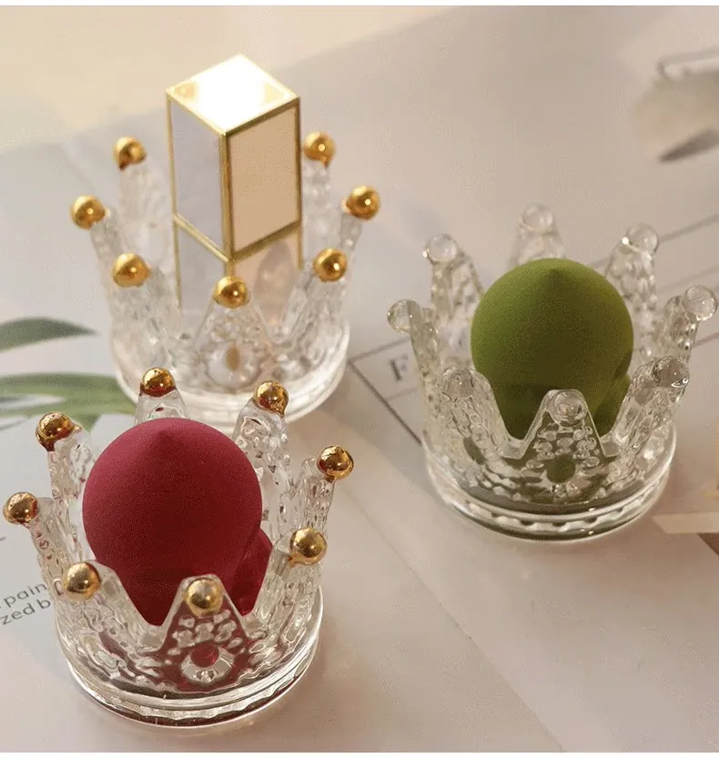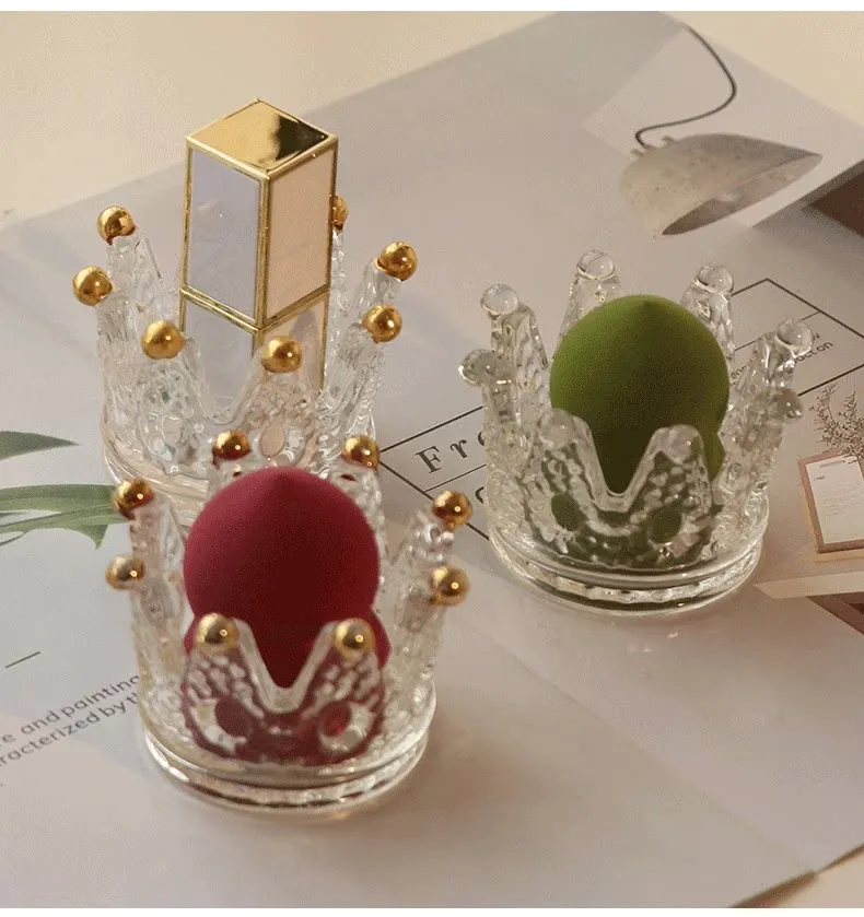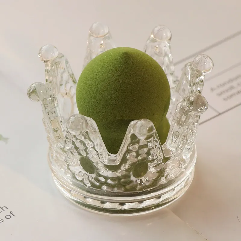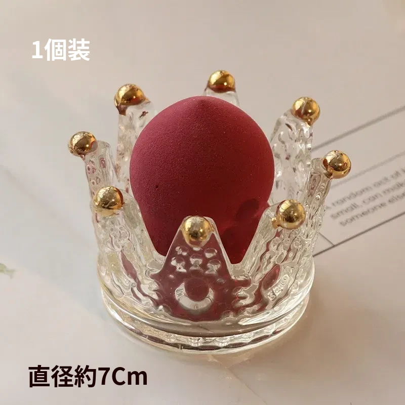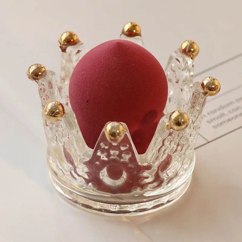 【1個セット】ガラス製クラウンデザインメイクアップスポンジ収納