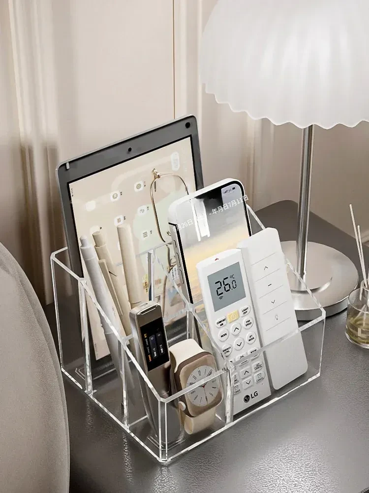 リモコン収納ボックス | 創造的な仕切り付き | テレビ・エアコンリモコン用 | おしゃれなベッドサイド多機能ラック | 整理整頓で快適な生活空間を実現!