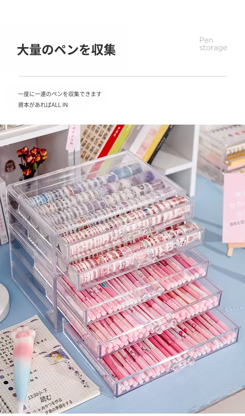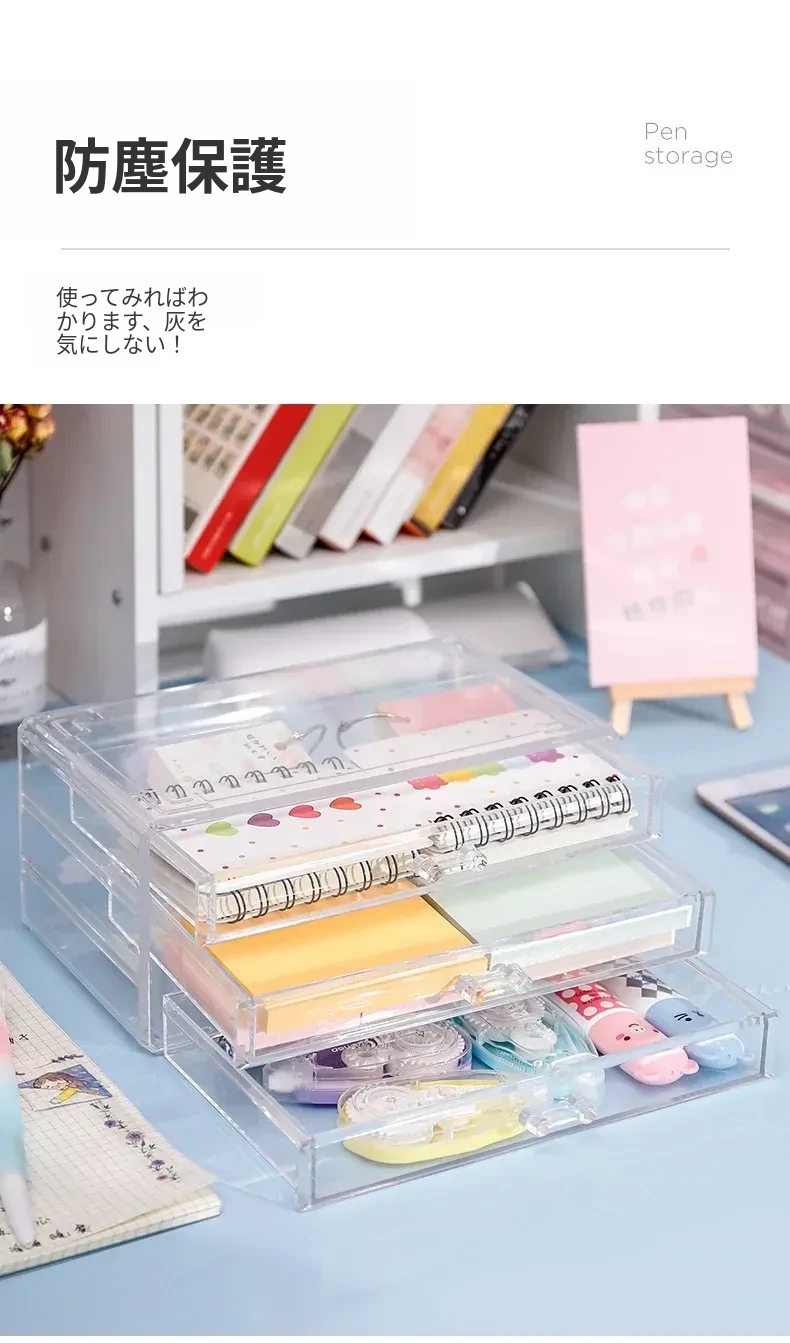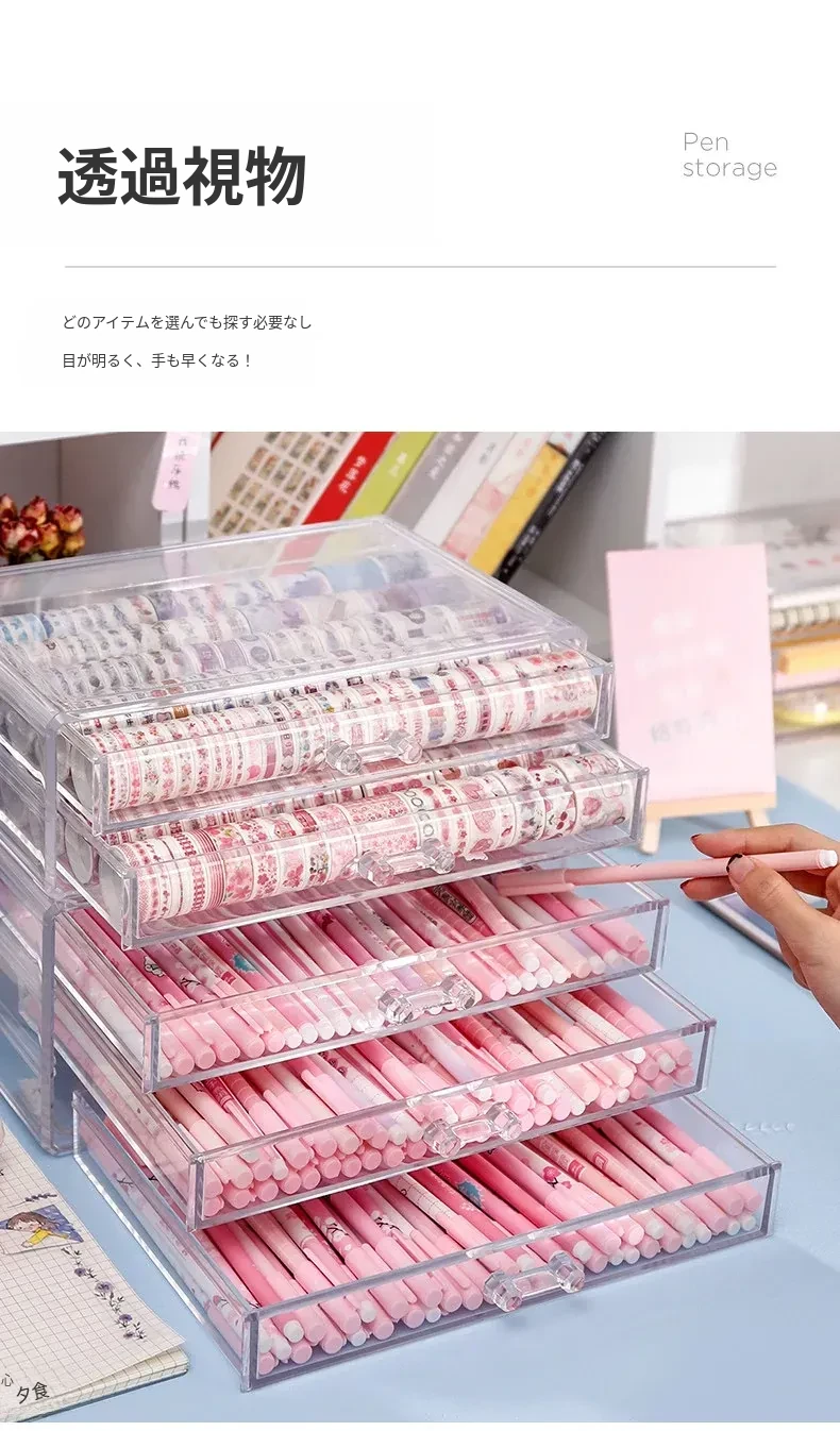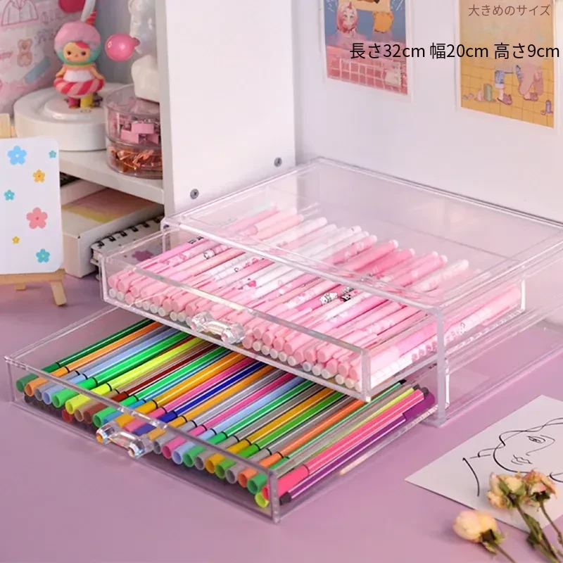 可愛い透明アクリルペンスタンド!デスク上の文具をすっきり整理!防塵機能付き、多機能収納ボックスで、学生の勉強を応援します。デスク周りをおしゃれに演出し、毎日の学びを楽しく!