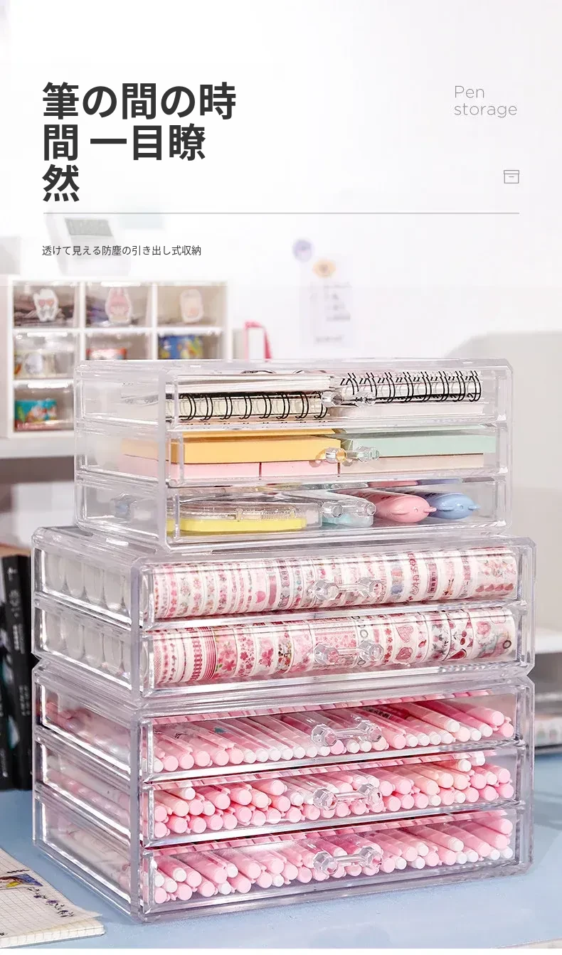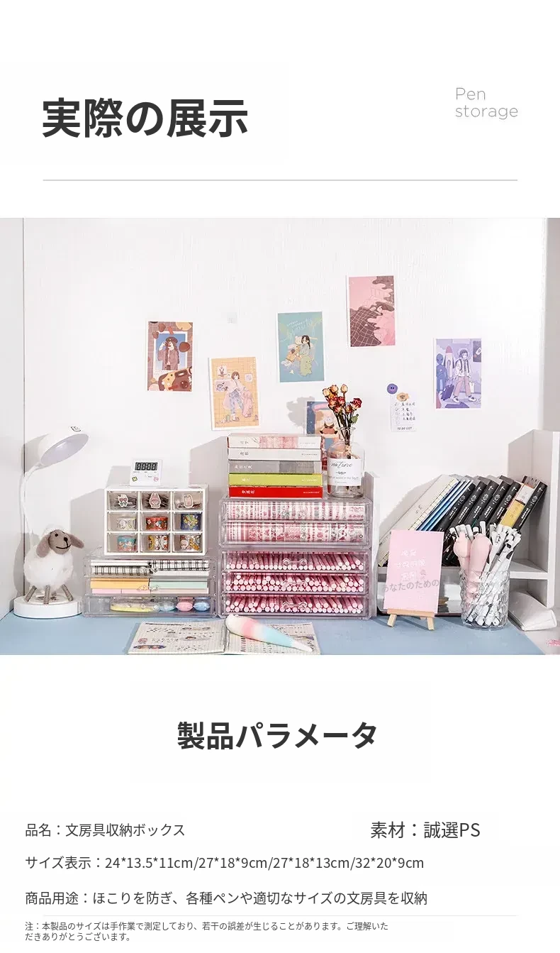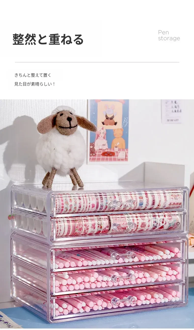 可愛い透明アクリルペンスタンド!デスク上の文具をすっきり整理!防塵機能付き、多機能収納ボックスで、学生の勉強を応援します。デスク周りをおしゃれに演出し、毎日の学びを楽しく!