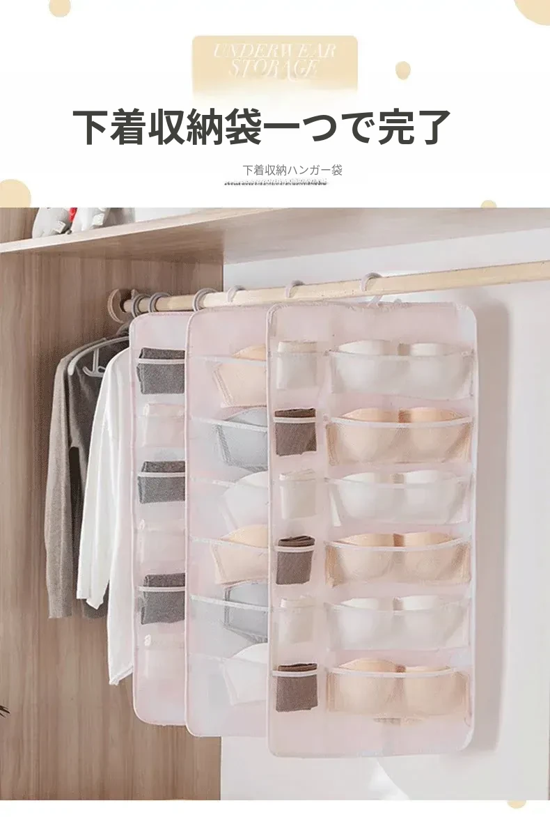 可愛い壁掛け収納バッグ!下着や靴下、ブラジャーなどをスッキリ整理!おしゃれなデザインでお部屋を彩り、学生寮にもぴったりな便利アイテムです。整理整頓も簡単で、毎日の生活がもっと楽しくなります!