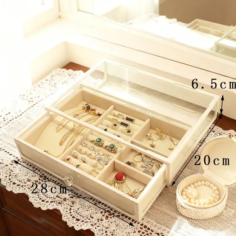 エレガントホワイト - 低さのある単引き出しジュエリー収納ボックス