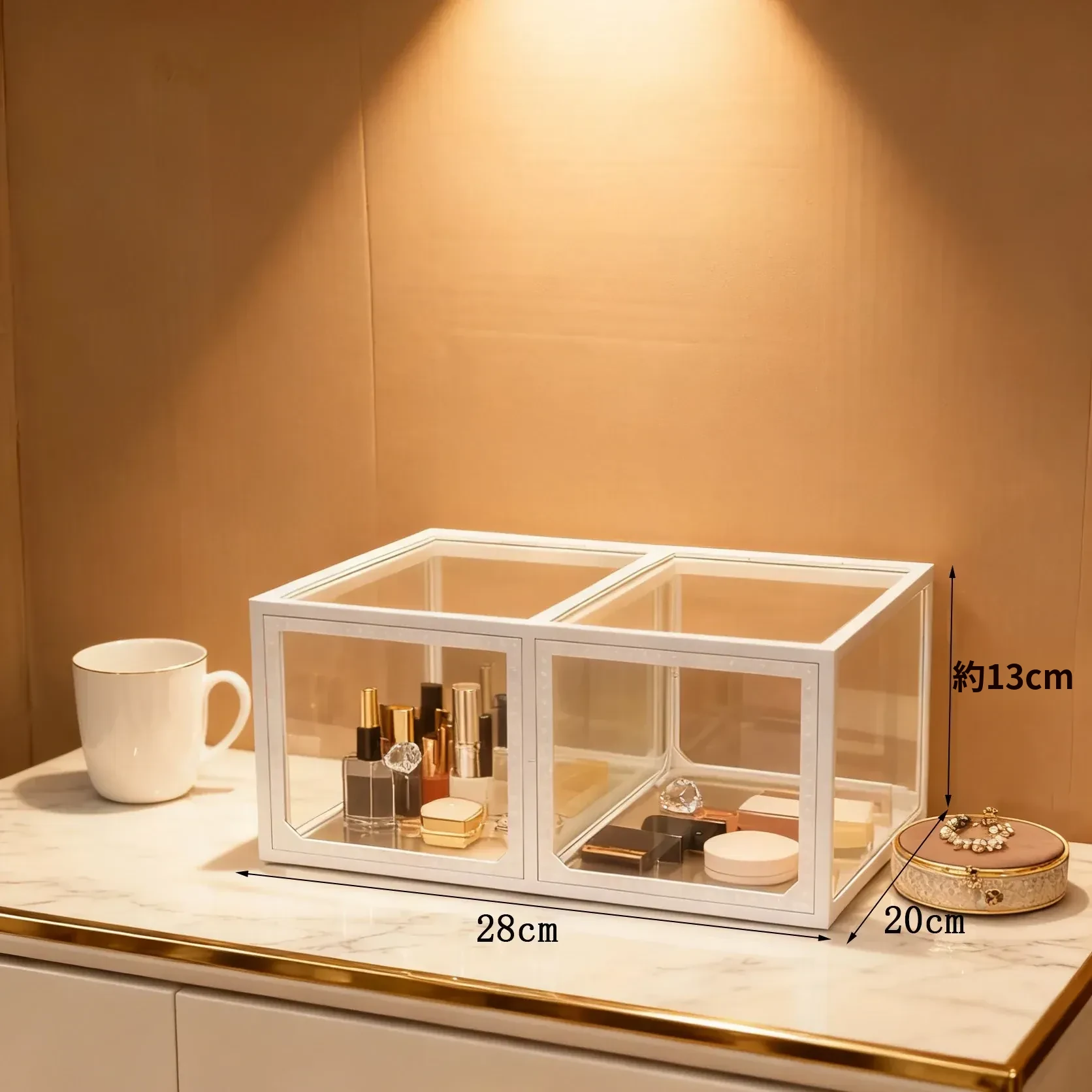 エレガントホワイト - 左右引き出し化粧品収納ボックス