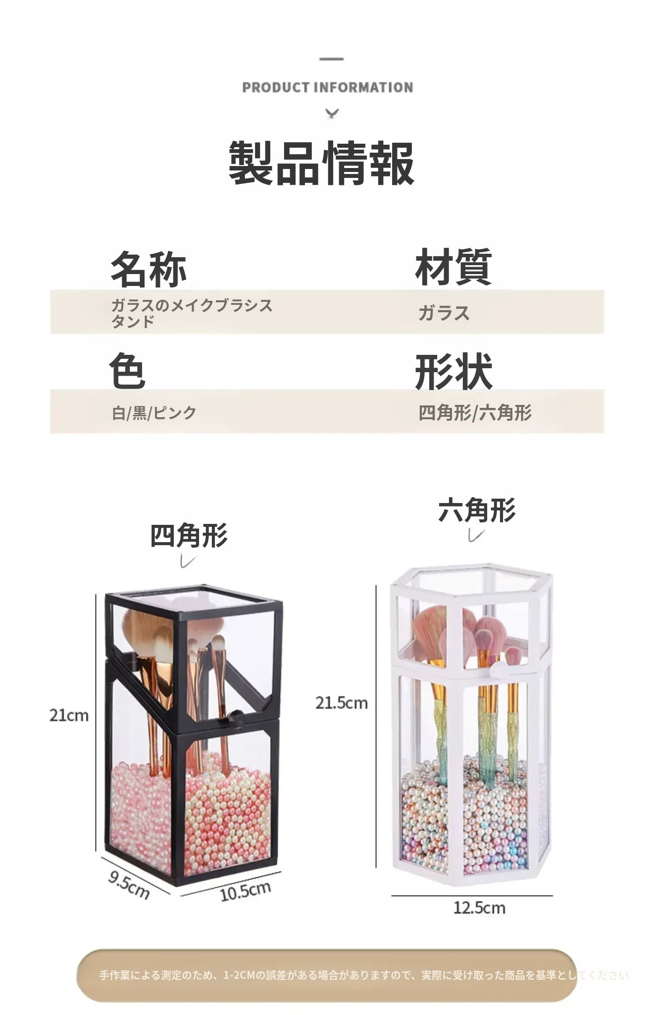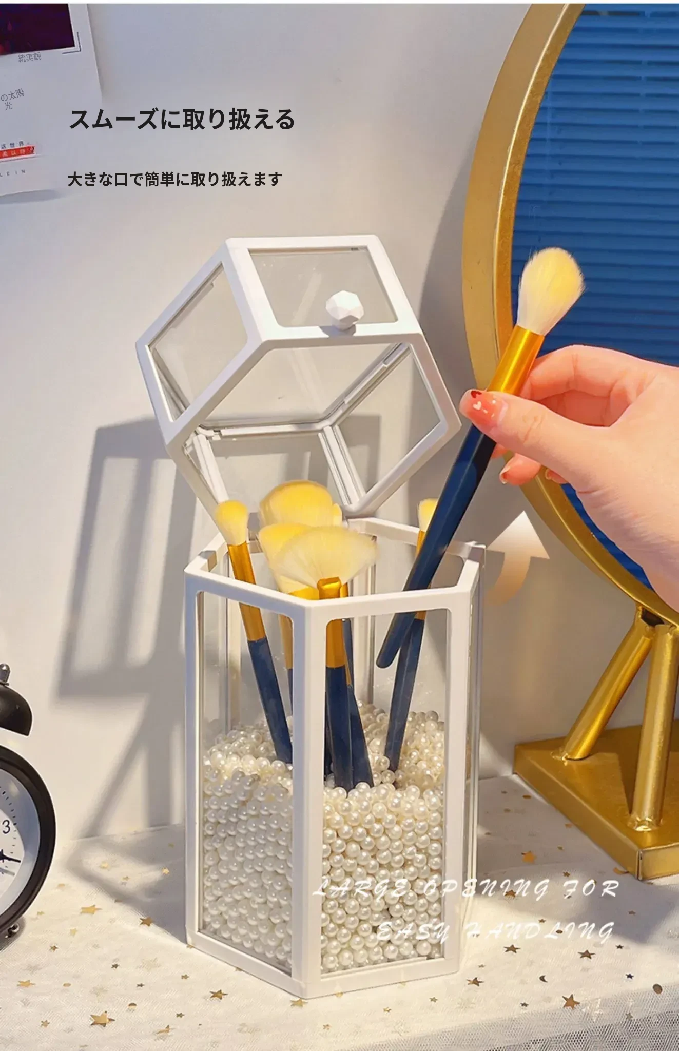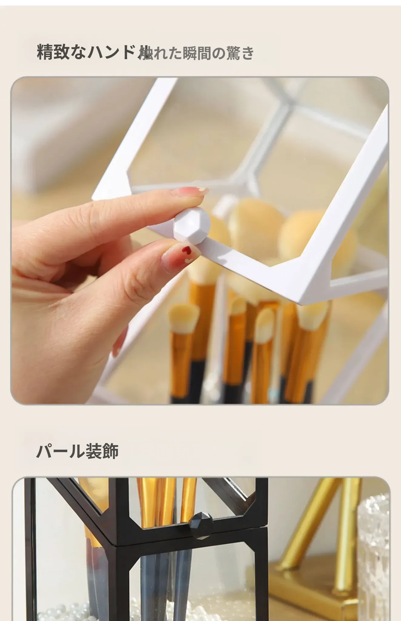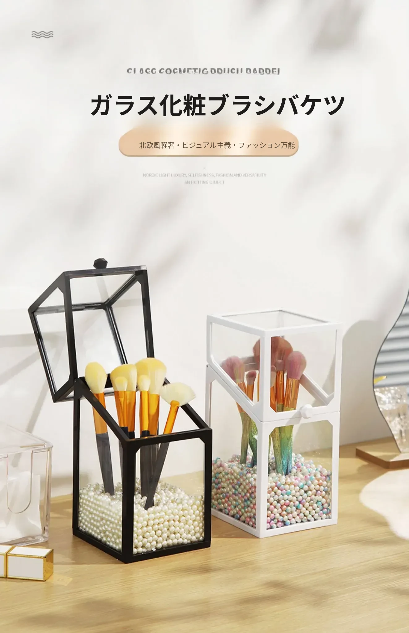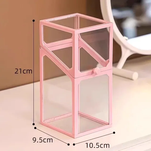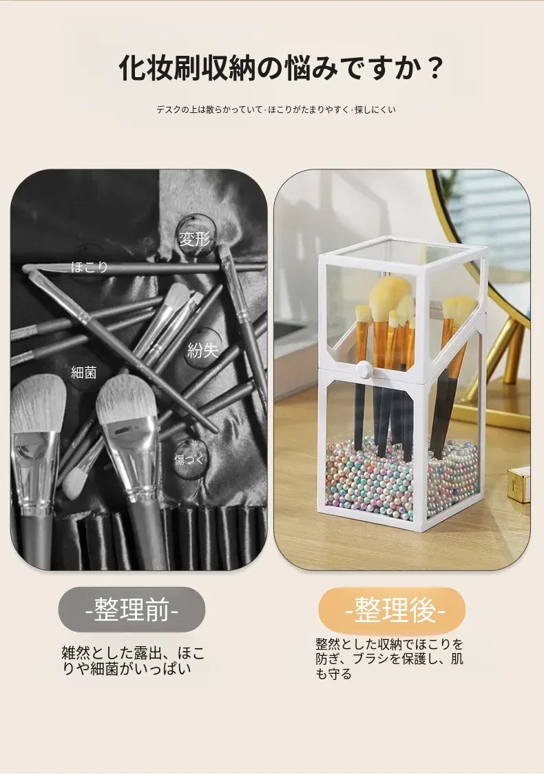 高級感あふれる化粧ブラシ収納筒 - 防塵カバー付きガラス製、持ち運び便利なデスク用メイクボックス。おしゃれなインスタ風のアイブロウペンシル&ブラシ用バケットで、あなたの美容道具をスタイリッシュに整理!