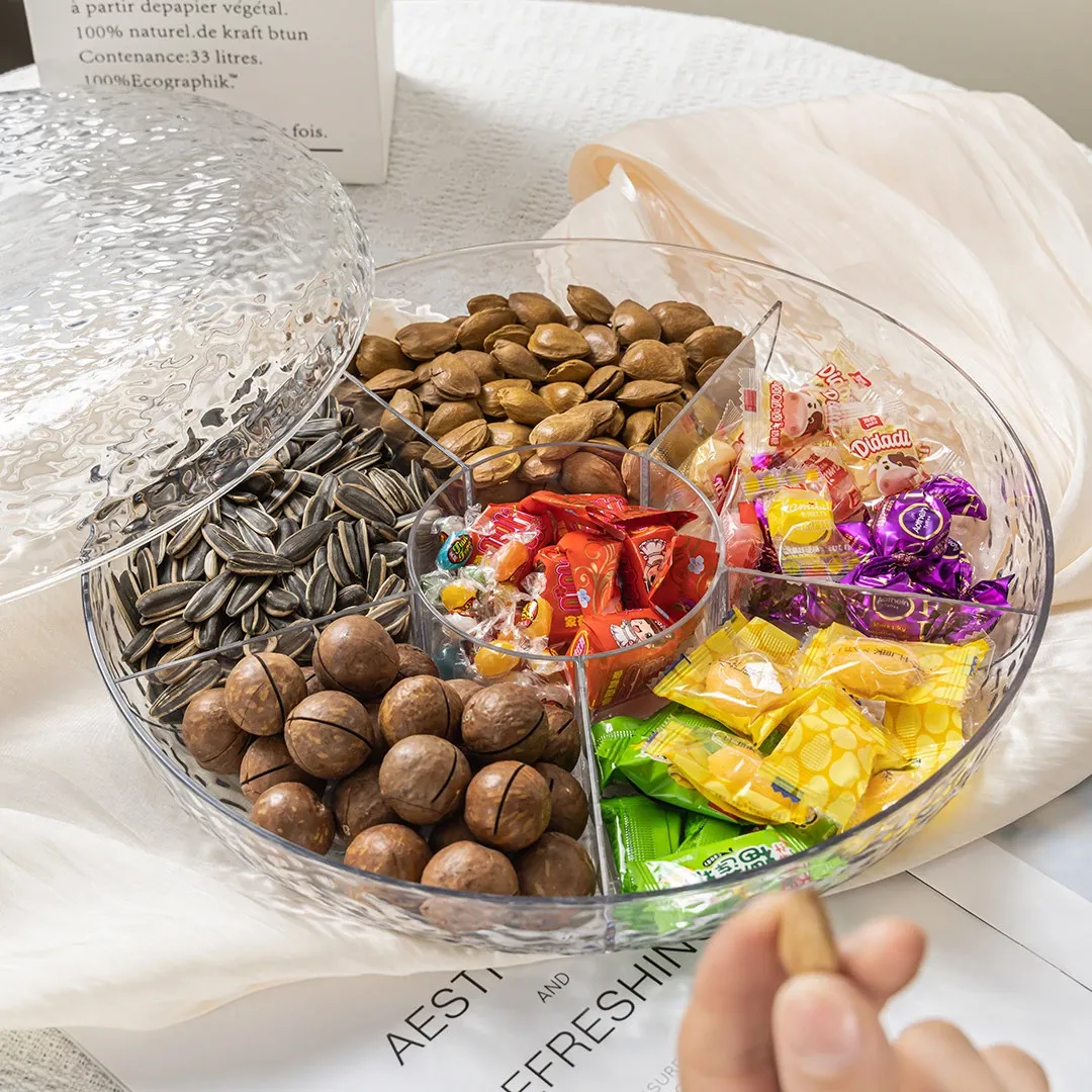 おしゃれな家用スナック収納ボックス!フタ付きのナッツプレート&キャンディーケース、人気の仕切りフルーツトレイで、リビングのテーブルを美しく整えましょう!