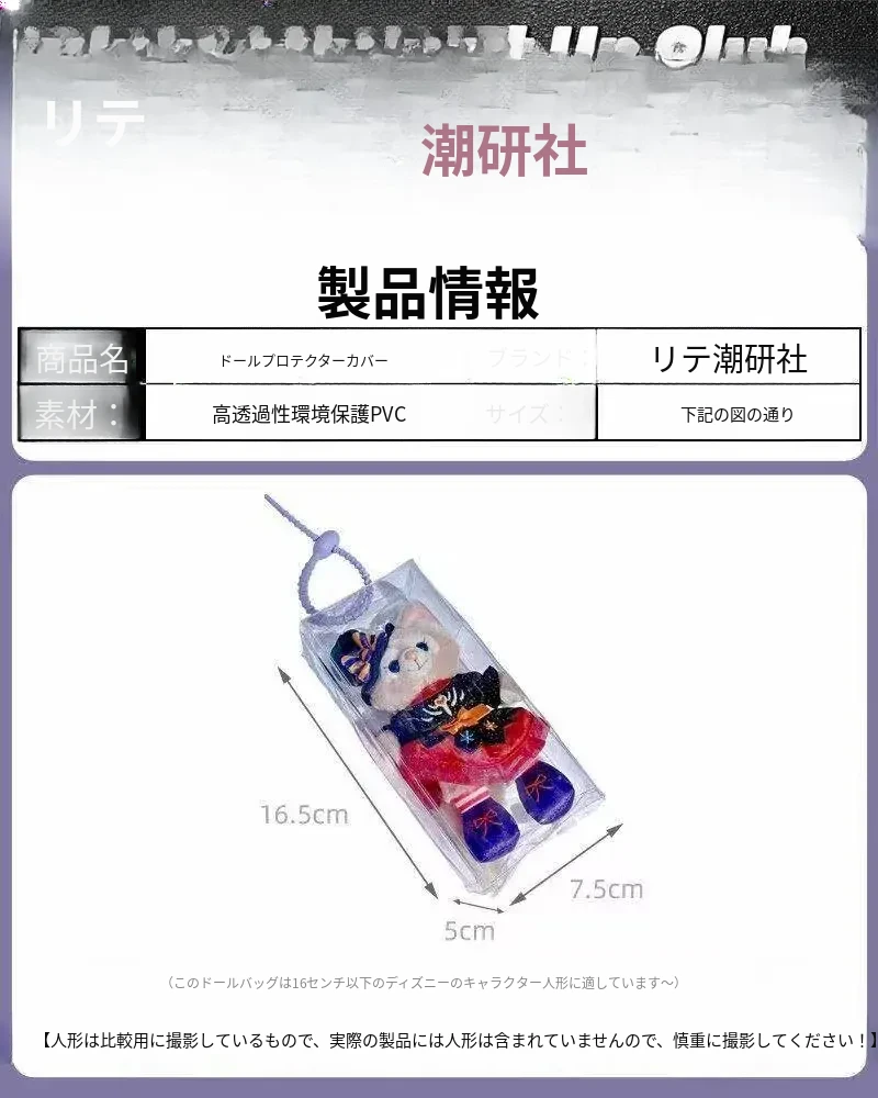 ラブブーぬいぐるみ保護ケース レイナベールのふわふわディズニーチャーム収納バッグ 高透過クリア ベビーカー用透明トートバッグ!おしゃれで便利な育児アイテム!