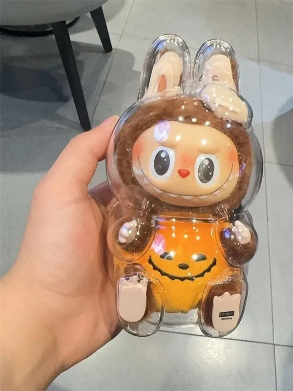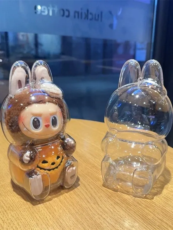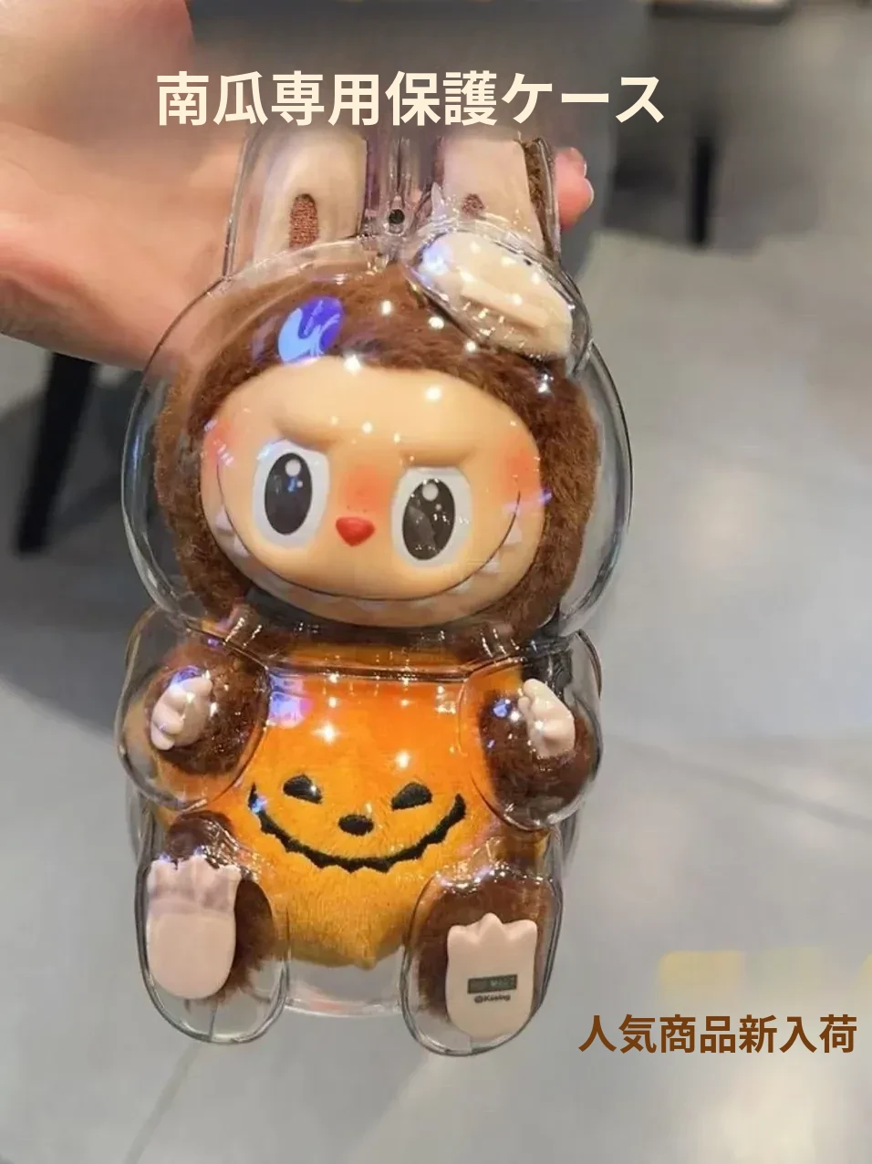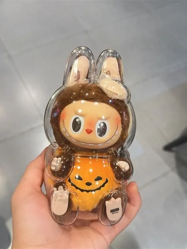 LABUBUかぼちゃラブブ透明保護ケース - ハロウィンにぴったり!汚れ防止、ホコリ対策、衣装アクセサリーとしても最適!衝撃にも強い耐久設計で、あなたの大切なアイテムをしっかり守ります!