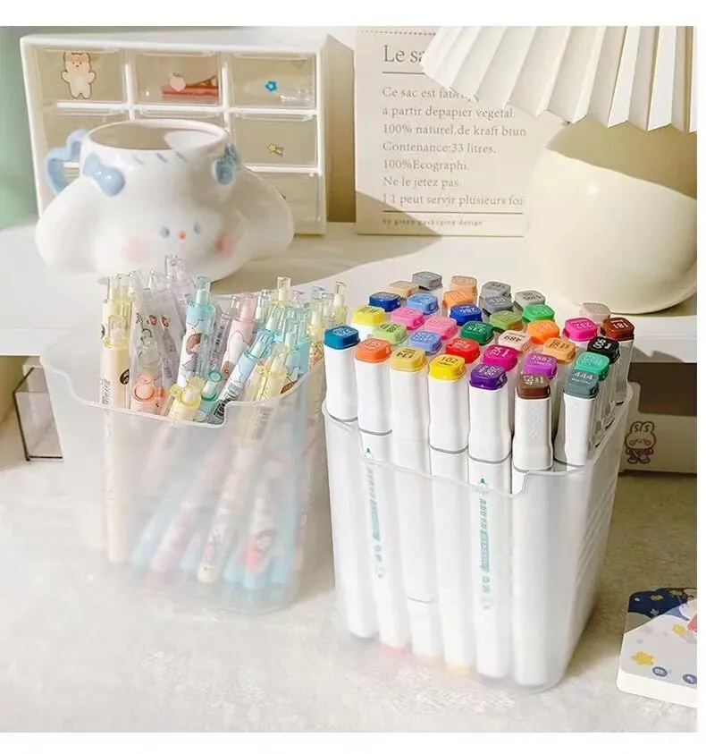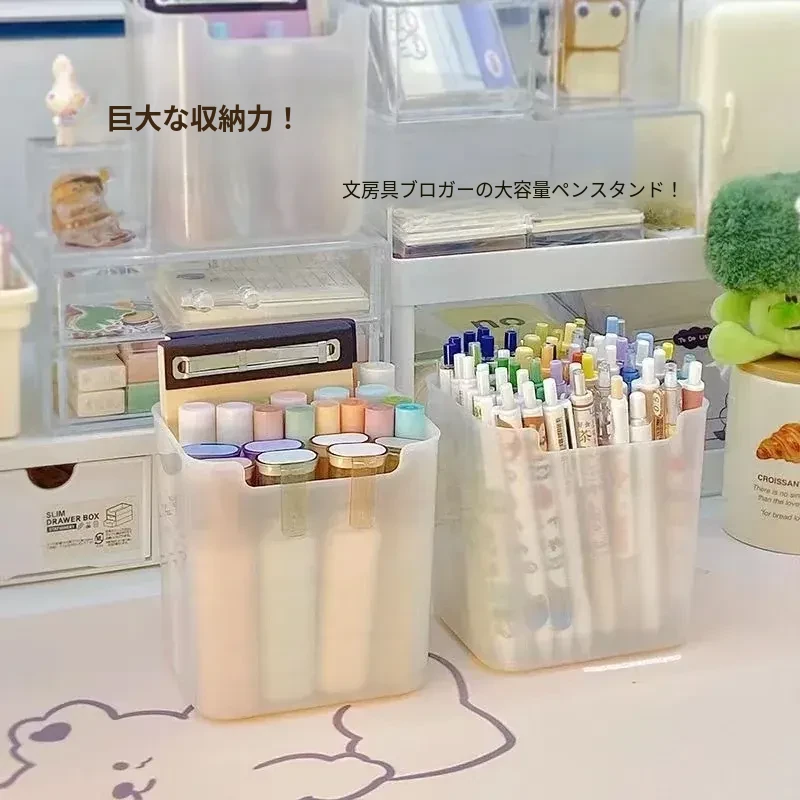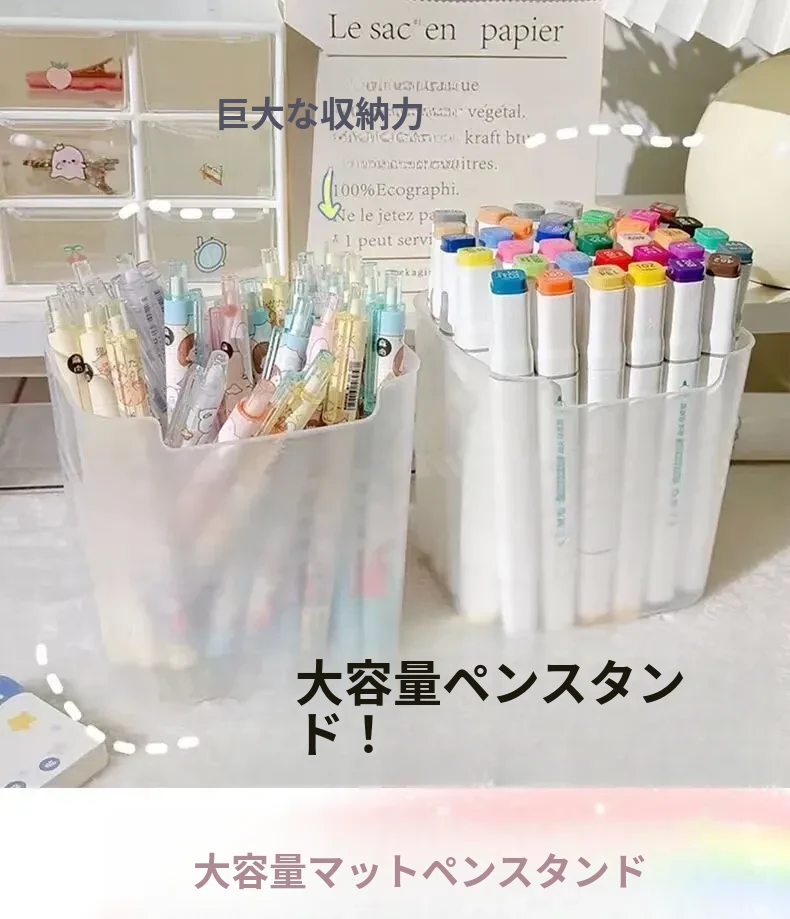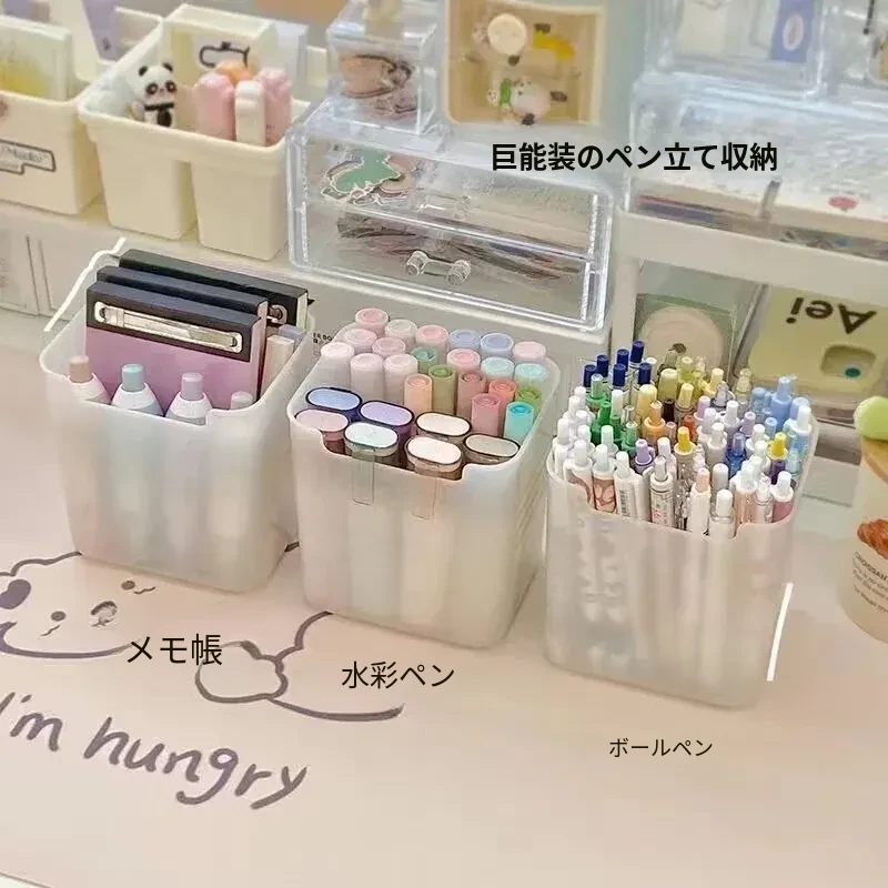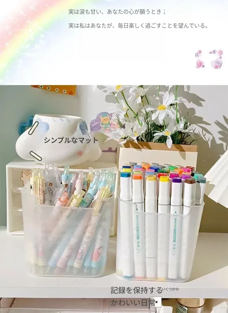デスク用大容量ペン立て|学生寮に最適!シンプルなデザインのペンケース|子供用カラーペンや化粧ブラシ、付箋収納にも便利なマルチボックス!整理整頓を楽しく!