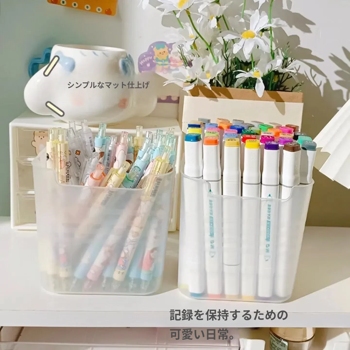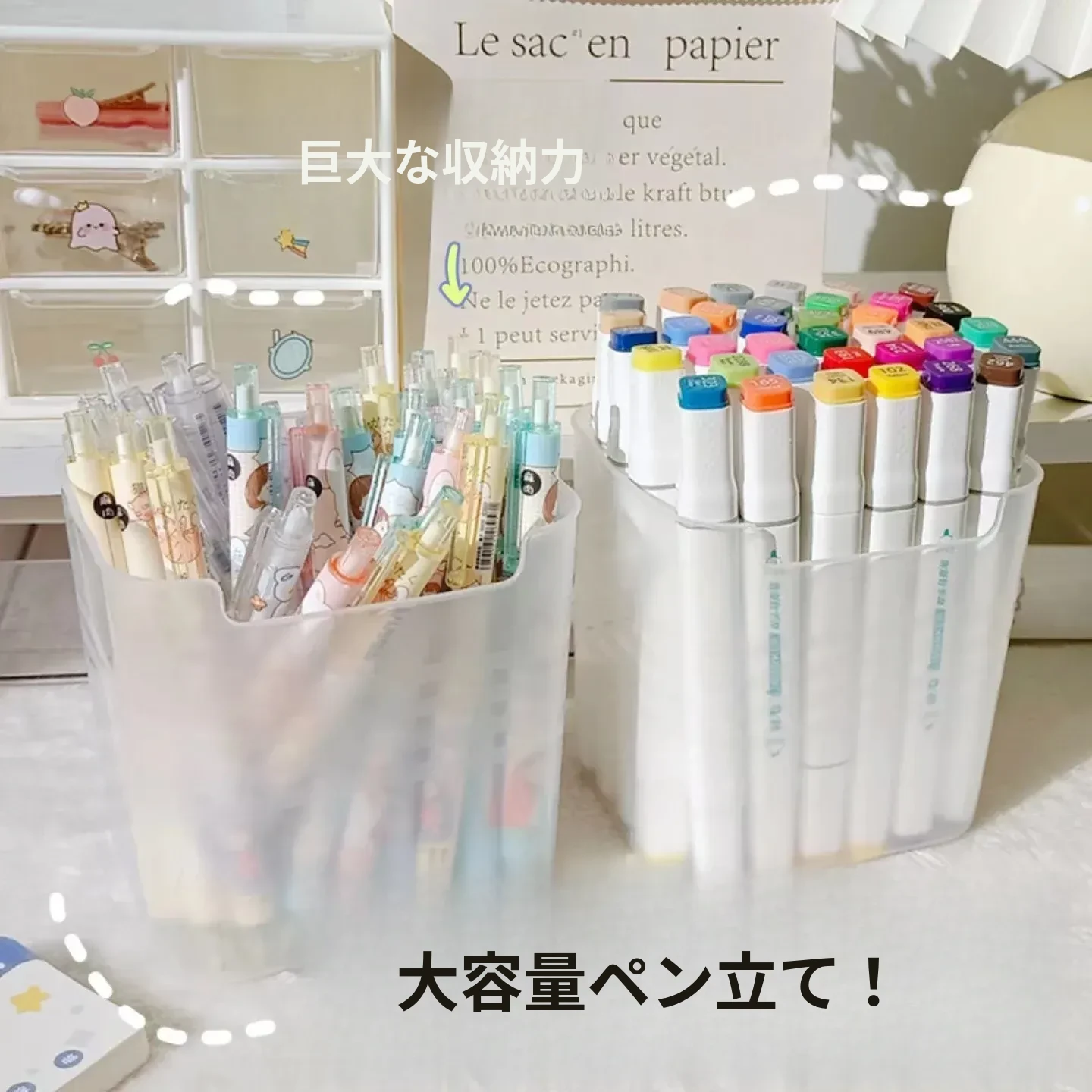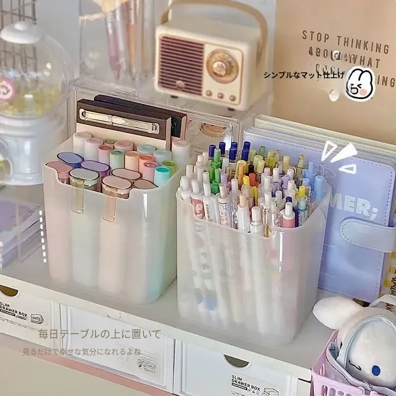 デスク用大容量ペン立て|学生寮に最適!シンプルなデザインのペンケース|子供用カラーペンや化粧ブラシ、付箋収納にも便利なマルチボックス!整理整頓を楽しく!