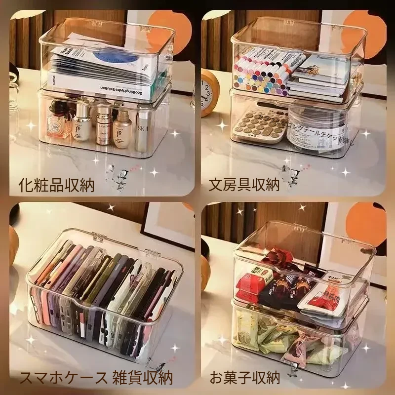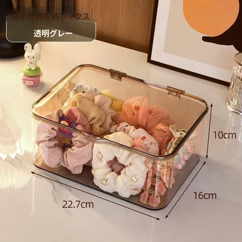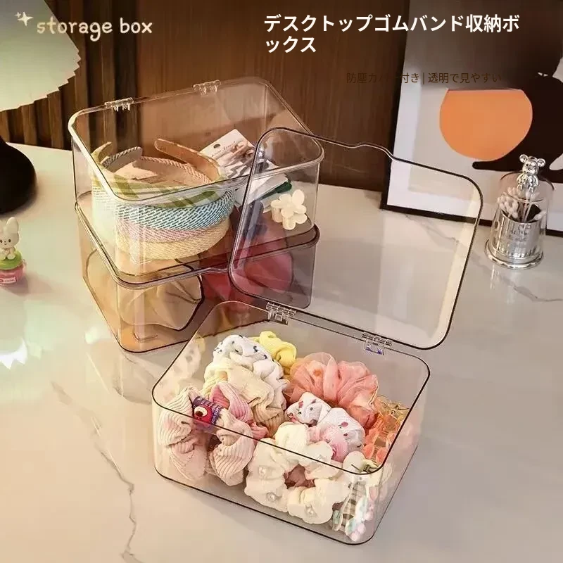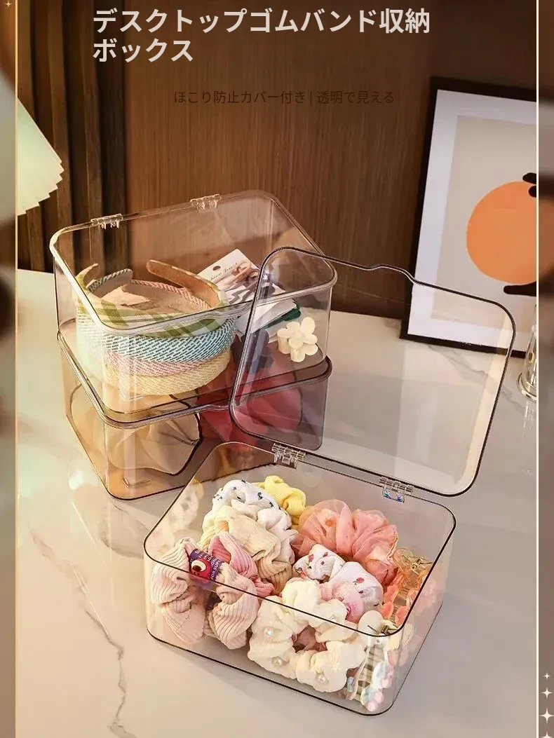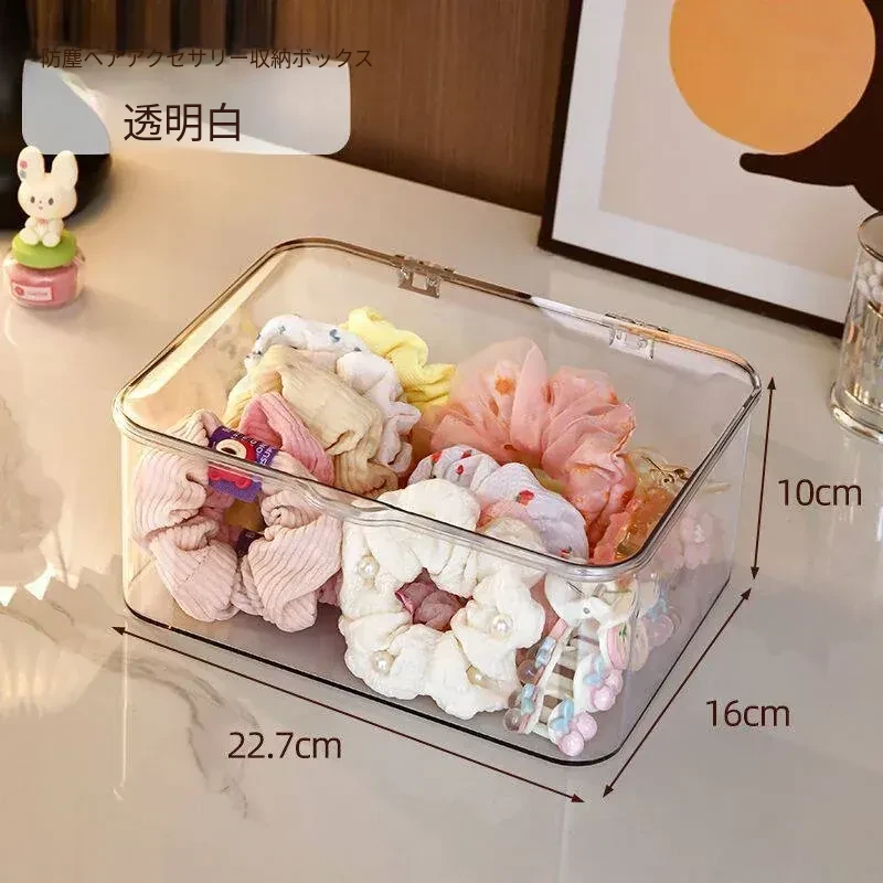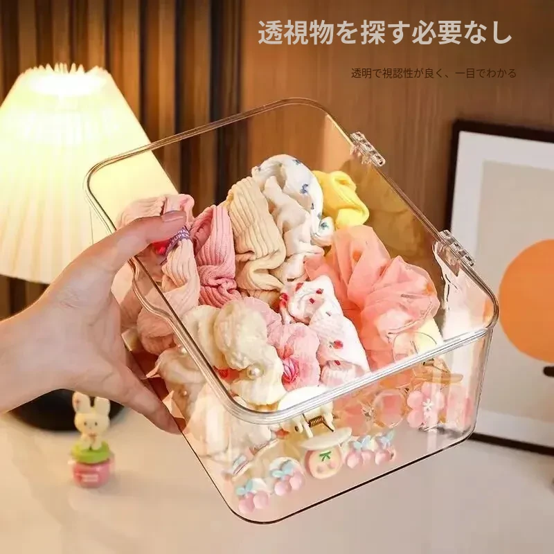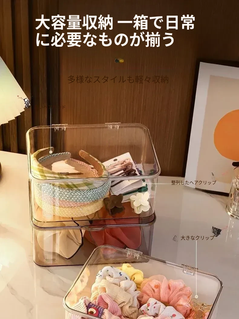 デスクトップ用大容量ヘアアクセサリー収納ボックス|学生・子供向け|髪飾り・ヘアゴムを防塵収納|透明デザインで美しく整理整頓!メイク台に最適!