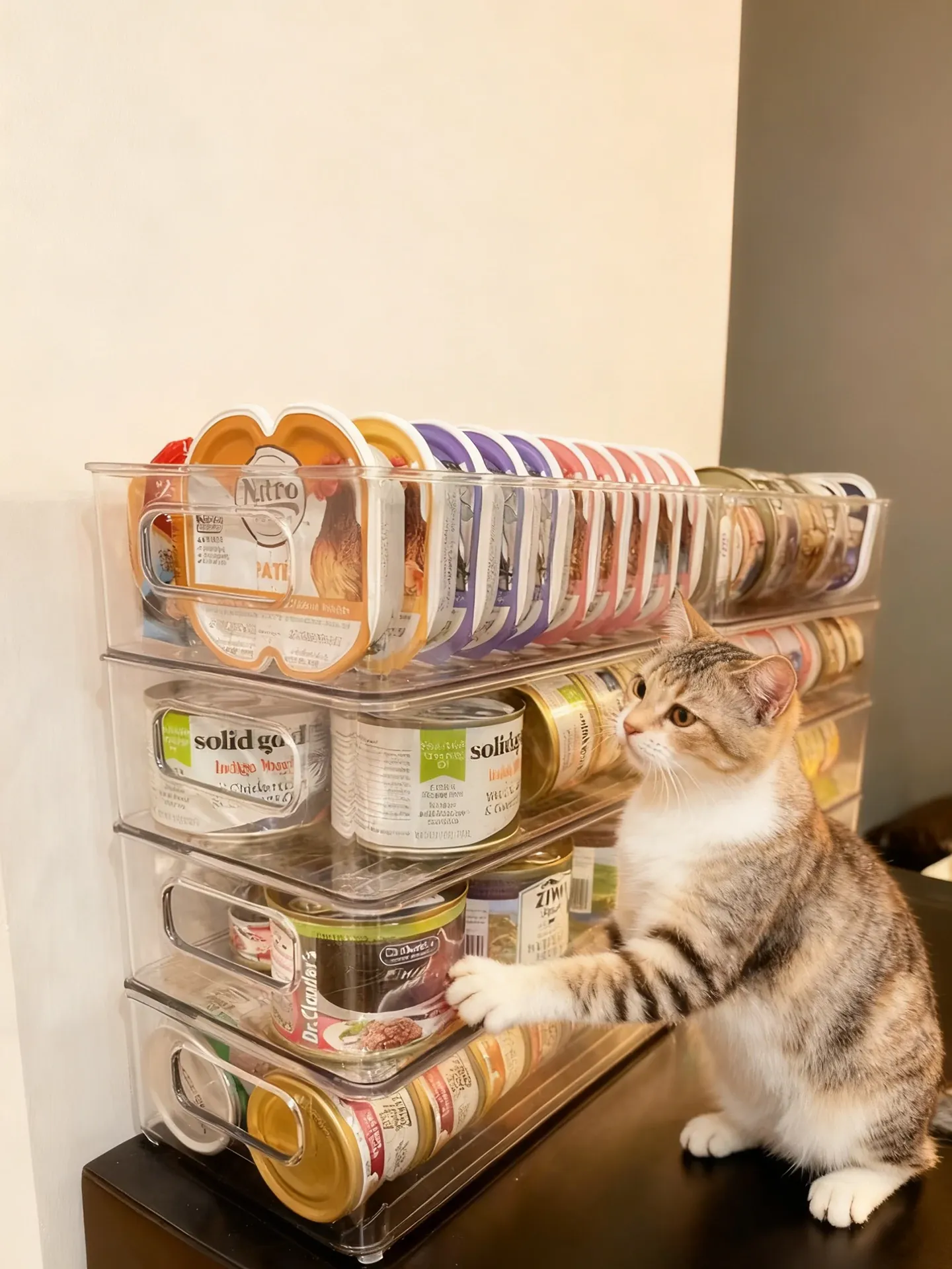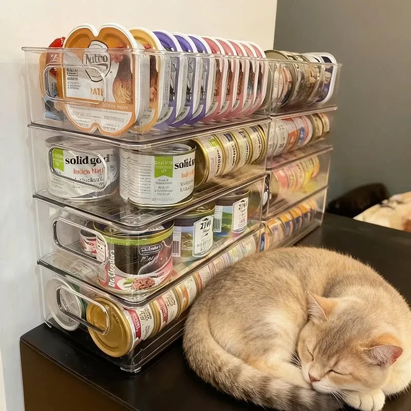 ペットフード缶収納ボックス|犬猫おやつのための大容量スタッキング整理ラック|デスク周りをスッキリ!便利なペット用品ストレージ