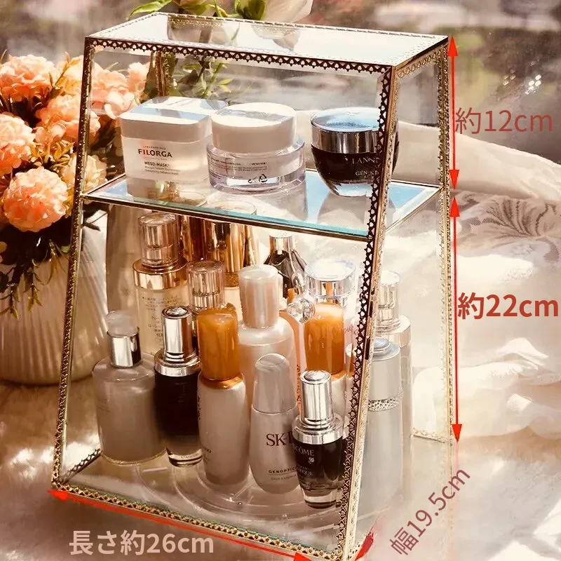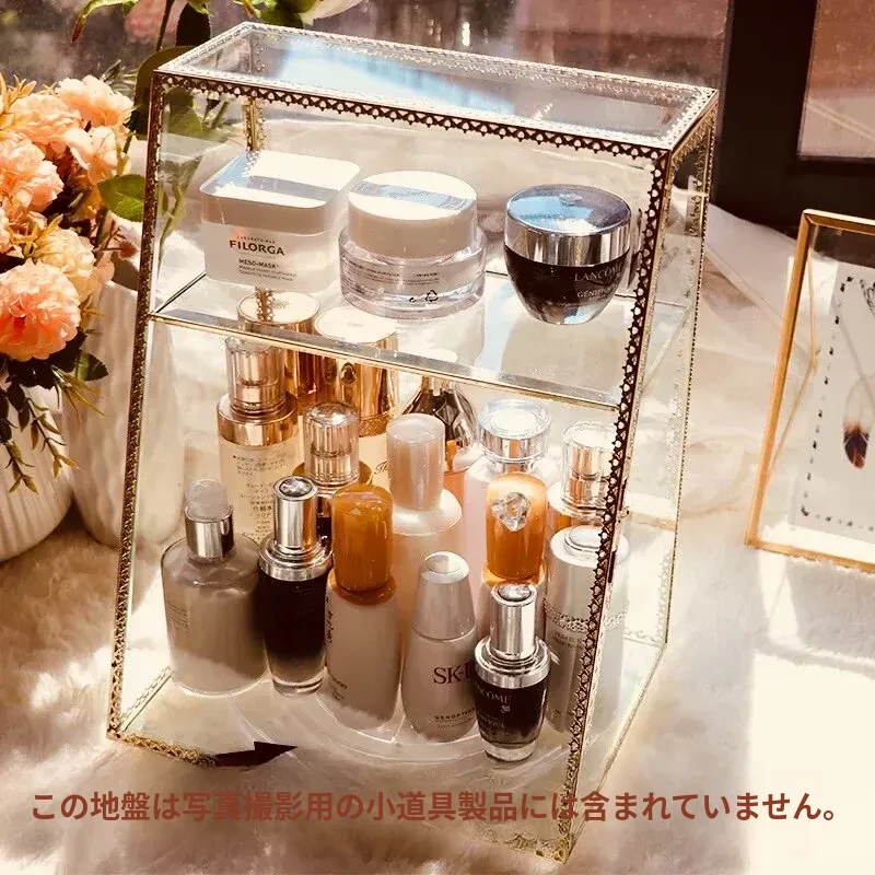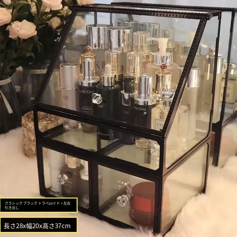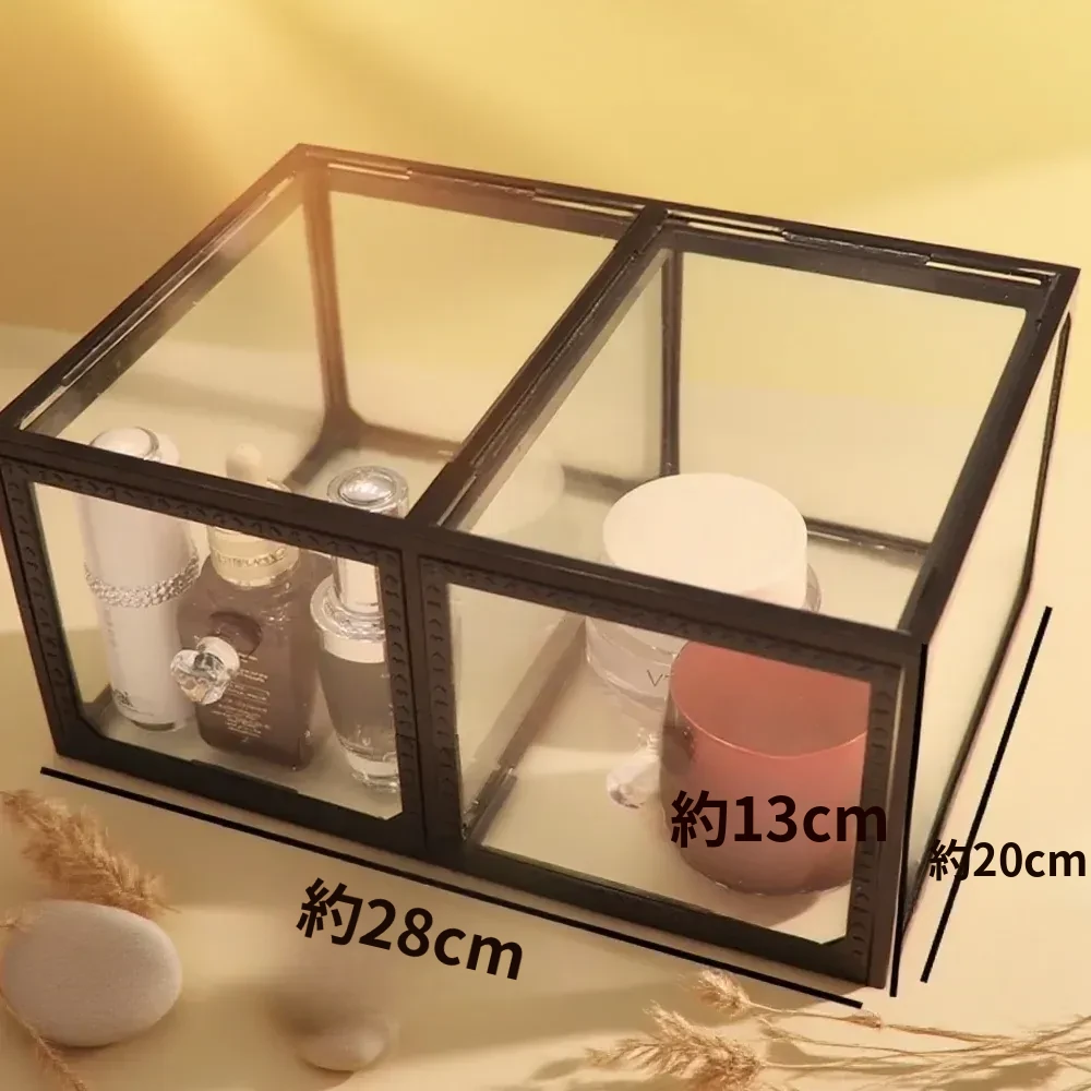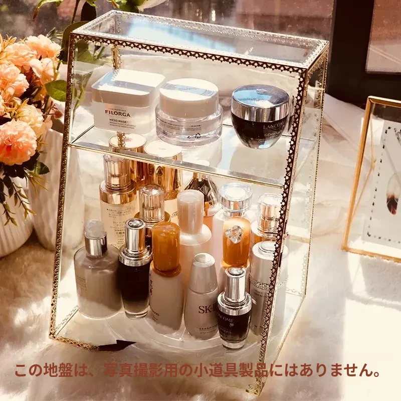 透明でスタイリッシュなサイドオープン大容量メイクアップコスメ収納ボックス - おしゃれなドレッサー整理ボックス、スキンケア製品もすっきり収納できるガラス製の蓋付きディスプレイラック!