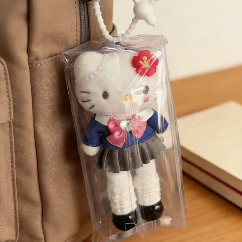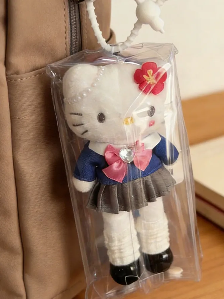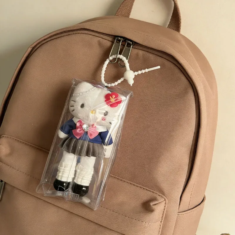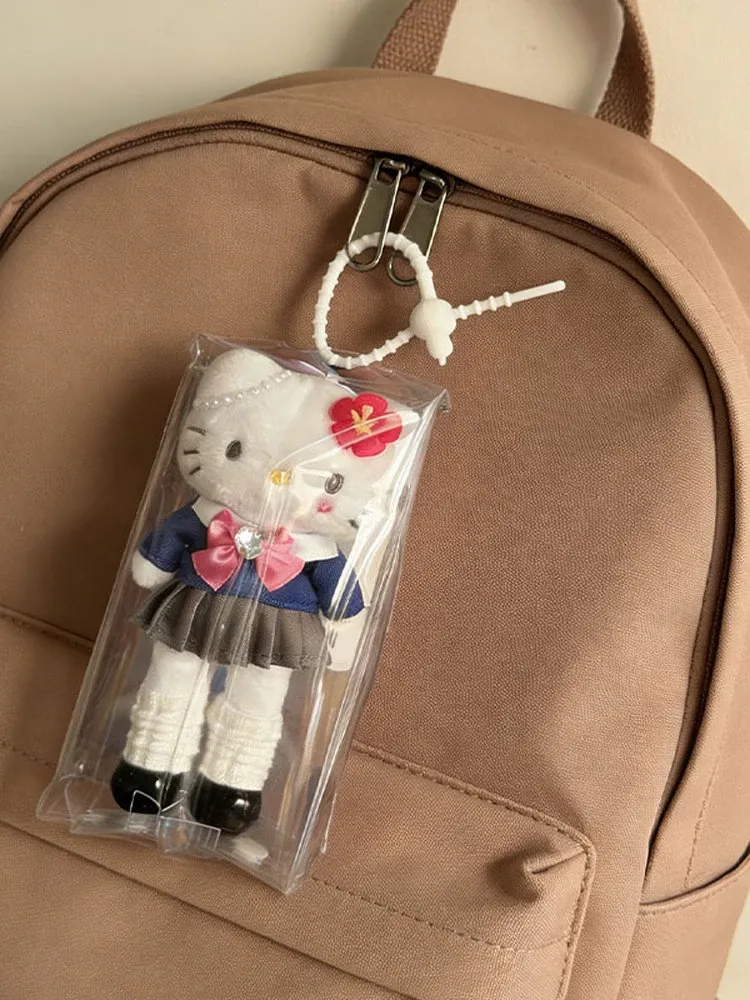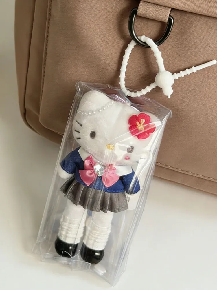 ロングレッグキティ収納ポーチ付きニットスカートお散歩バッグ!かわいいぬいぐるみリュック、キーホルダーにもなる収納袋。おしゃれで便利なアイテムで、子供とのお出かけをもっと楽しく!