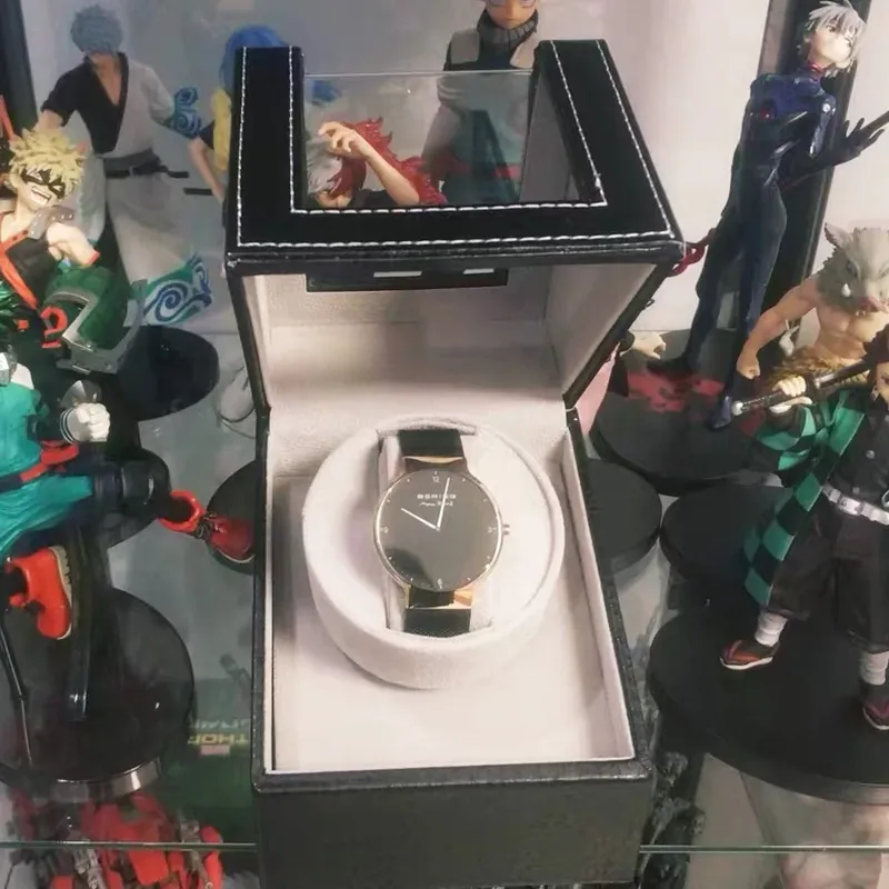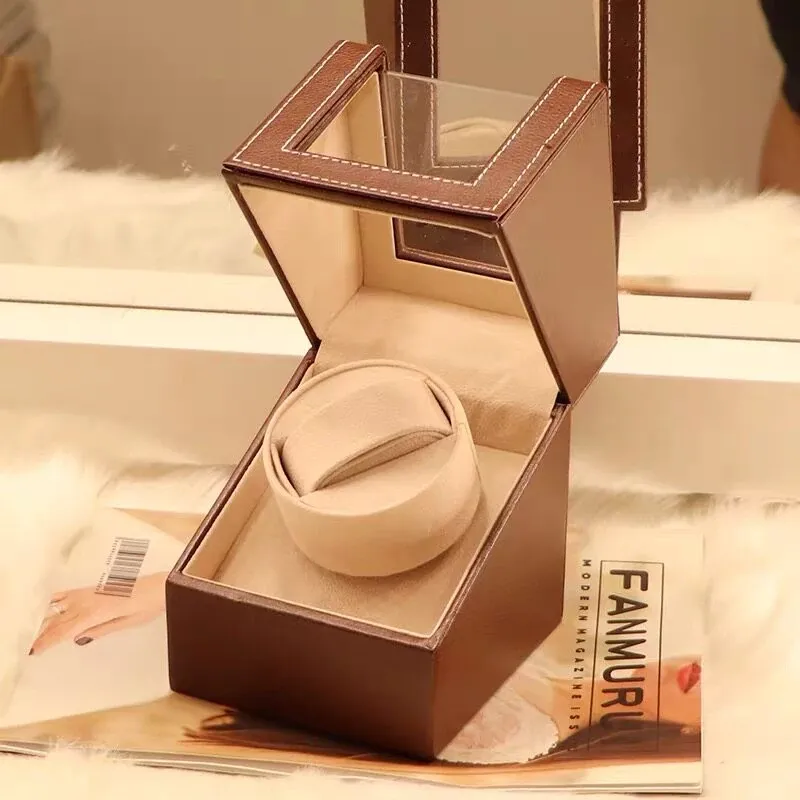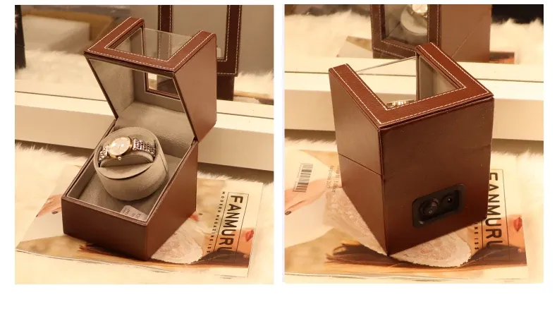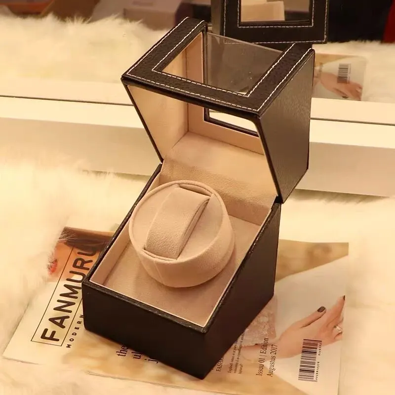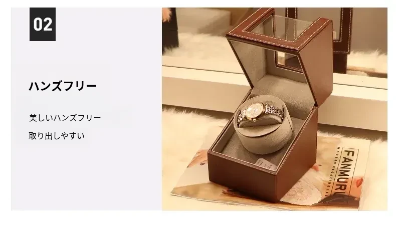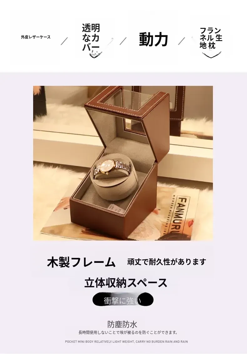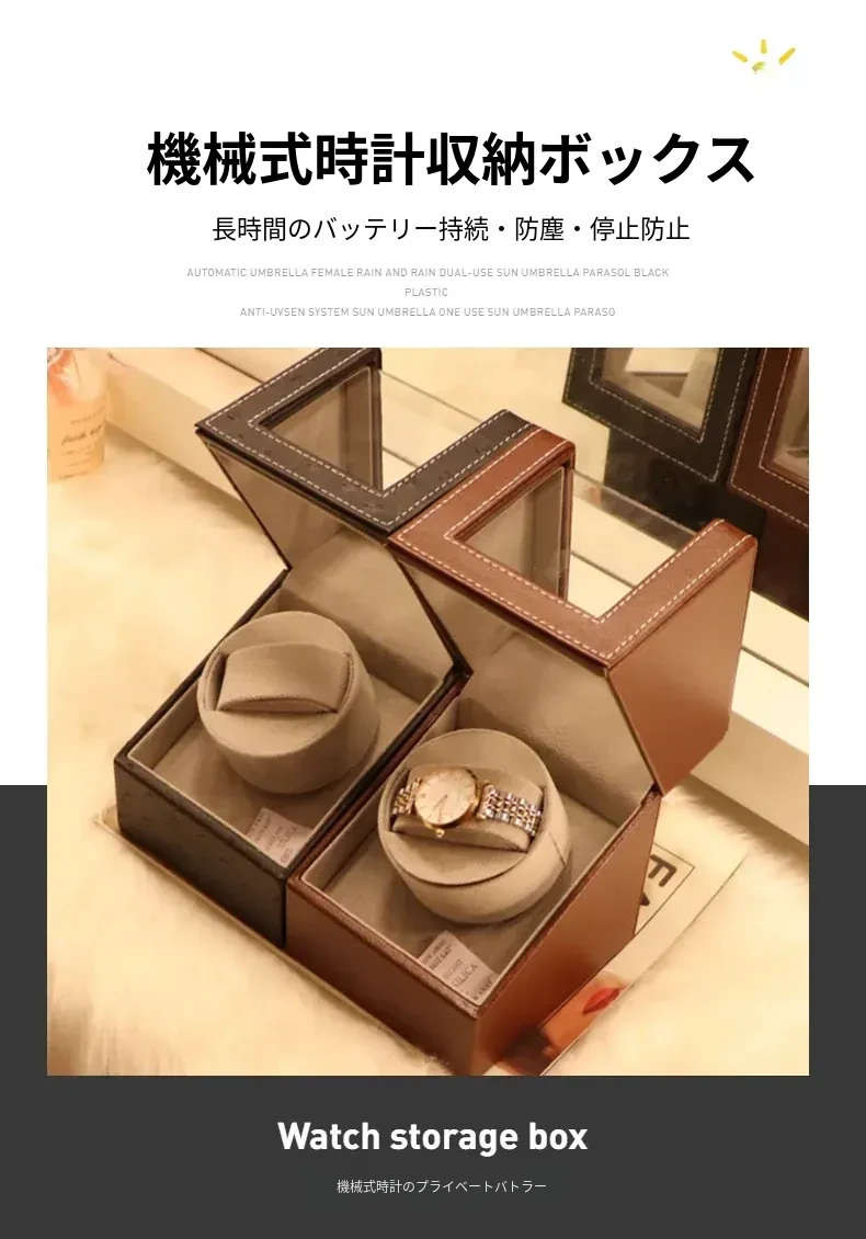 高級自動巻き機能付きジュエリーボックス - 家庭用のメカニカルウォッチ用、ミニ展示スタンド付きでおしゃれに収納!時計を美しく魅せる、あなたの大切なコレクションに最適です。