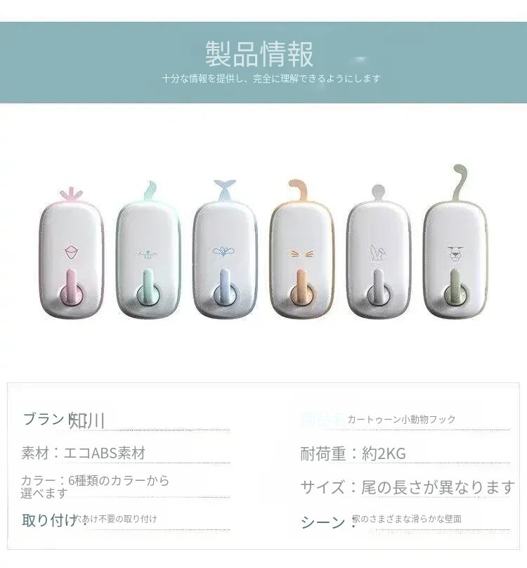 楽しいマジックフック!アイデア満載の粘着フックで、キッチンやバスルームの壁に強力に吸着。跡が残らず、可愛いキャラクターでお部屋を彩ります。整理整頓を簡単に!