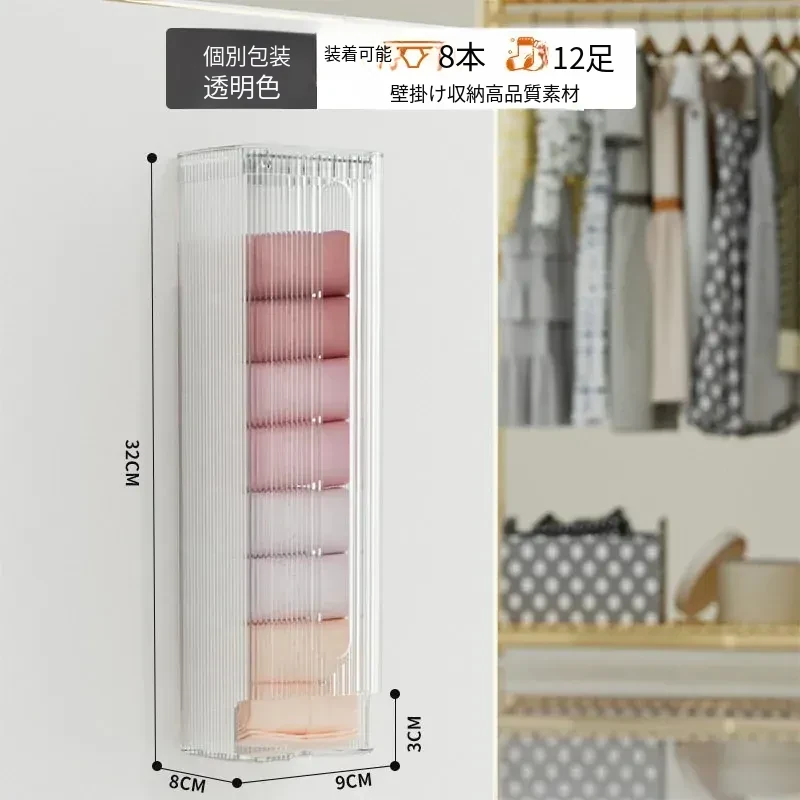 壁掛け透明クローゼット用タオルパンツ靴下収納ボックス(1個セット)