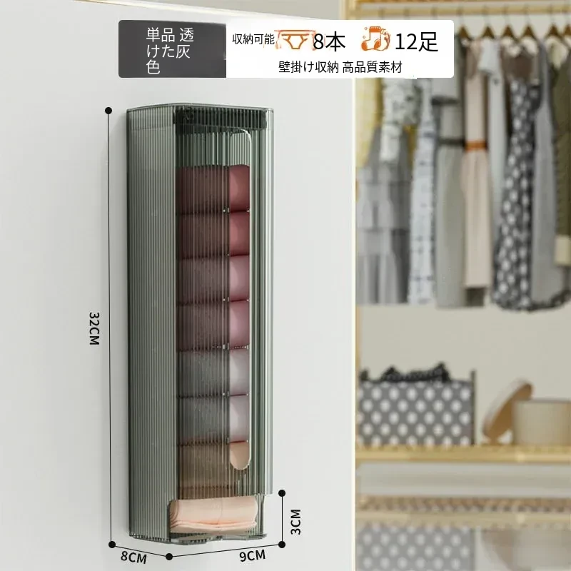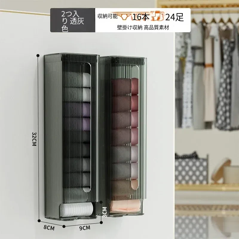 壁掛け透明+透けたグレーのクローゼット用タオルパンツ靴下収納ボックス