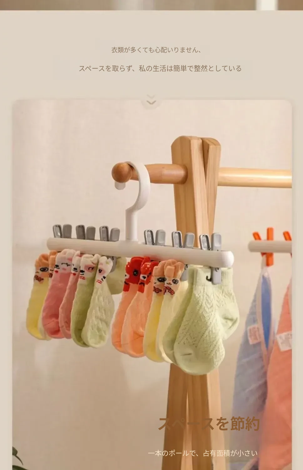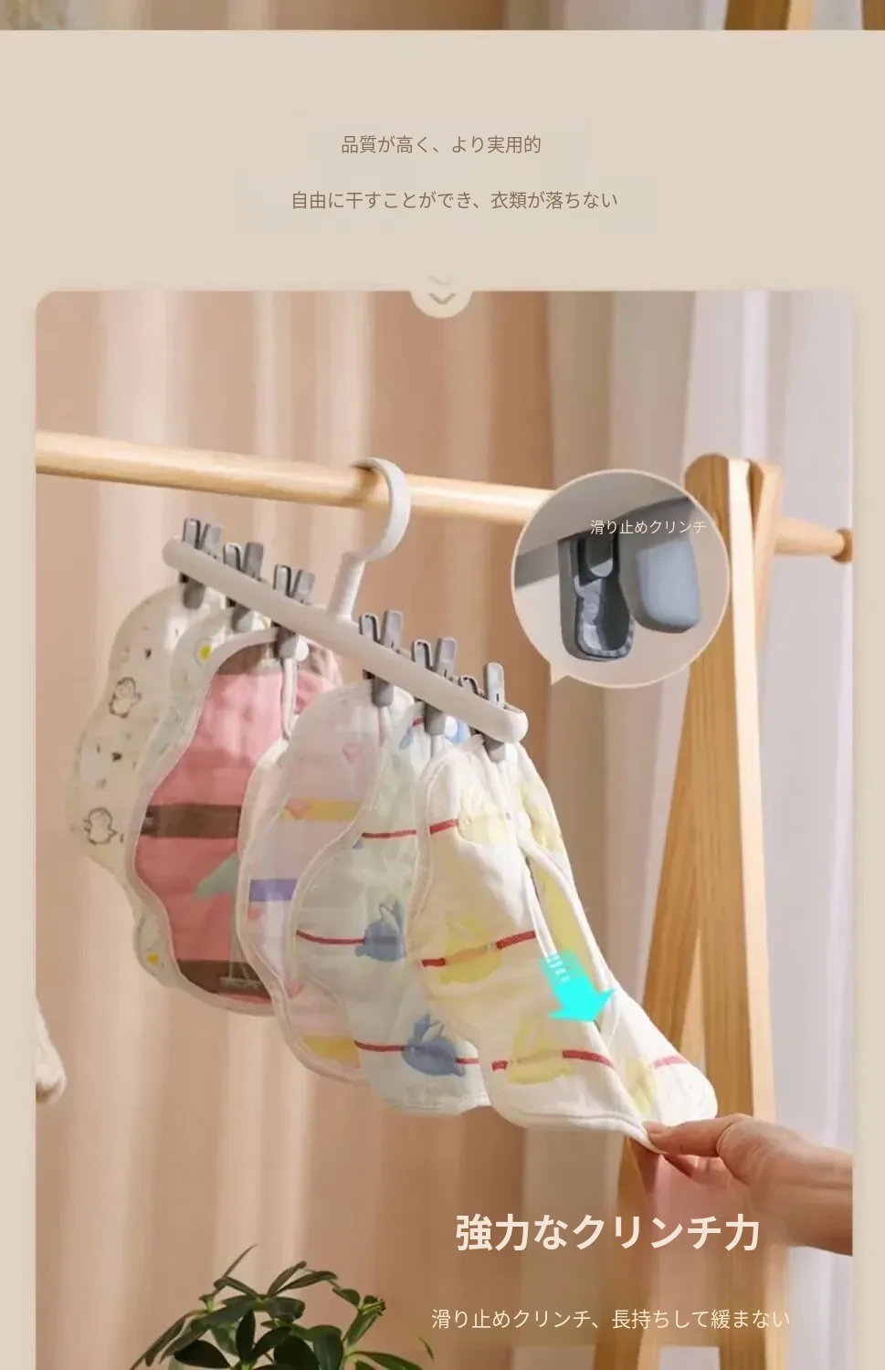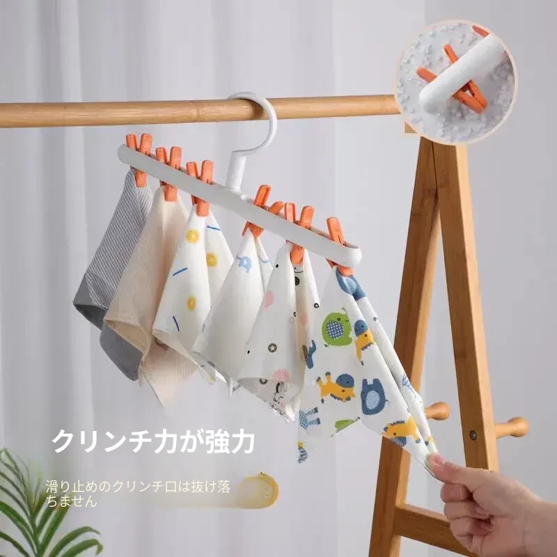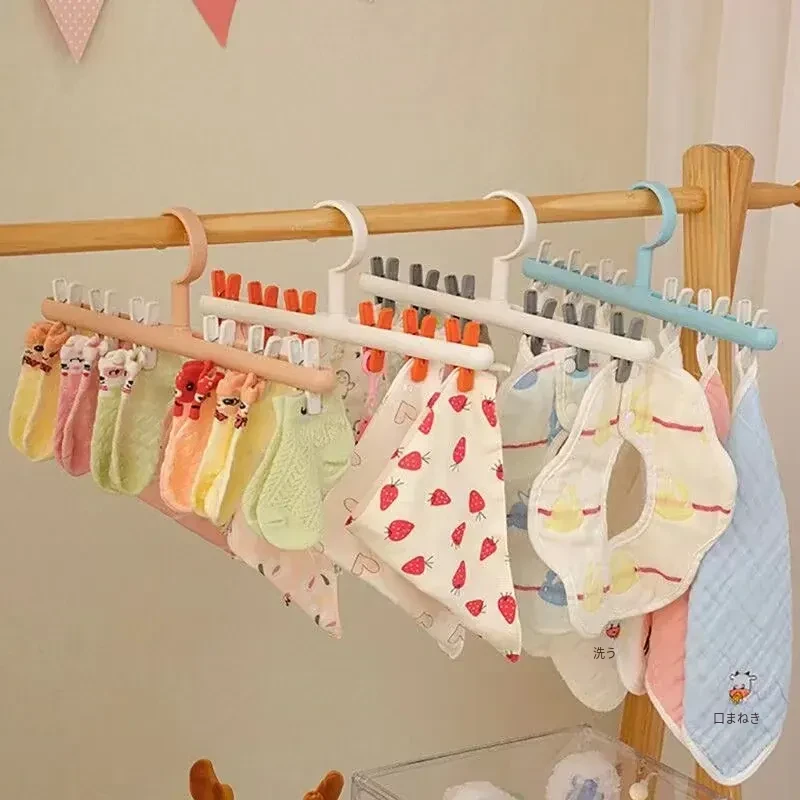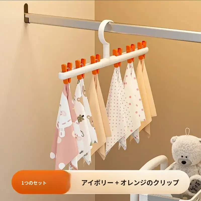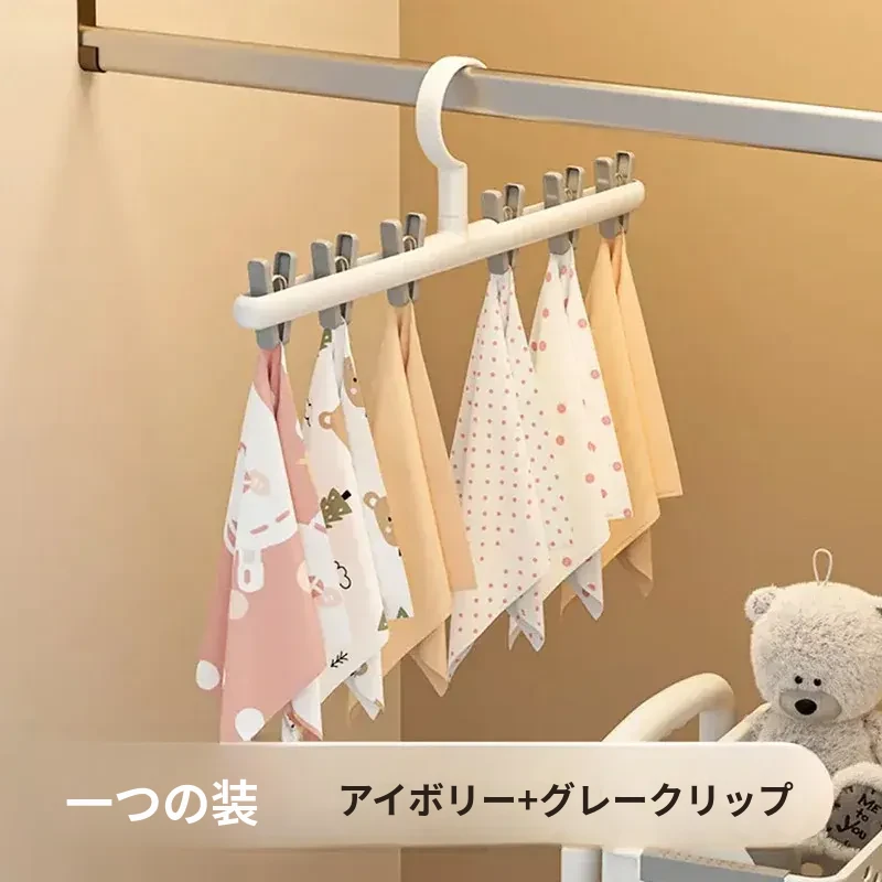 赤ちゃん用ハンガー 多機能クリップ付き 服やおむつ、タオル、帽子、靴下、下着をすっきり整理!おしゃれで便利な収納ラックで、育児をもっと楽に!