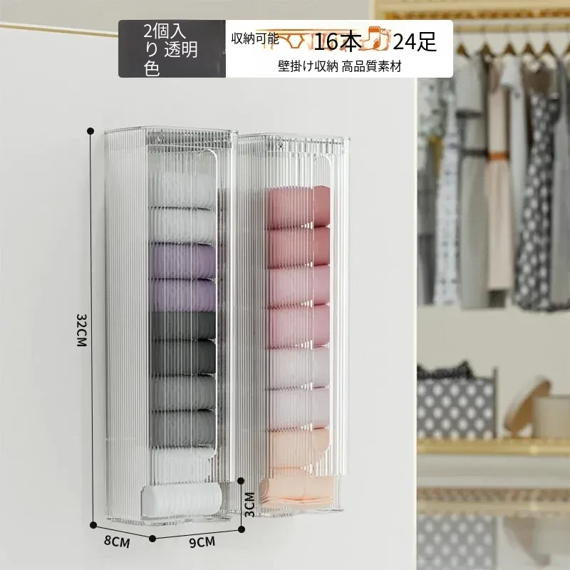 壁掛け透明クローゼット用タオルパンツ靴下収納ボックス(2個セット)