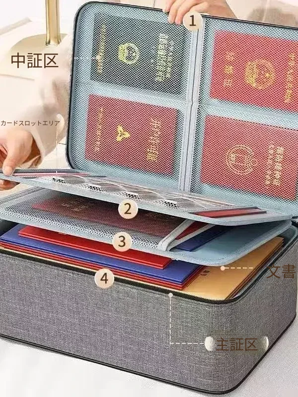 家庭用多機能証明書収納ボックス - 重要書類や住民票をスッキリ整理!便利なカードケース付きで、すべての資料を一元管理。おしゃれで実用的な収納アイテムです!