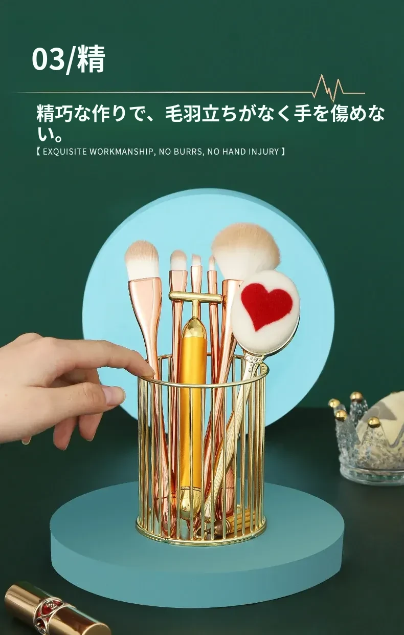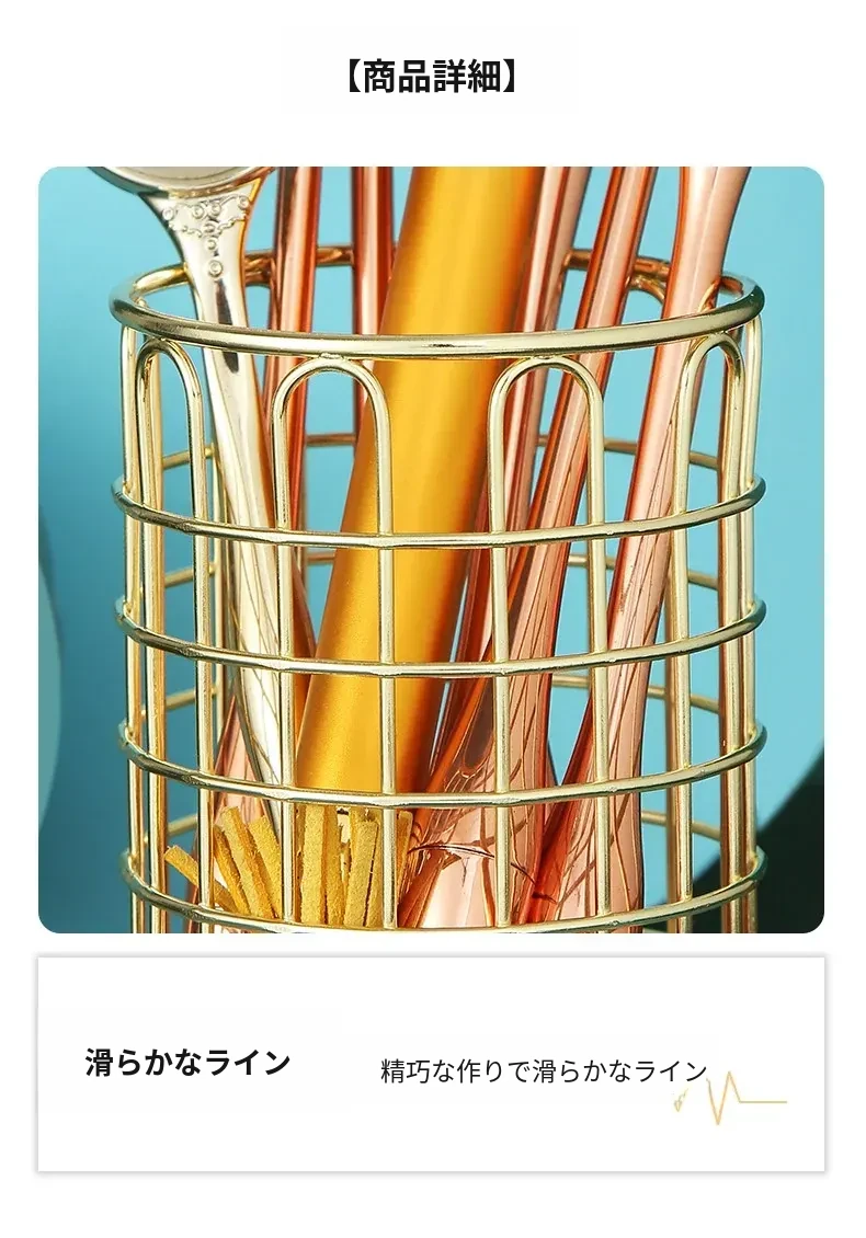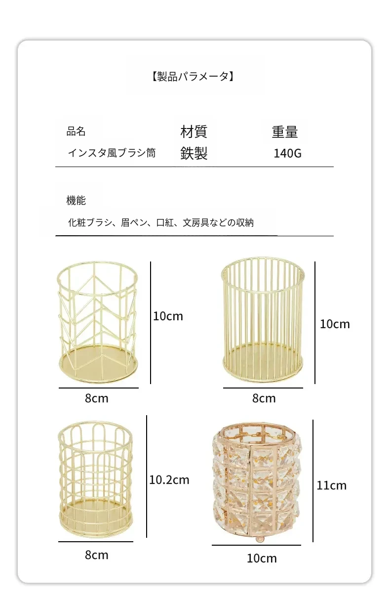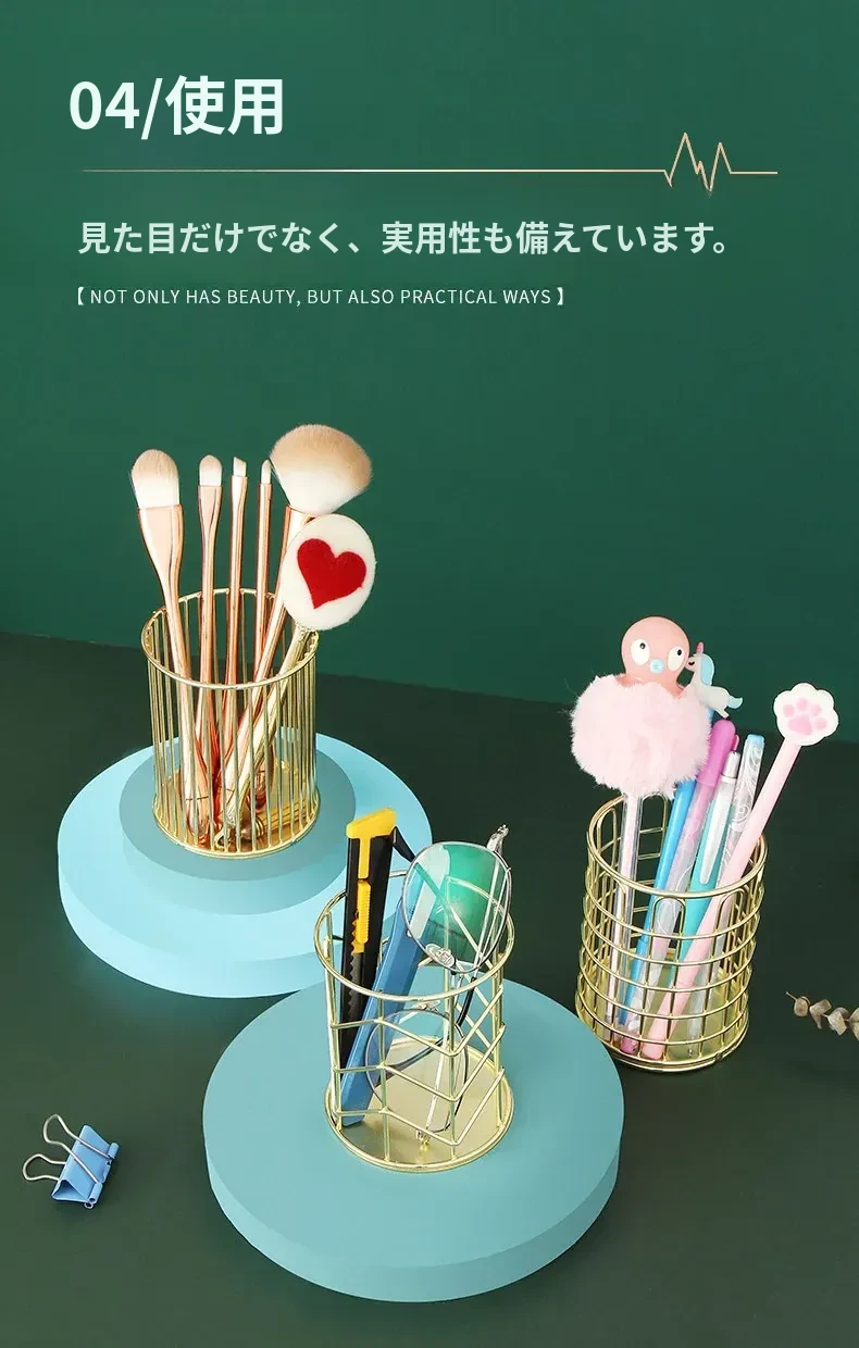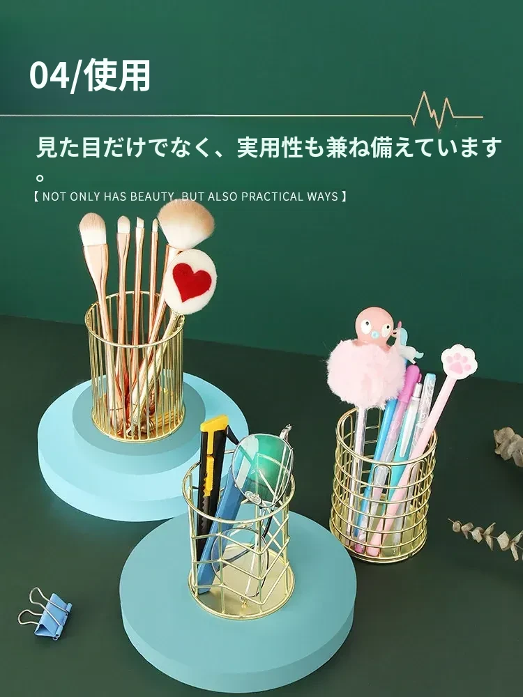 学生向けデスク用メイクブラシ収納バケツ - おしゃれな北欧風のアイアン製ゴールドペンスタンド!化粧品の整理整頓に最適で、埃から守る優れたデザイン。あなたのデスクを美しく彩ります!