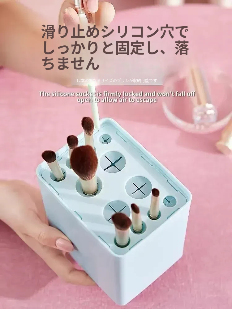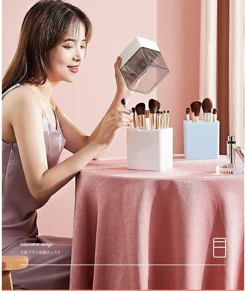 逆さまにしても安心!カバー付き防塵メイクブラシ収納バケツ - 北欧風アイブロウペンシル&リップスティック収納筒、化粧品ブラシ&ペンの整理ボックス。スタイリッシュに収納して、メイクアップをもっと楽しく!