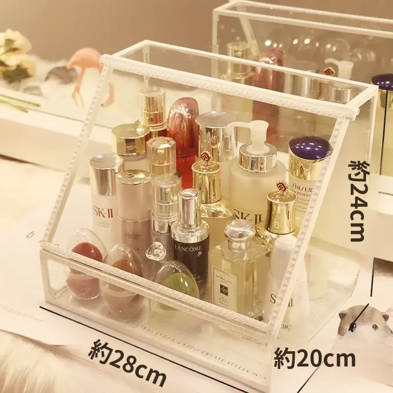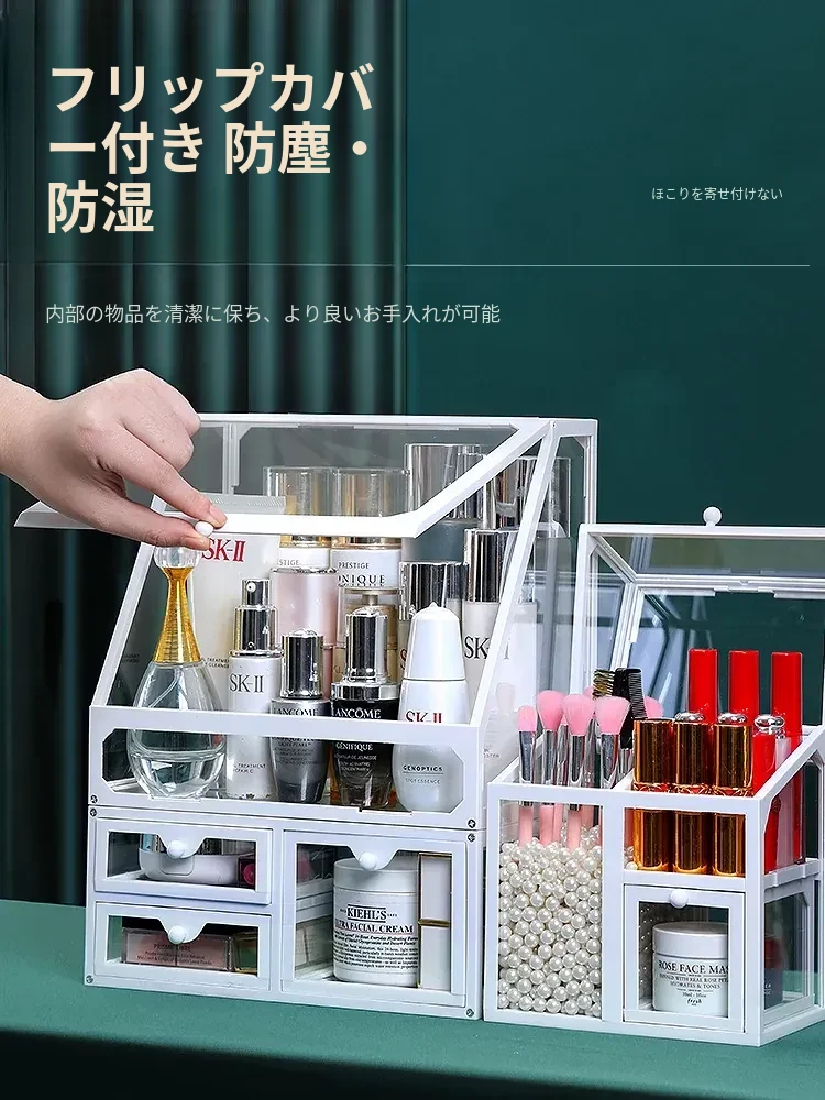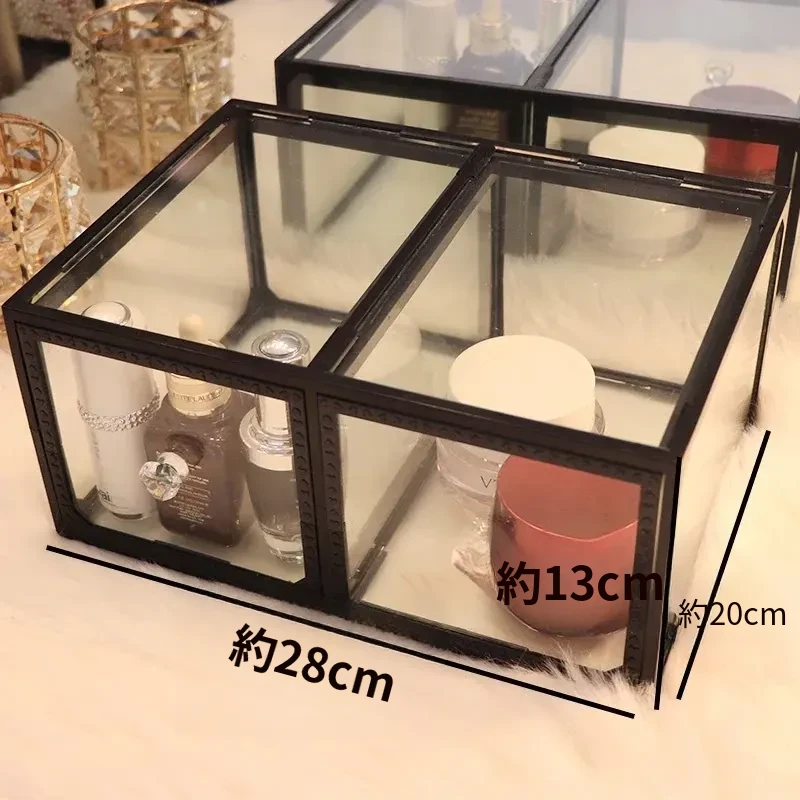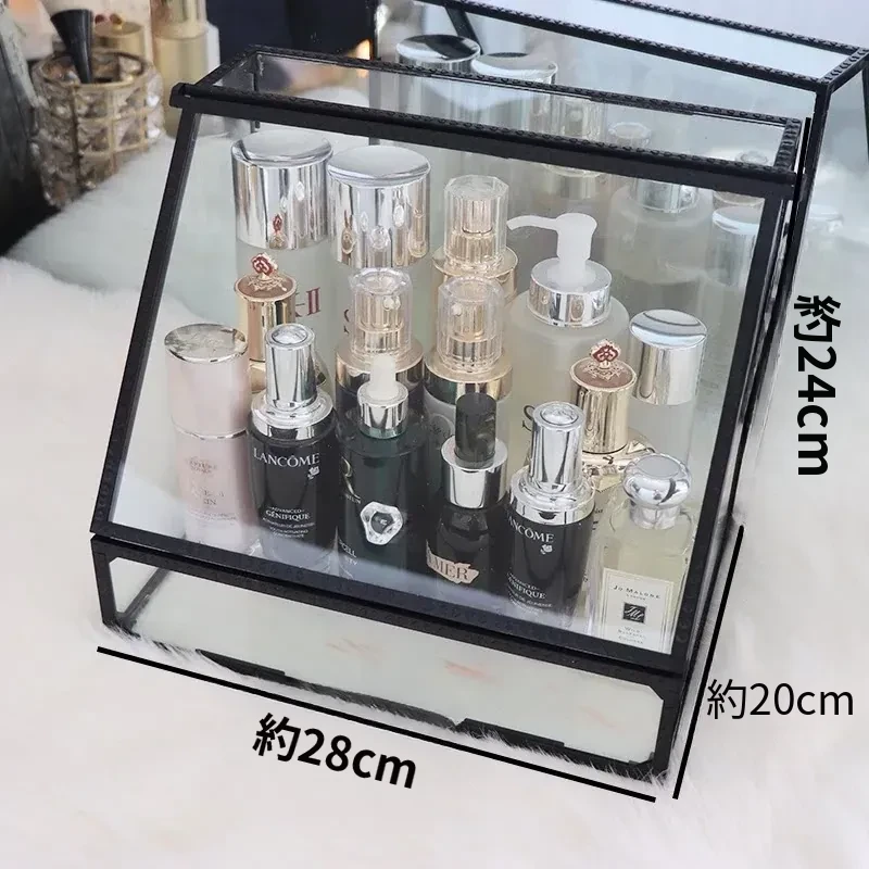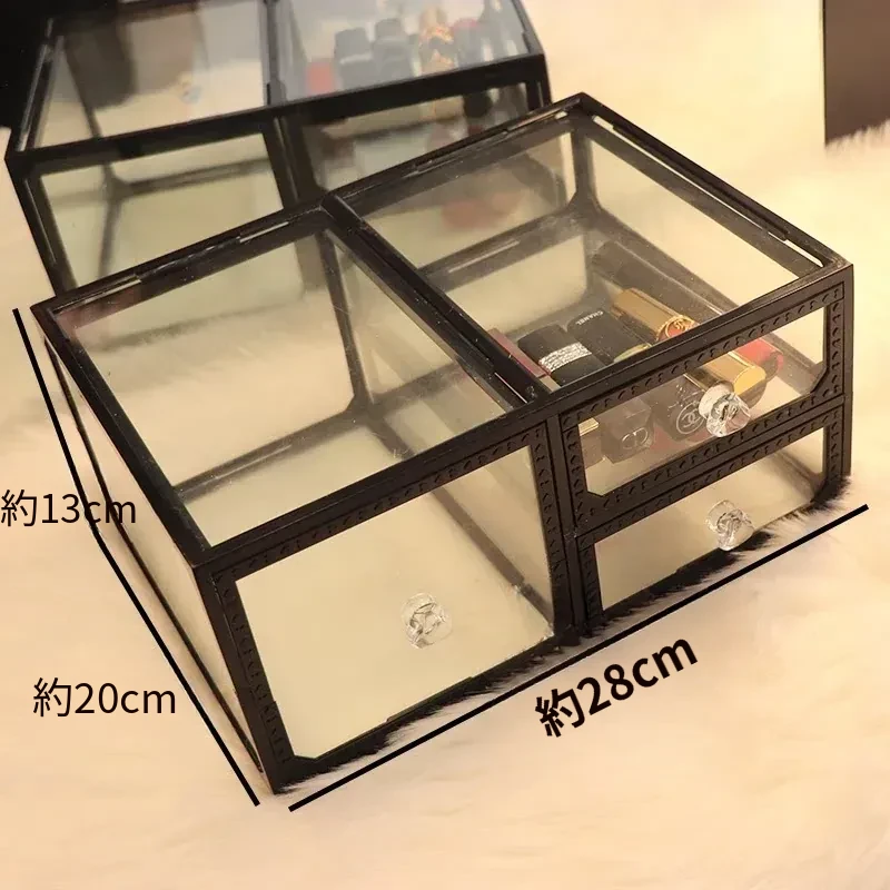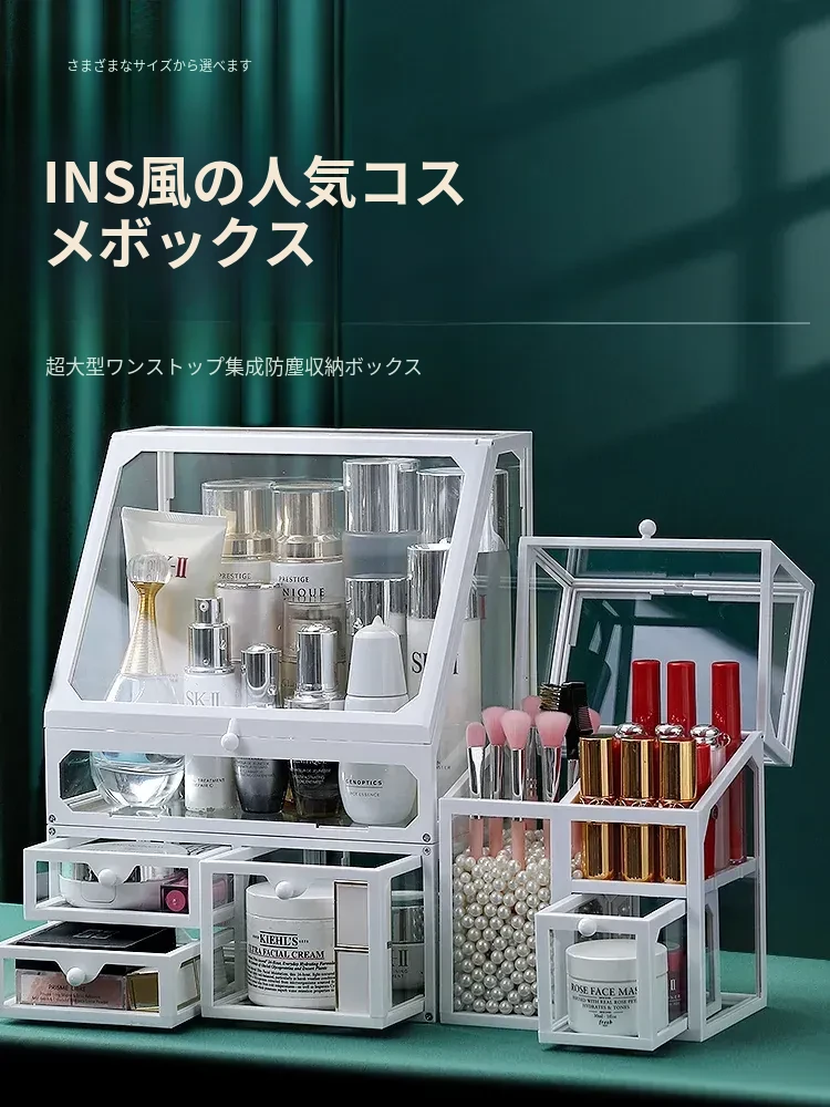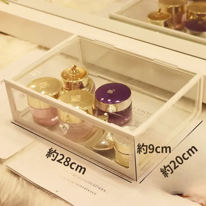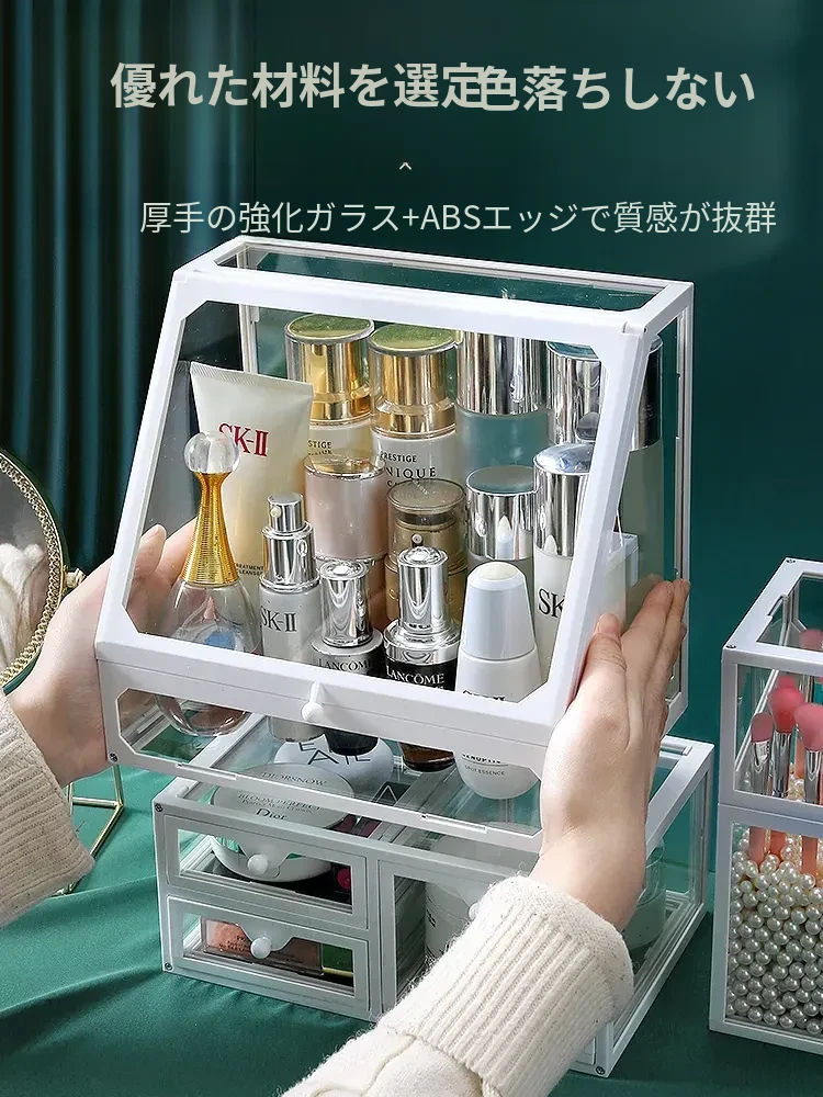 強化ガラス製防塵コスメ収納ボックス|人気のアイテム!家庭用デスクトップ引き出し式メイク台|スキンケア製品の整理に最適!おしゃれで機能的な収納で、あなたのビューティーライフをサポートします!
