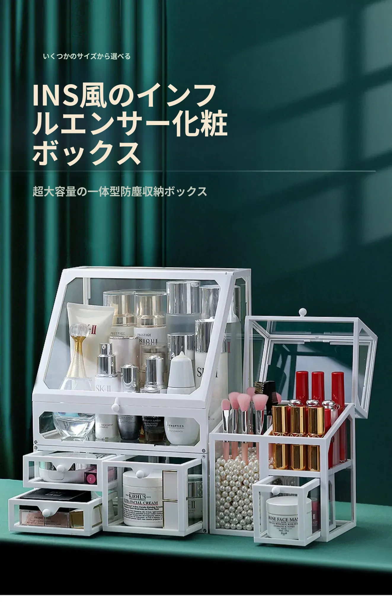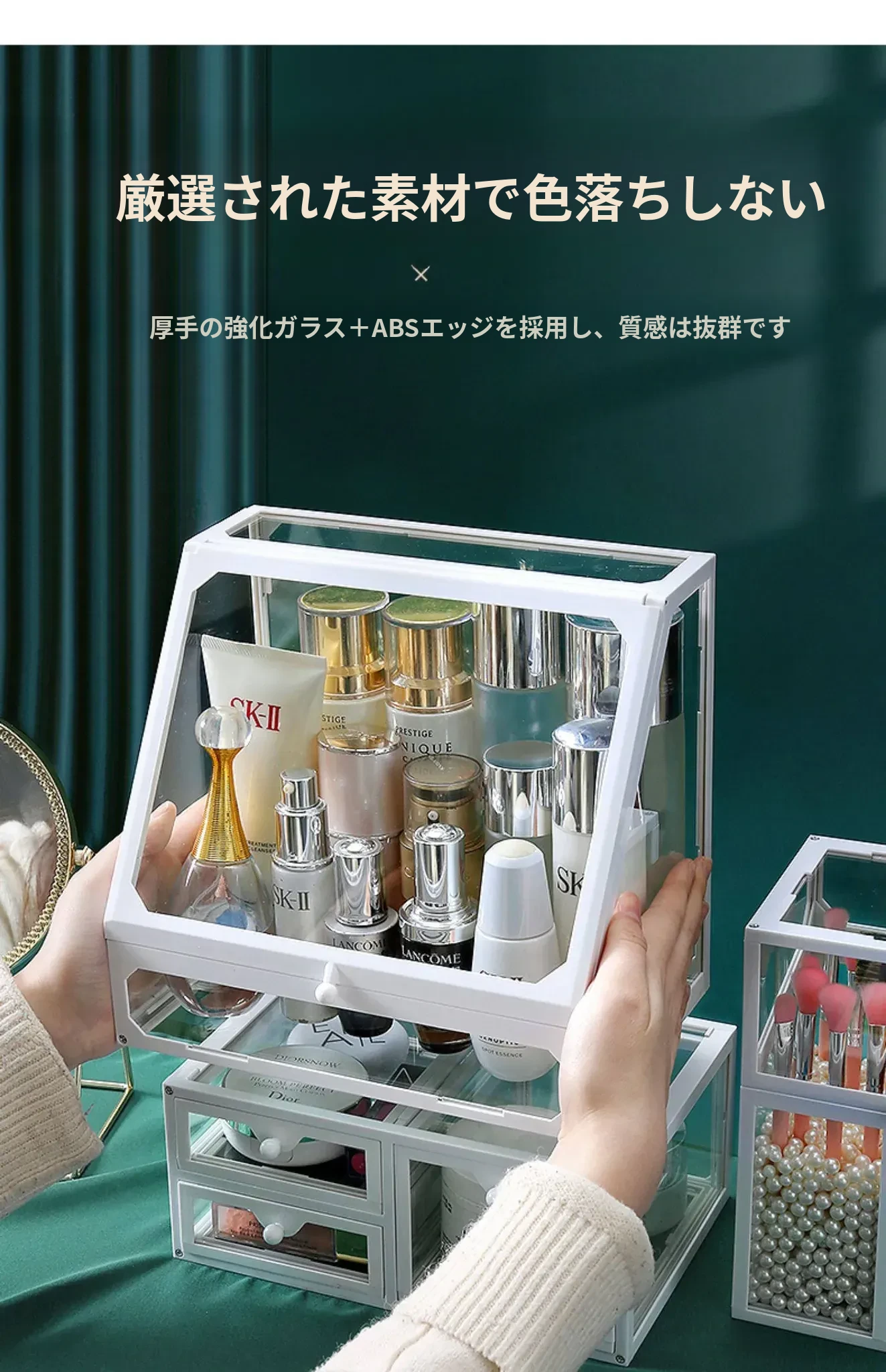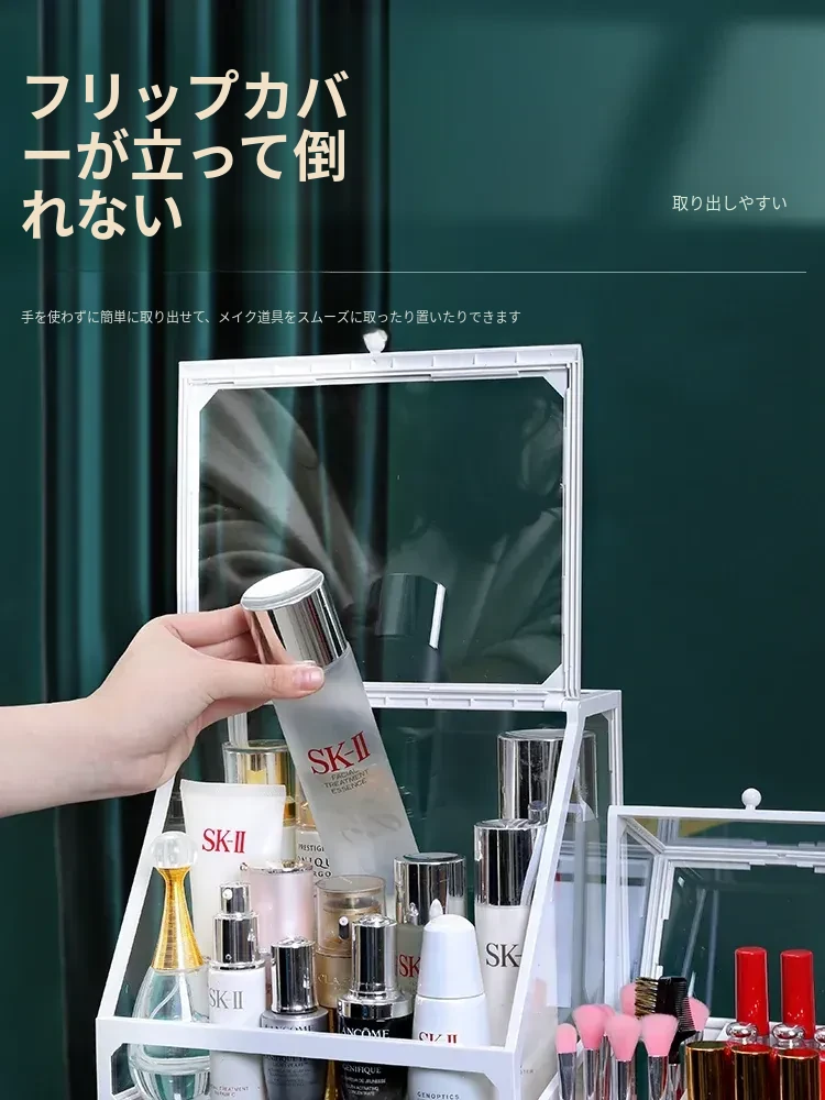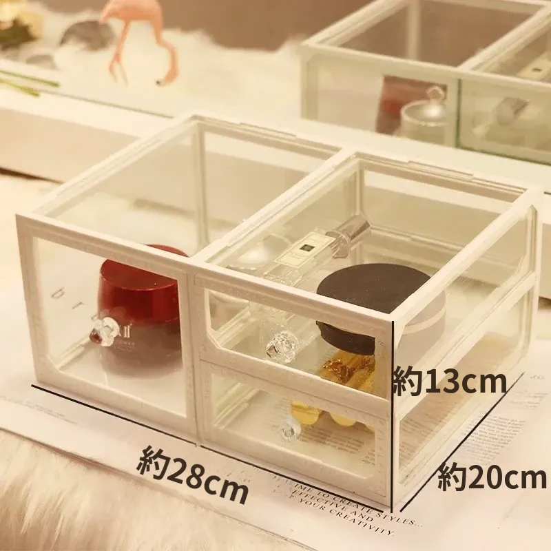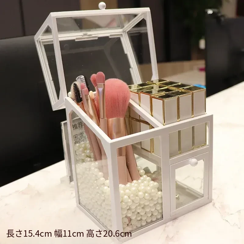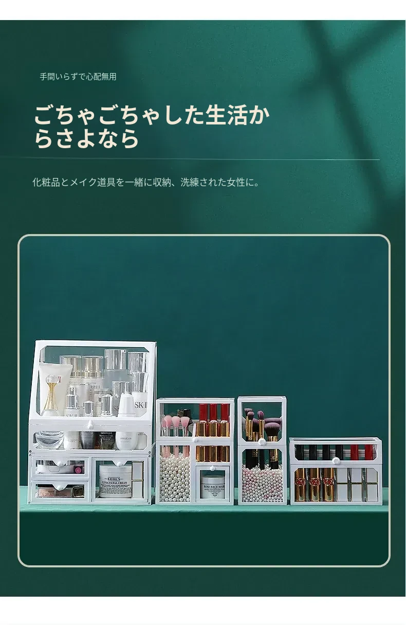 強化ガラス製防塵コスメ収納ボックス|人気のアイテム!家庭用デスクトップ引き出し式メイク台|スキンケア製品の整理に最適!おしゃれで機能的な収納で、あなたのビューティーライフをサポートします!