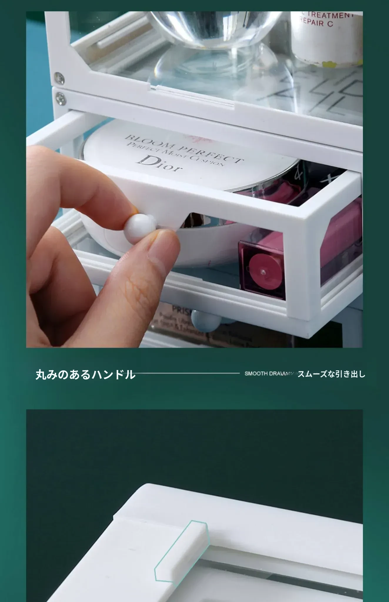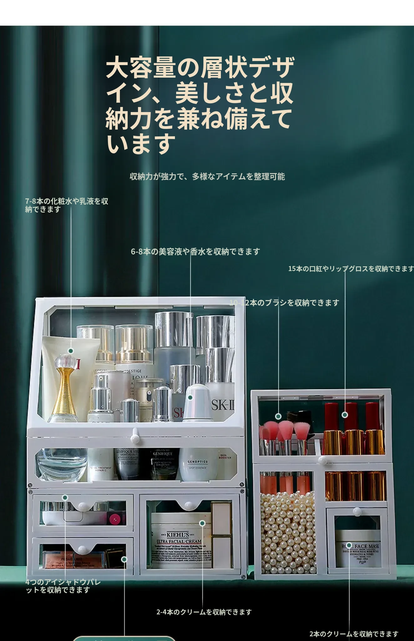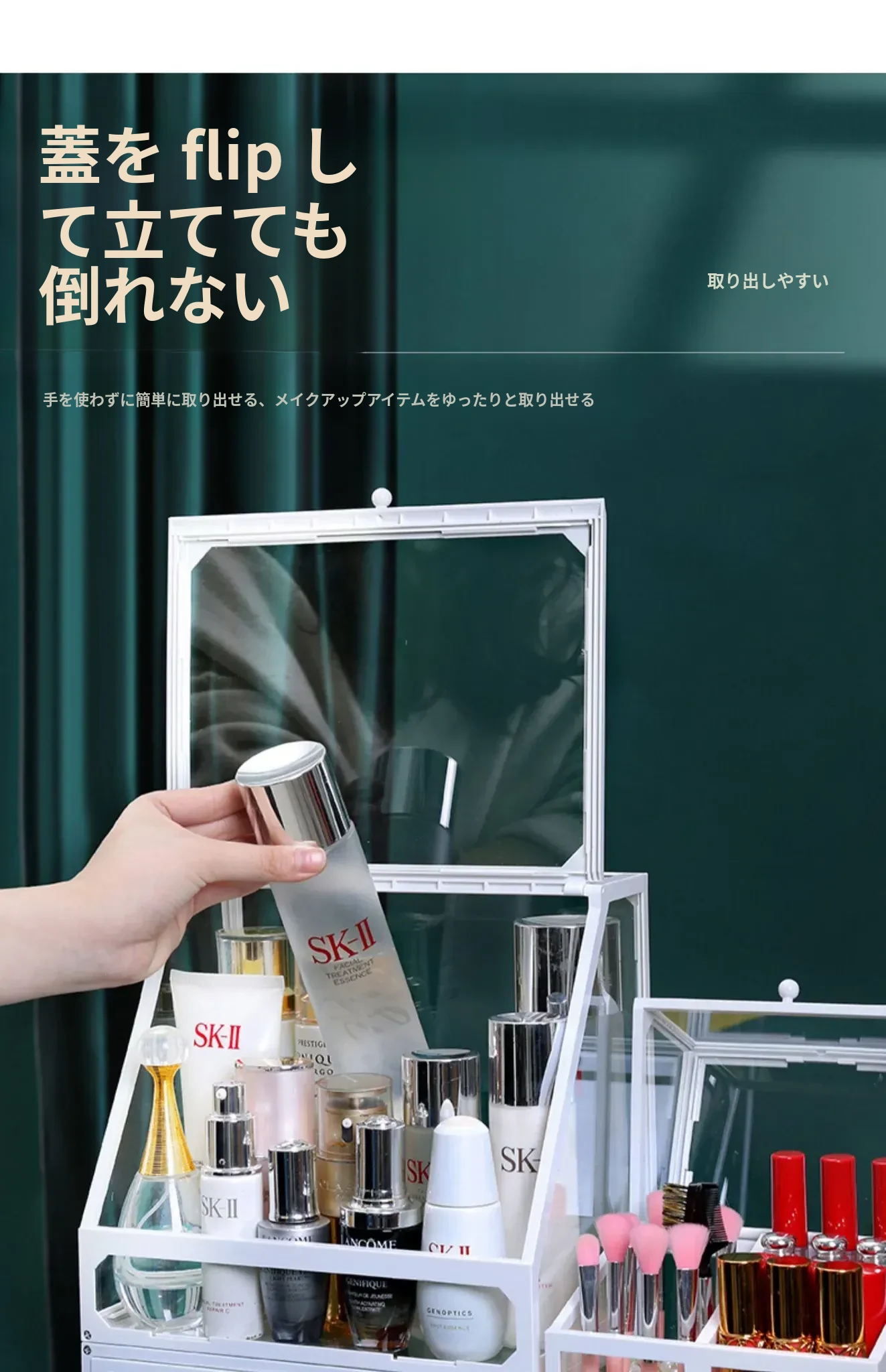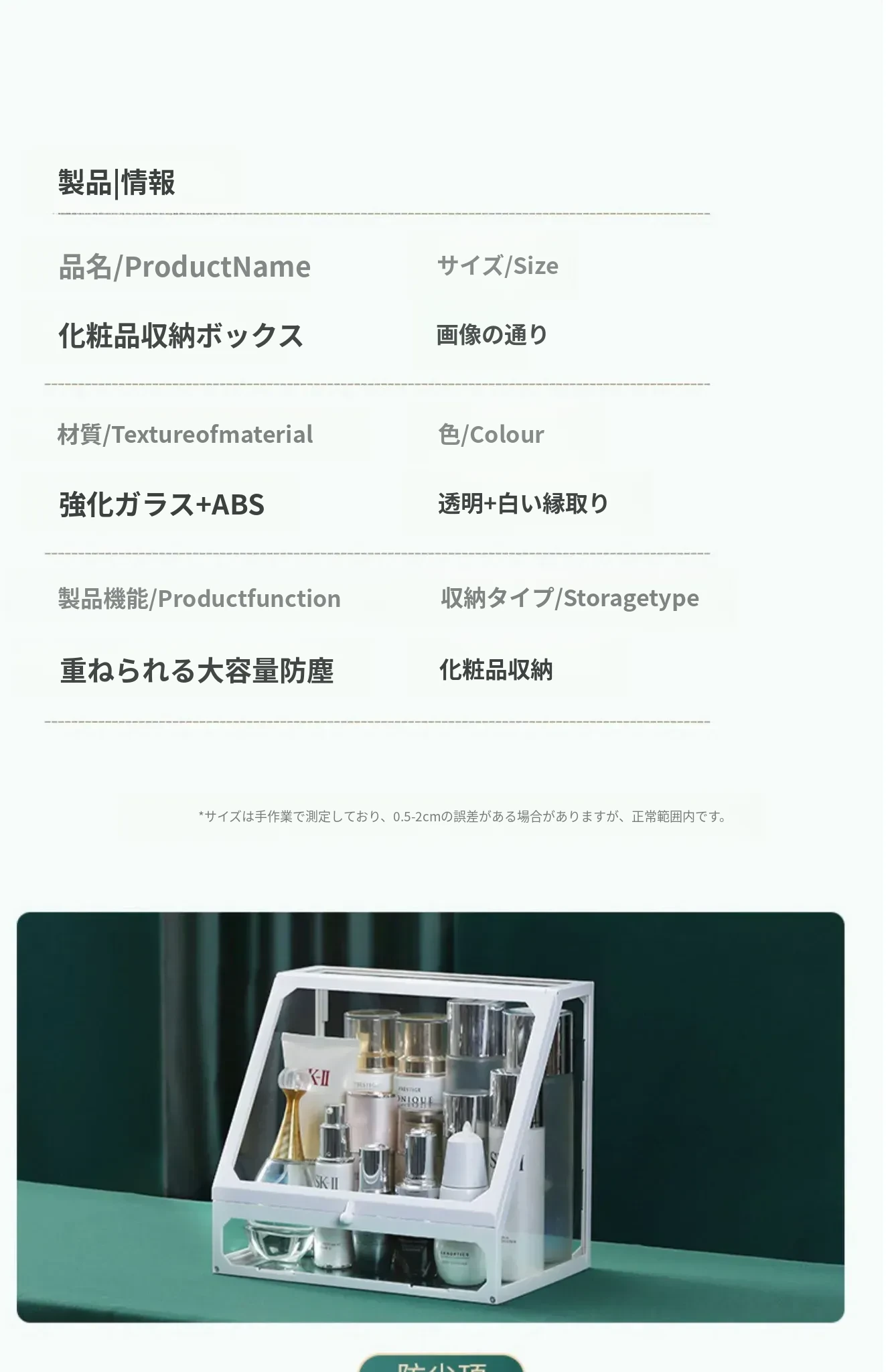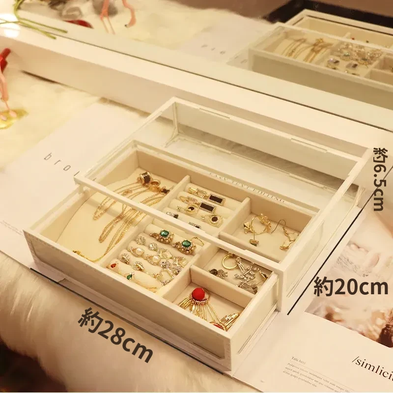 強化ガラス製防塵コスメ収納ボックス|人気のアイテム!家庭用デスクトップ引き出し式メイク台|スキンケア製品の整理に最適!おしゃれで機能的な収納で、あなたのビューティーライフをサポートします!