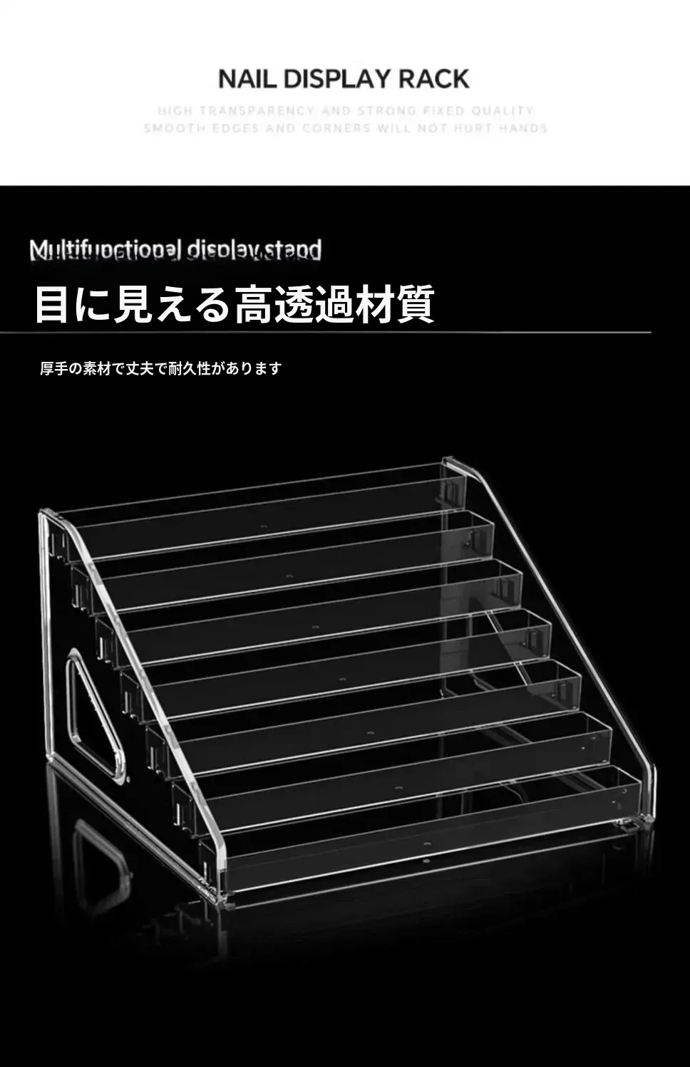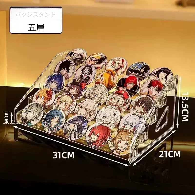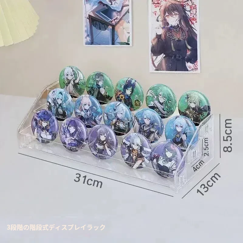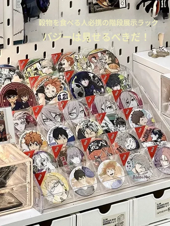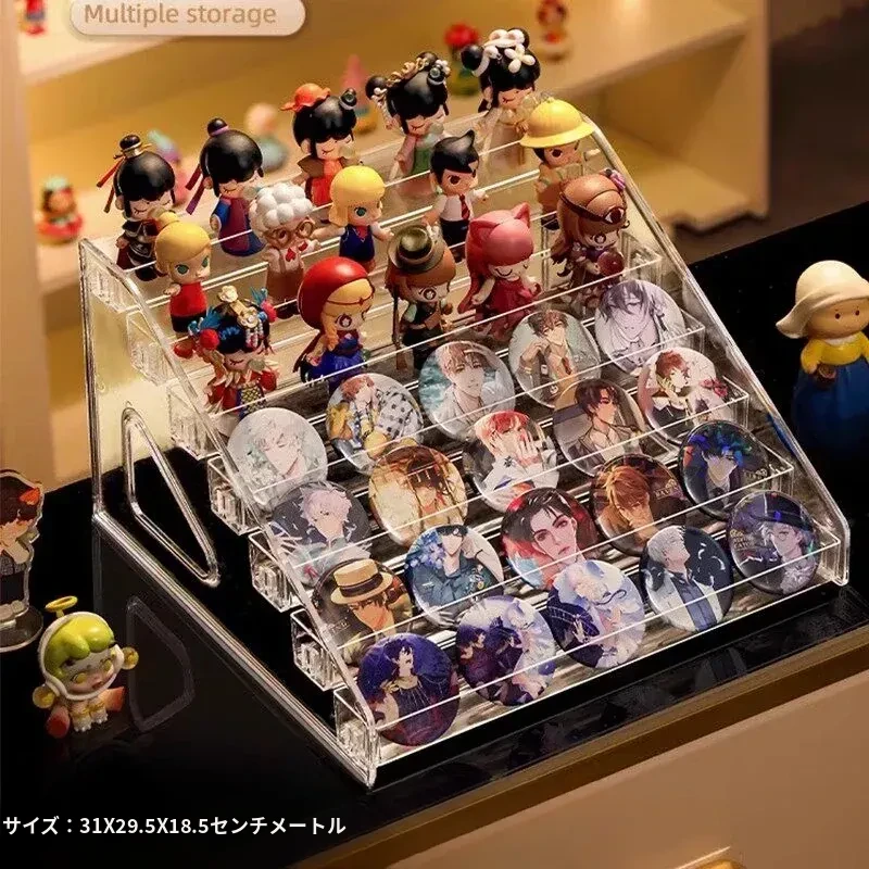 デスクトップ用透明アクリル展示スタンド - おしゃれな階段型収納ボックス、バッジや周辺グッズの整理に最適!あなたのコレクションを美しく飾ります。