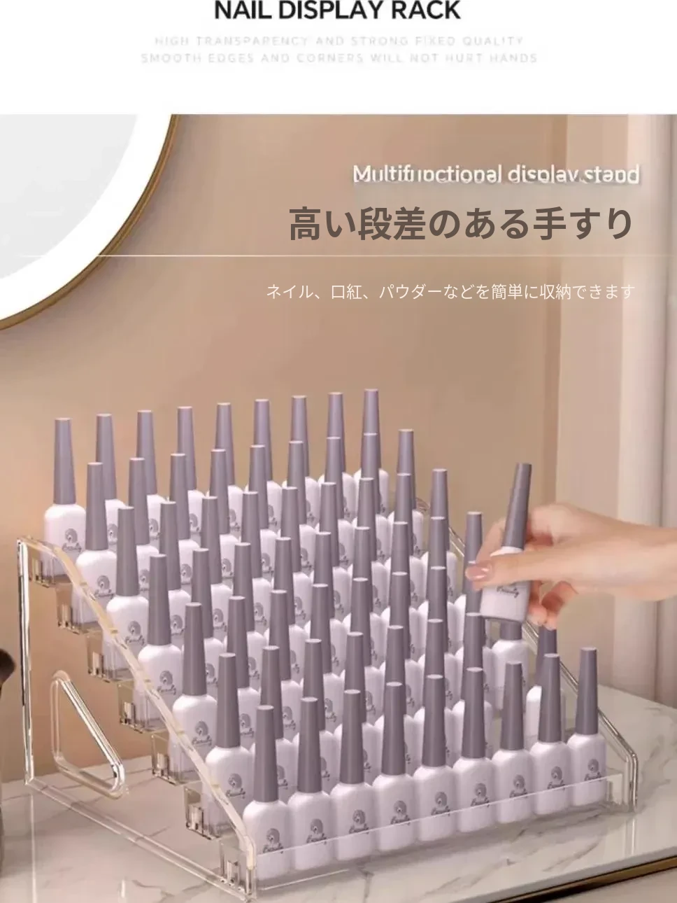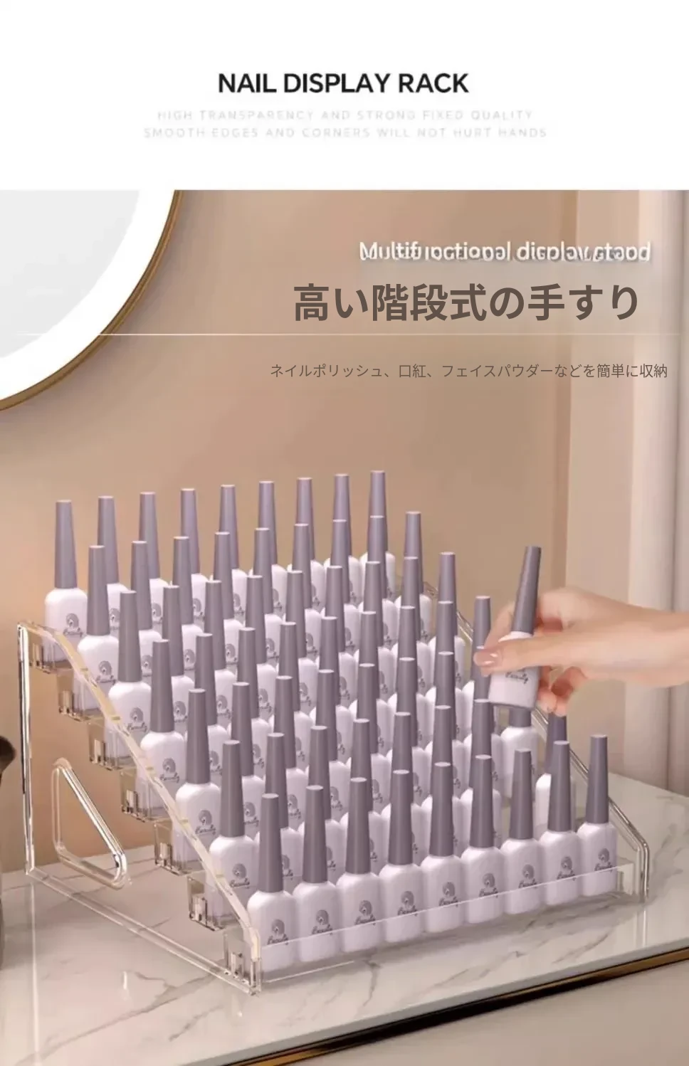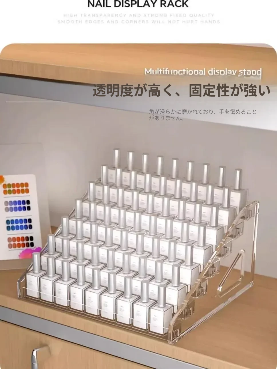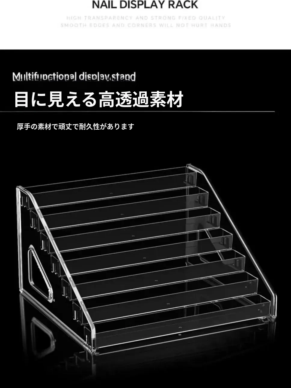 デスクトップ用透明アクリル展示スタンド - おしゃれな階段型収納ボックス、バッジや周辺グッズの整理に最適!あなたのコレクションを美しく飾ります。