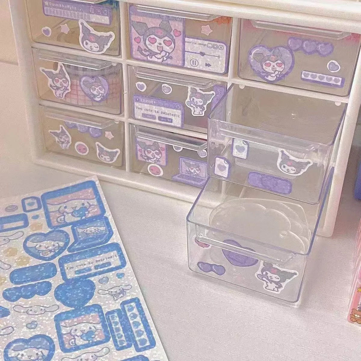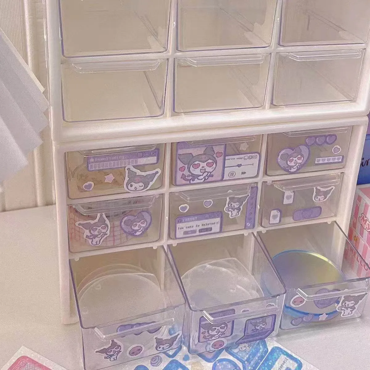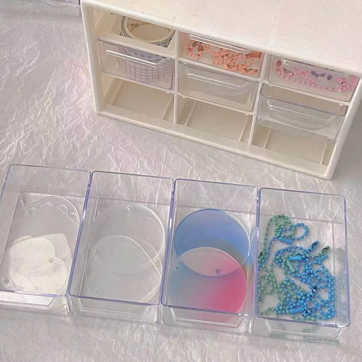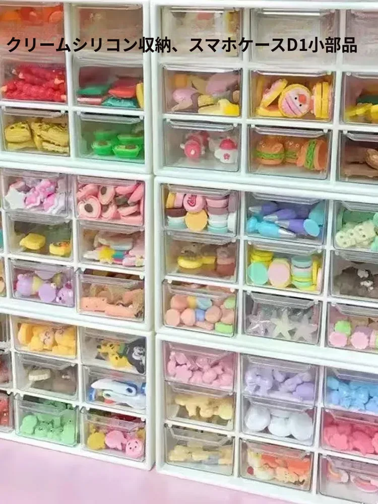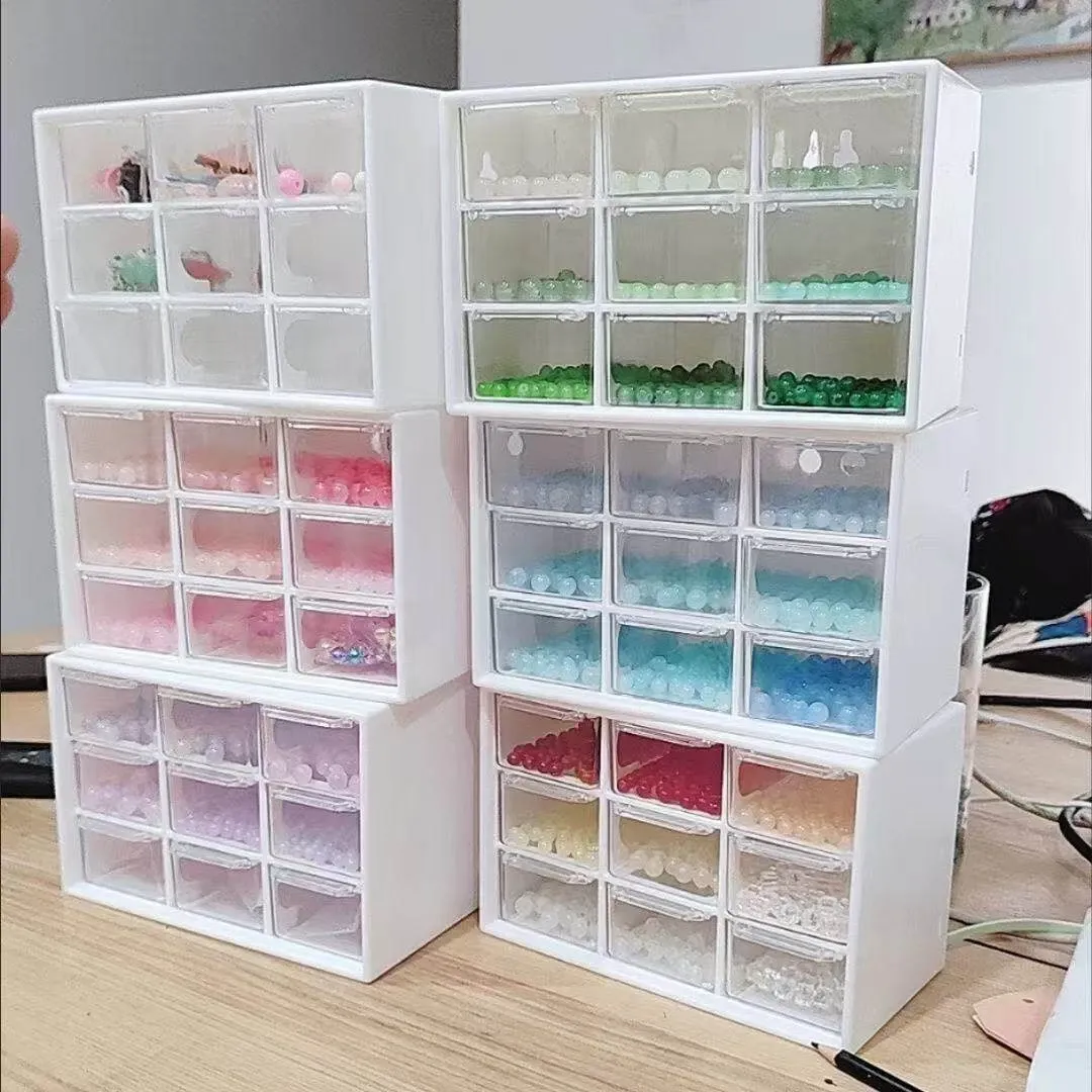 クリームアクセサリー整理ボックス|引き出し式のビーズ収納|インスタ映えする透明デザイン|美しい琉璃のような仕上げで、おしゃれに収納!