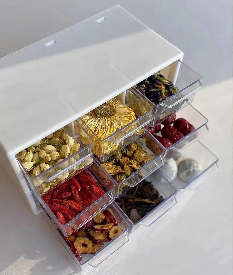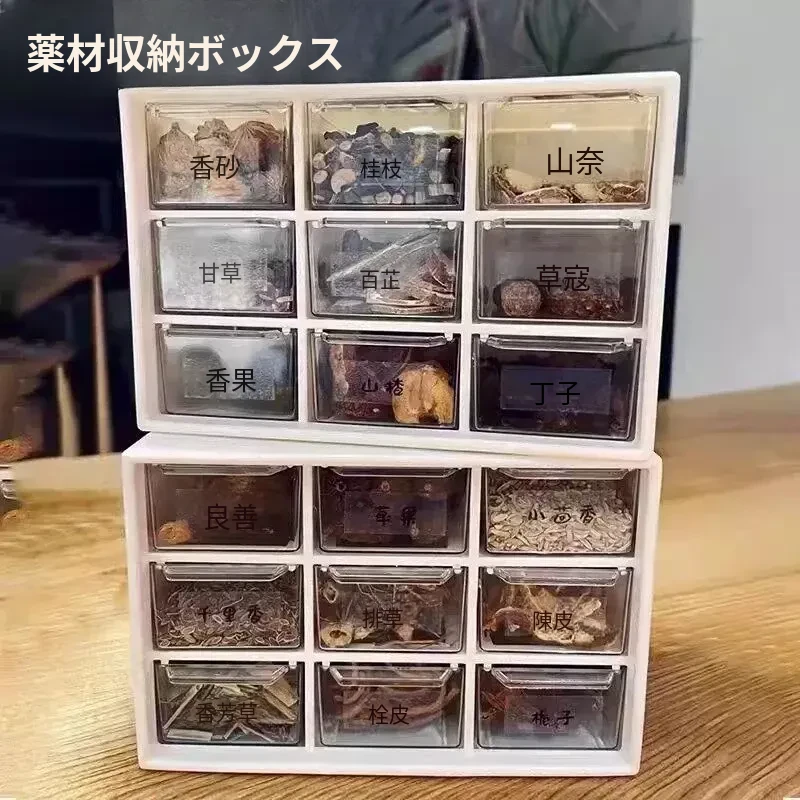 透明な薬材収納ボックス - 中薬材や大きなスパイスを整理!商用や学生寮にも最適な蓋付きミニデスクトップ分けボックス。スッキリとした見た目で、使いやすさ抜群!