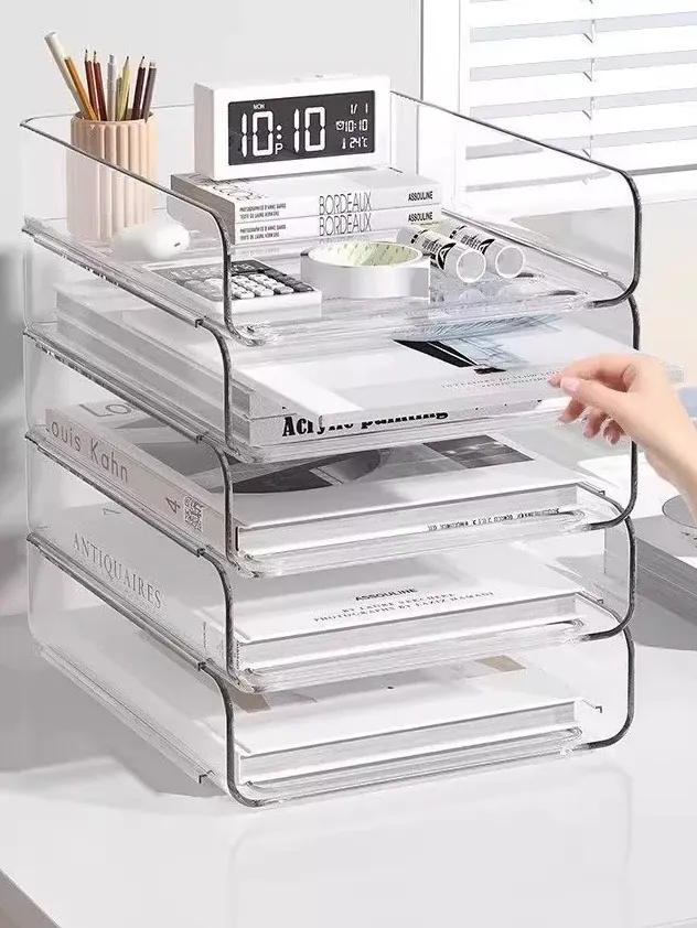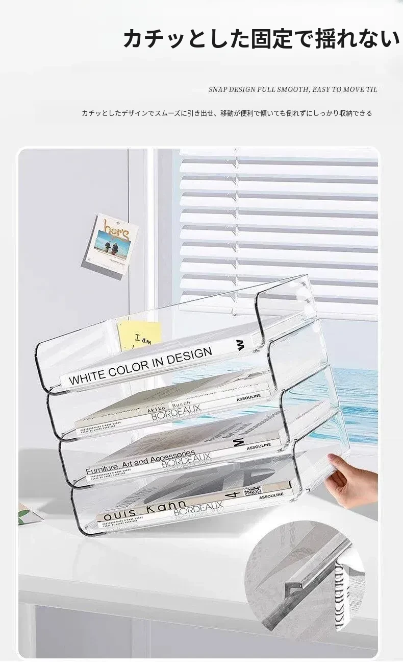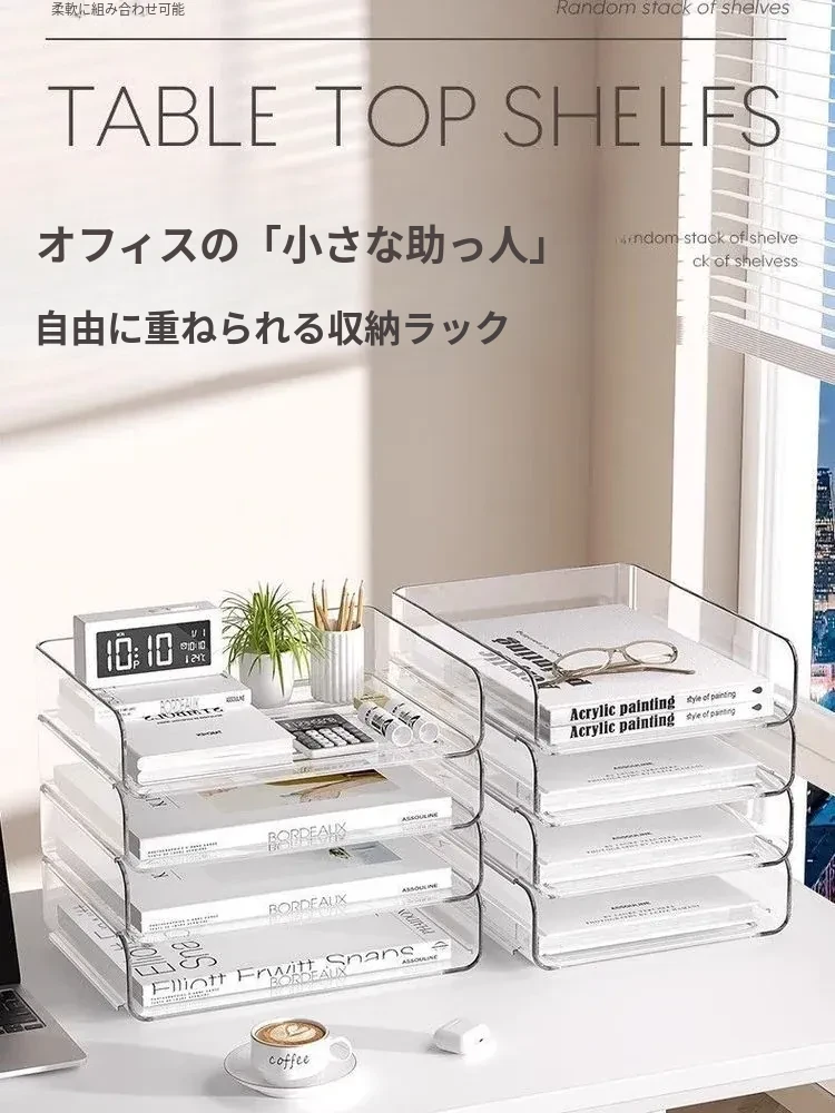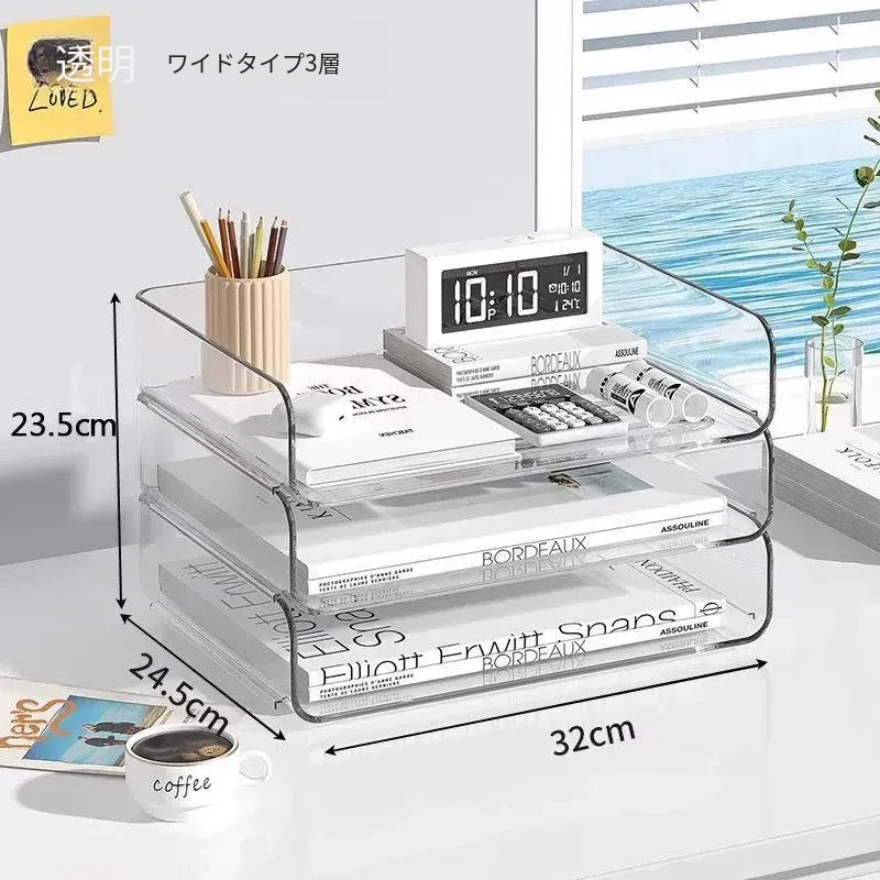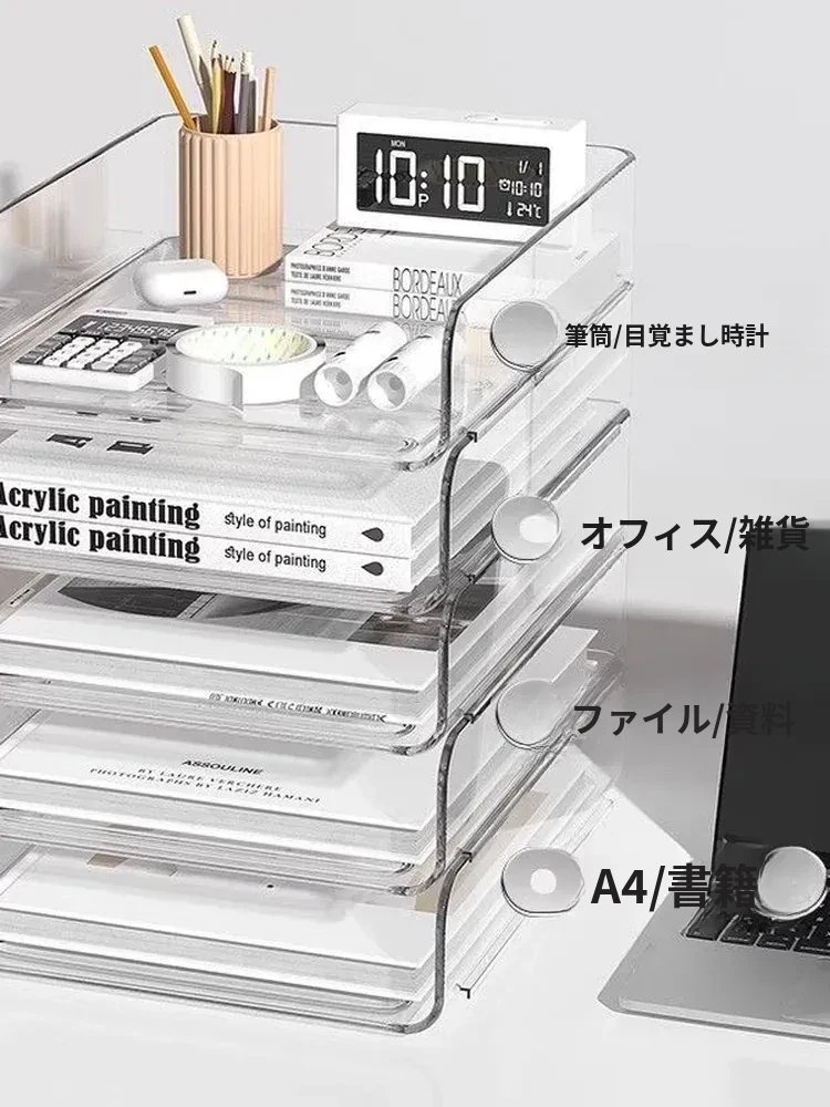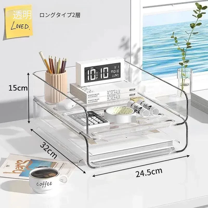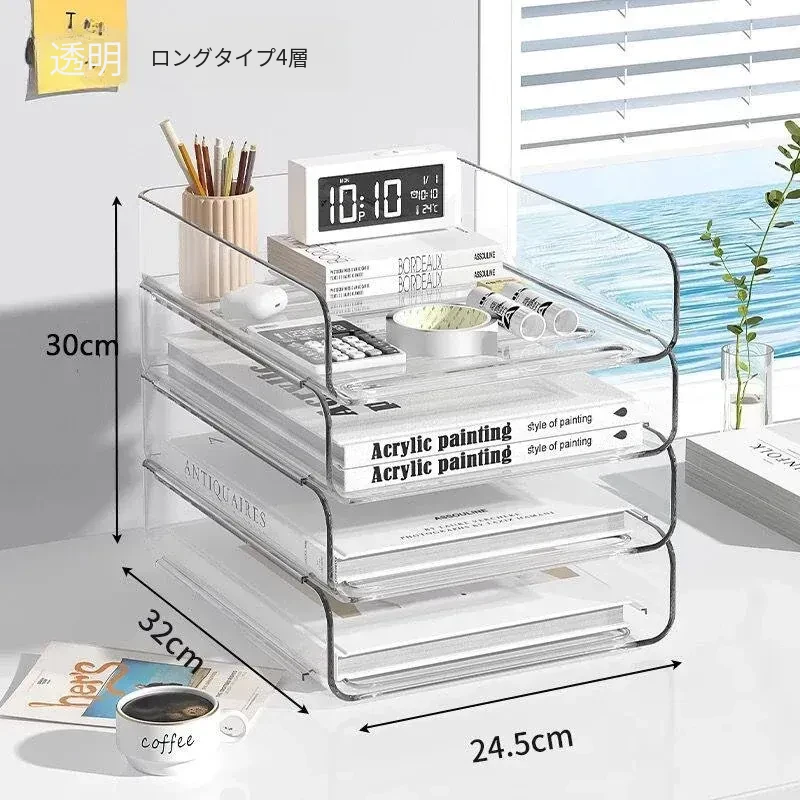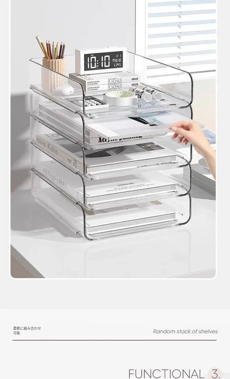 透明な多層ファイルスタンド - デスク上の資料整理に最適!オフィス必須の文書収納ラック、厚手設計で安定感抜群!あなたの仕事をスマートにサポートします。
