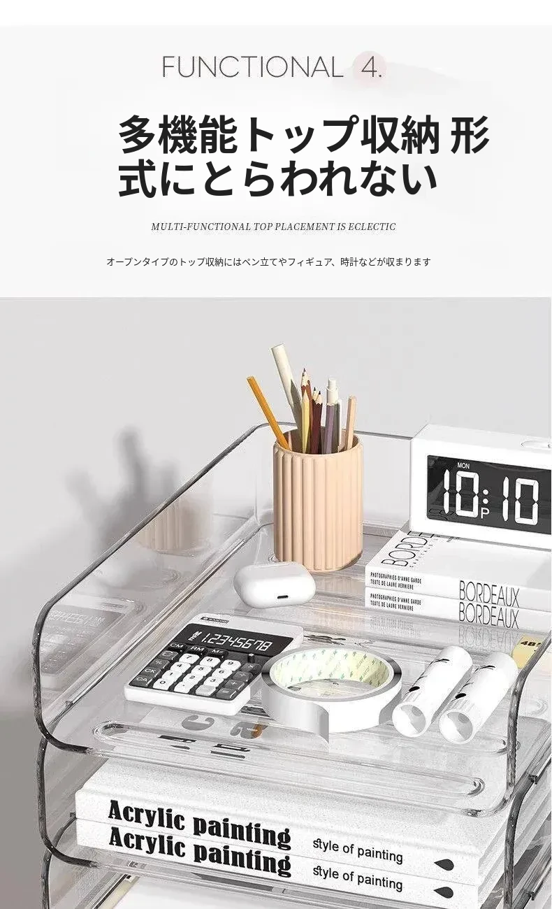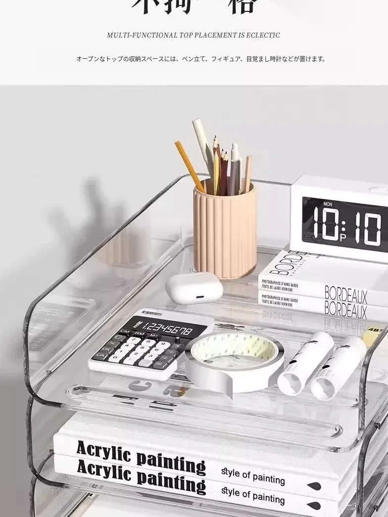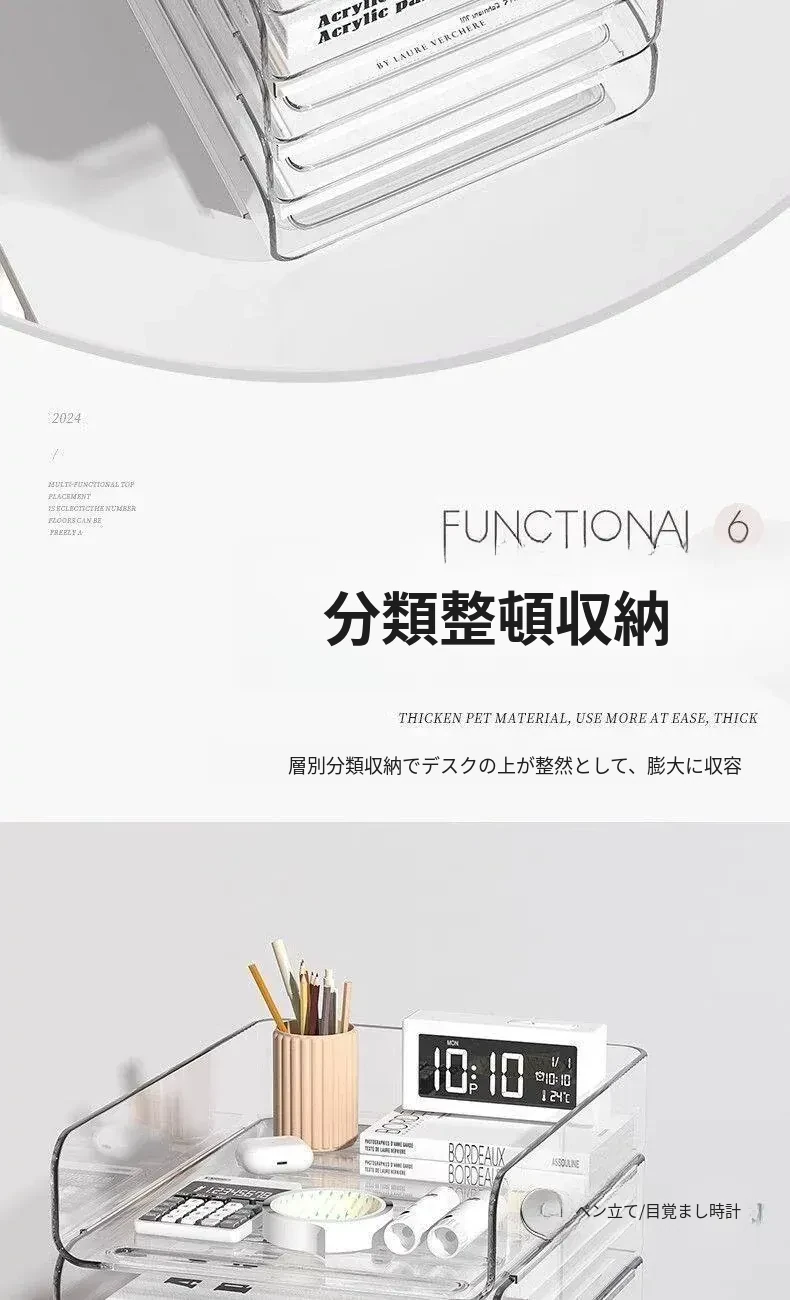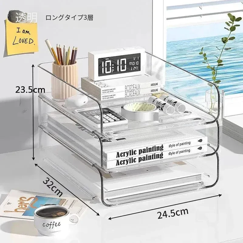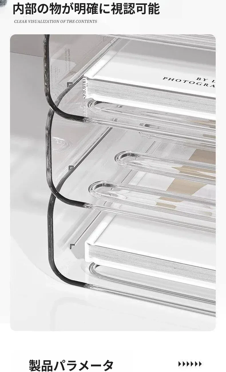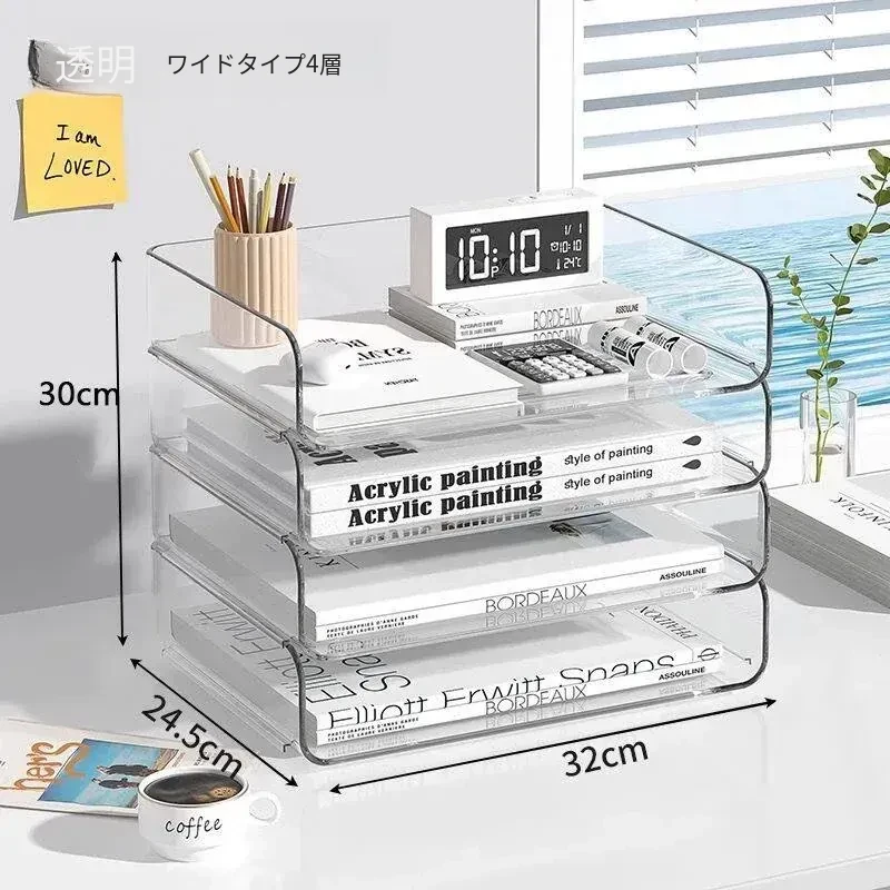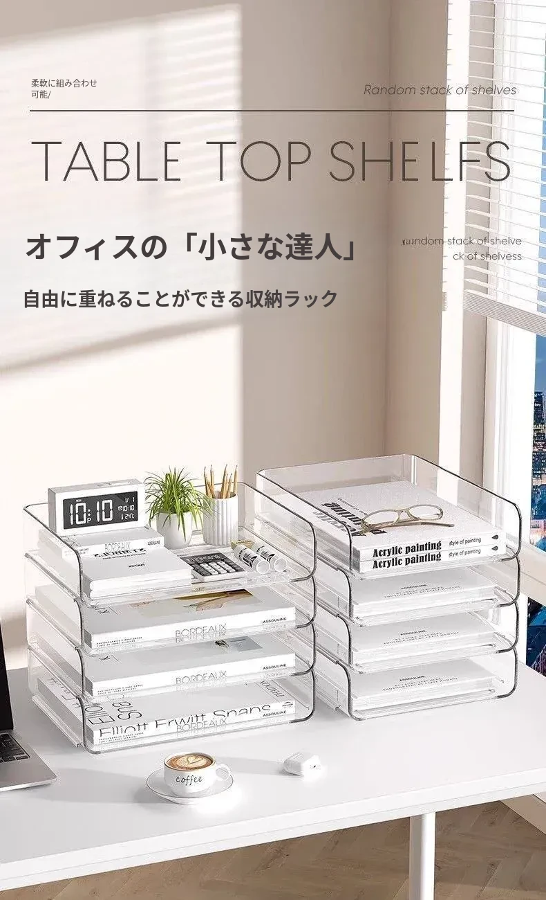 透明な多層ファイルスタンド - デスク上の資料整理に最適!オフィス必須の文書収納ラック、厚手設計で安定感抜群!あなたの仕事をスマートにサポートします。