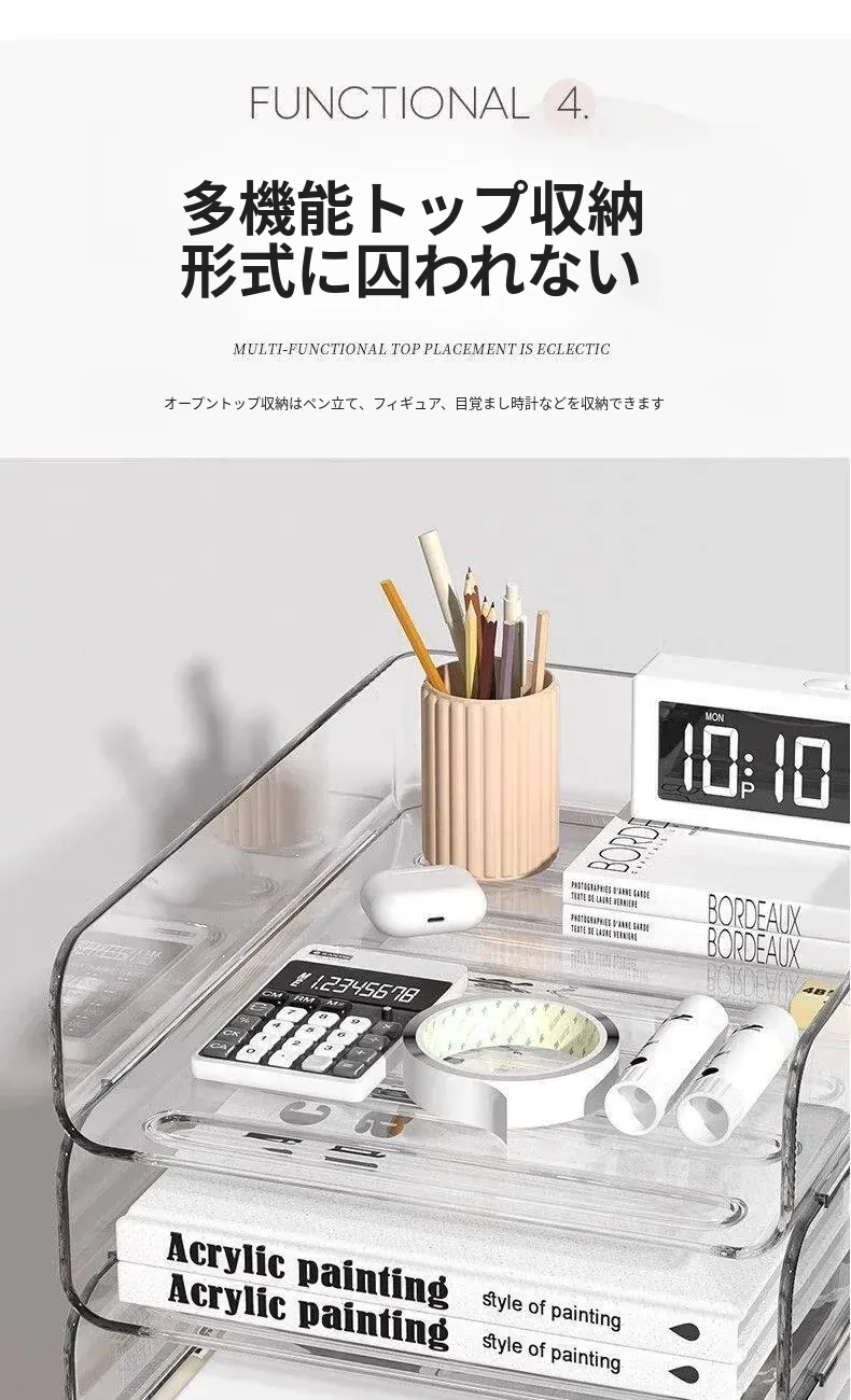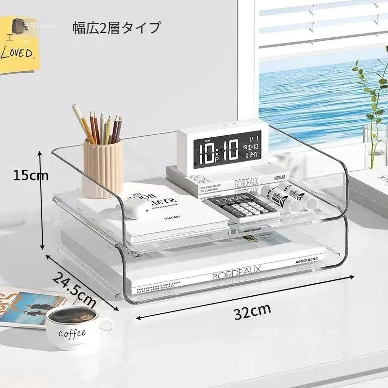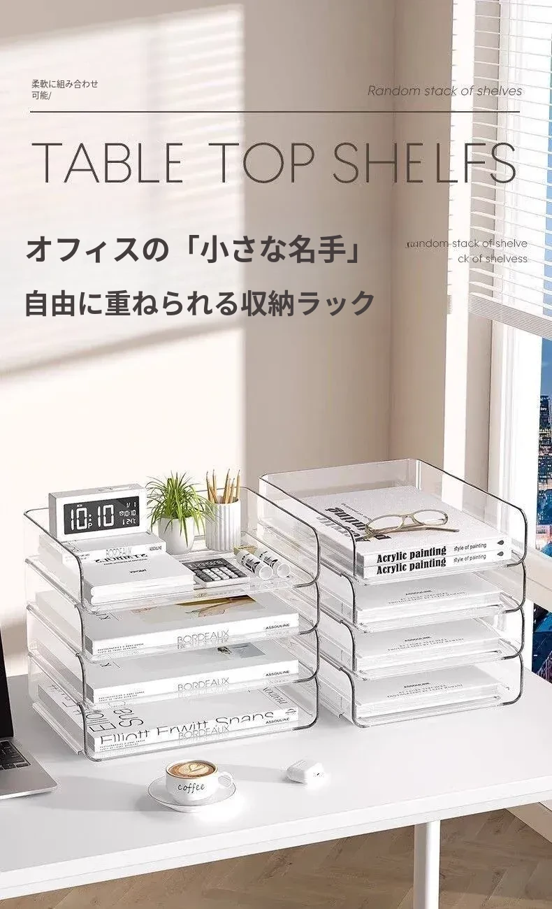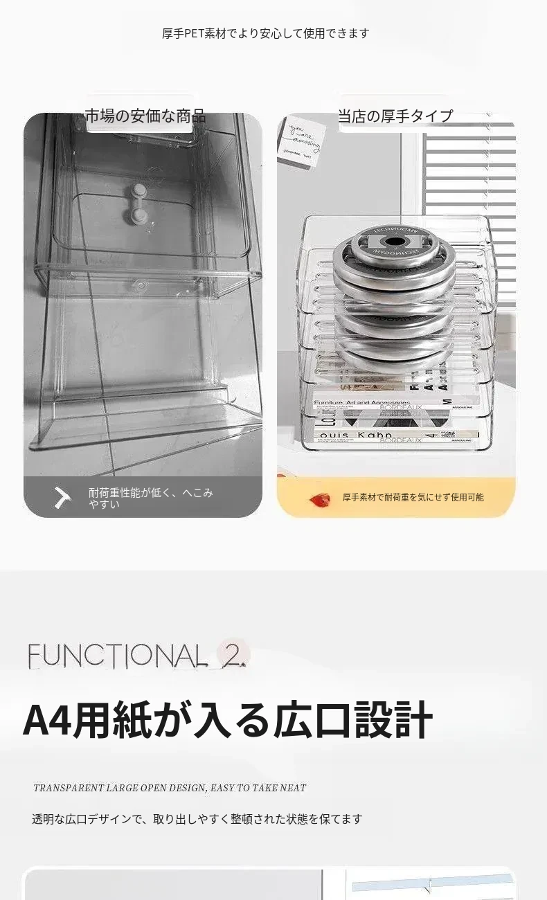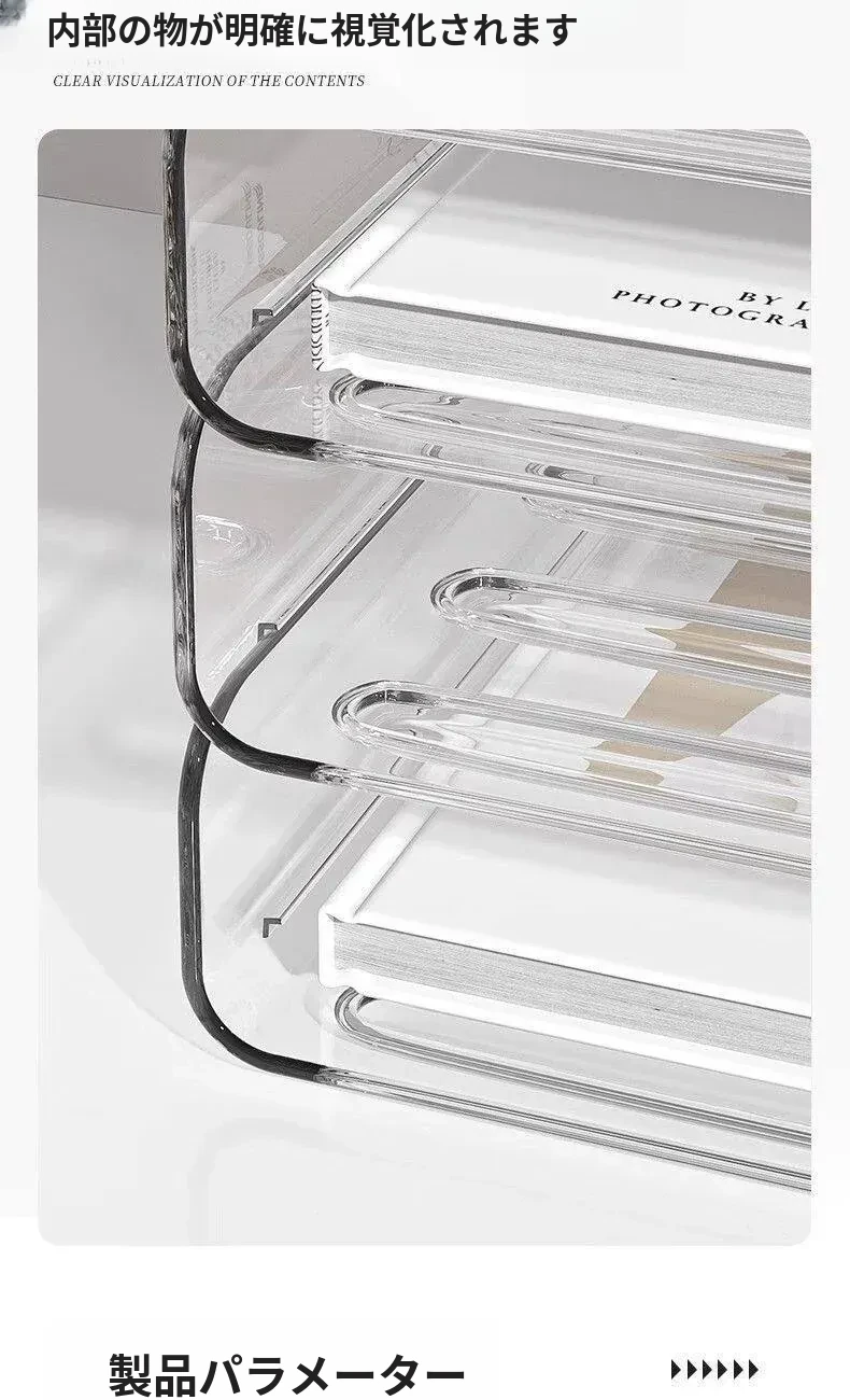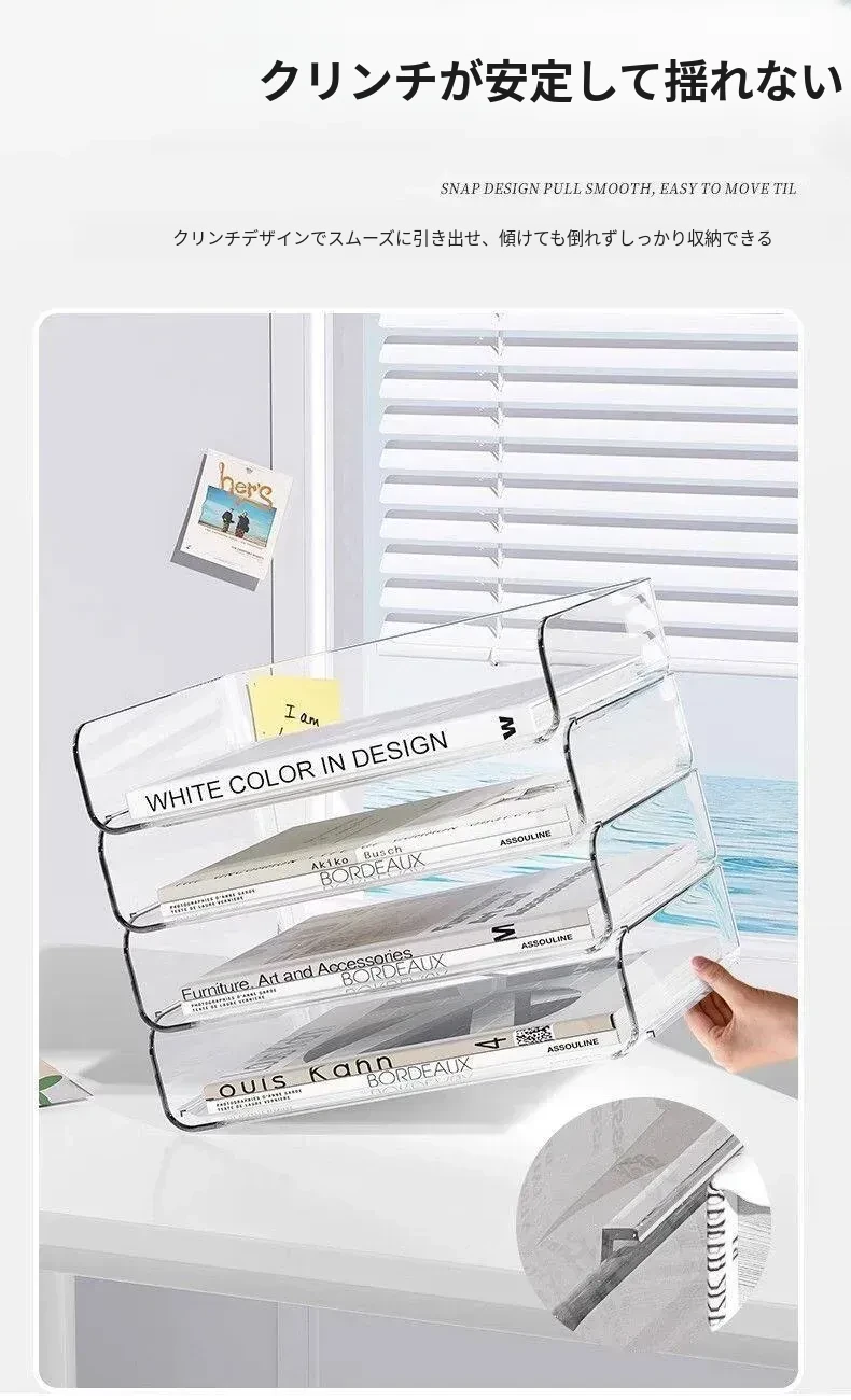 透明オフィスデスク用ファイル収納ラック|デスク抽斗整理の必需品|A4用紙もスッキリ収納できる便利アイテム!おしゃれで機能的な整理整頓を実現します。