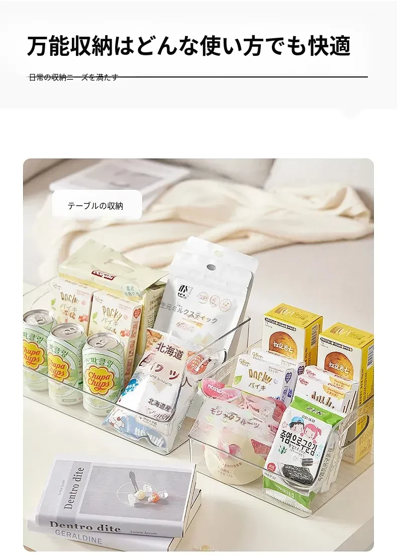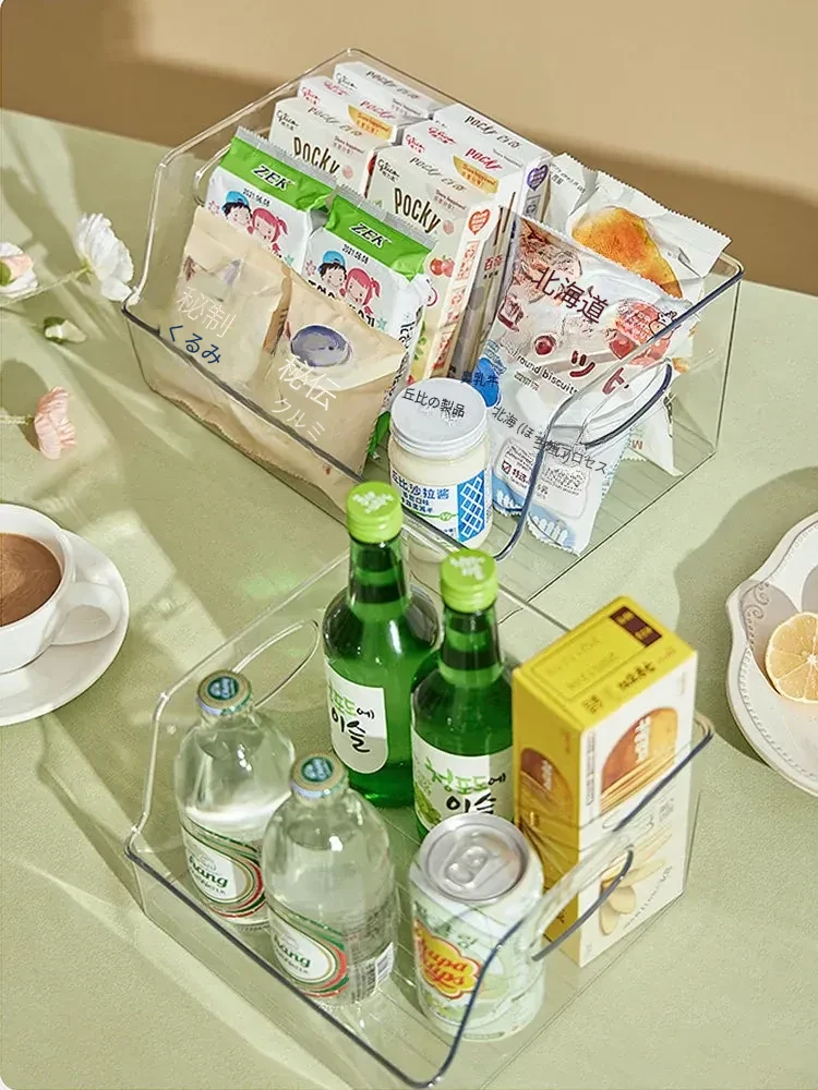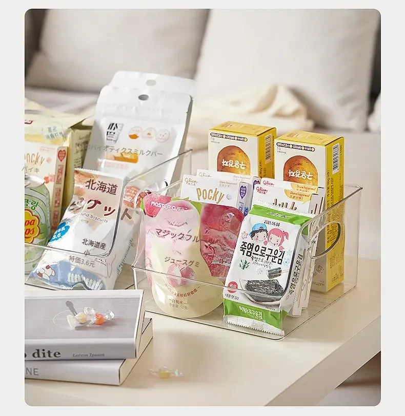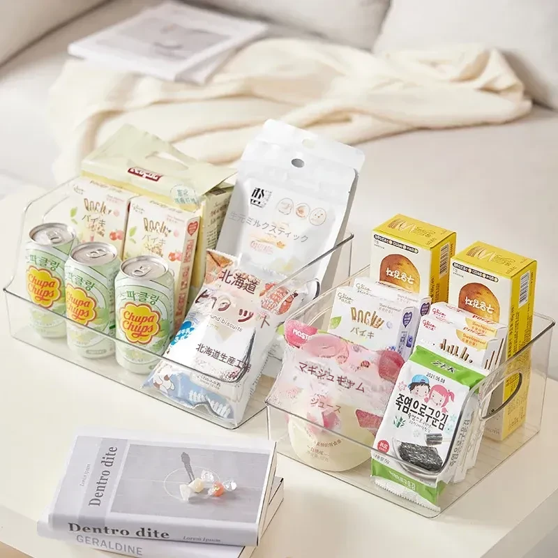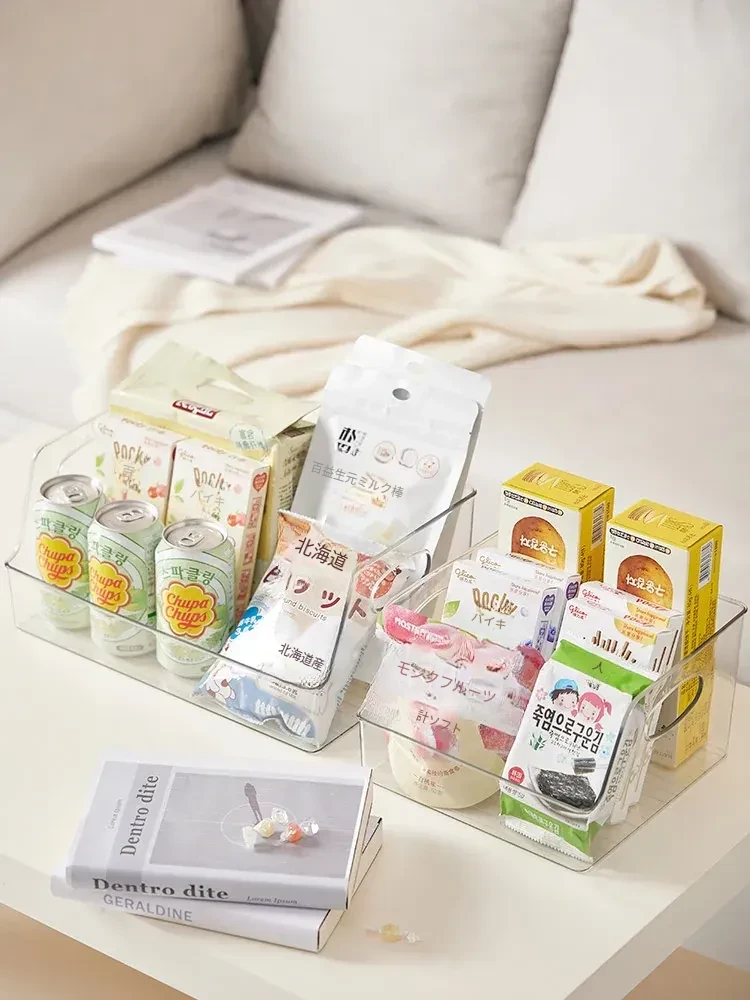 透明スナック収納ボックス - リビングのコーヒーテーブルやキッチンにぴったり!雑貨整理に最適な収納バスケット、本の整理にも役立つ便利アイテム!おしゃれで機能的な収納で、すっきりとした空間を実現!