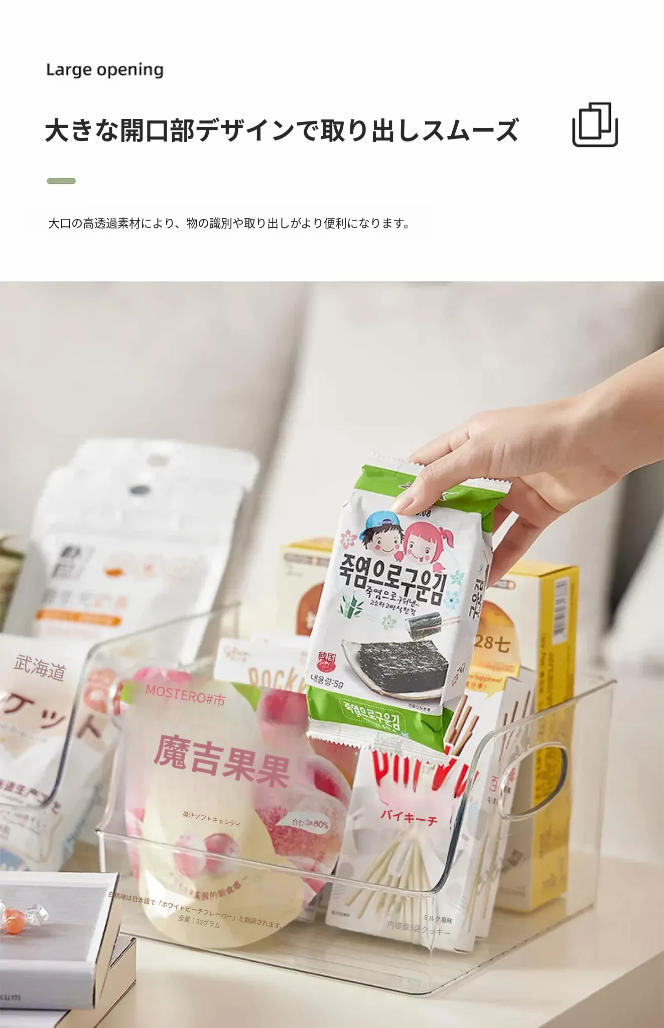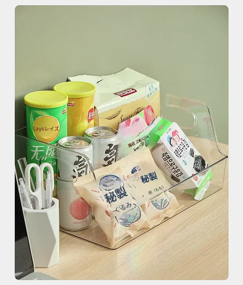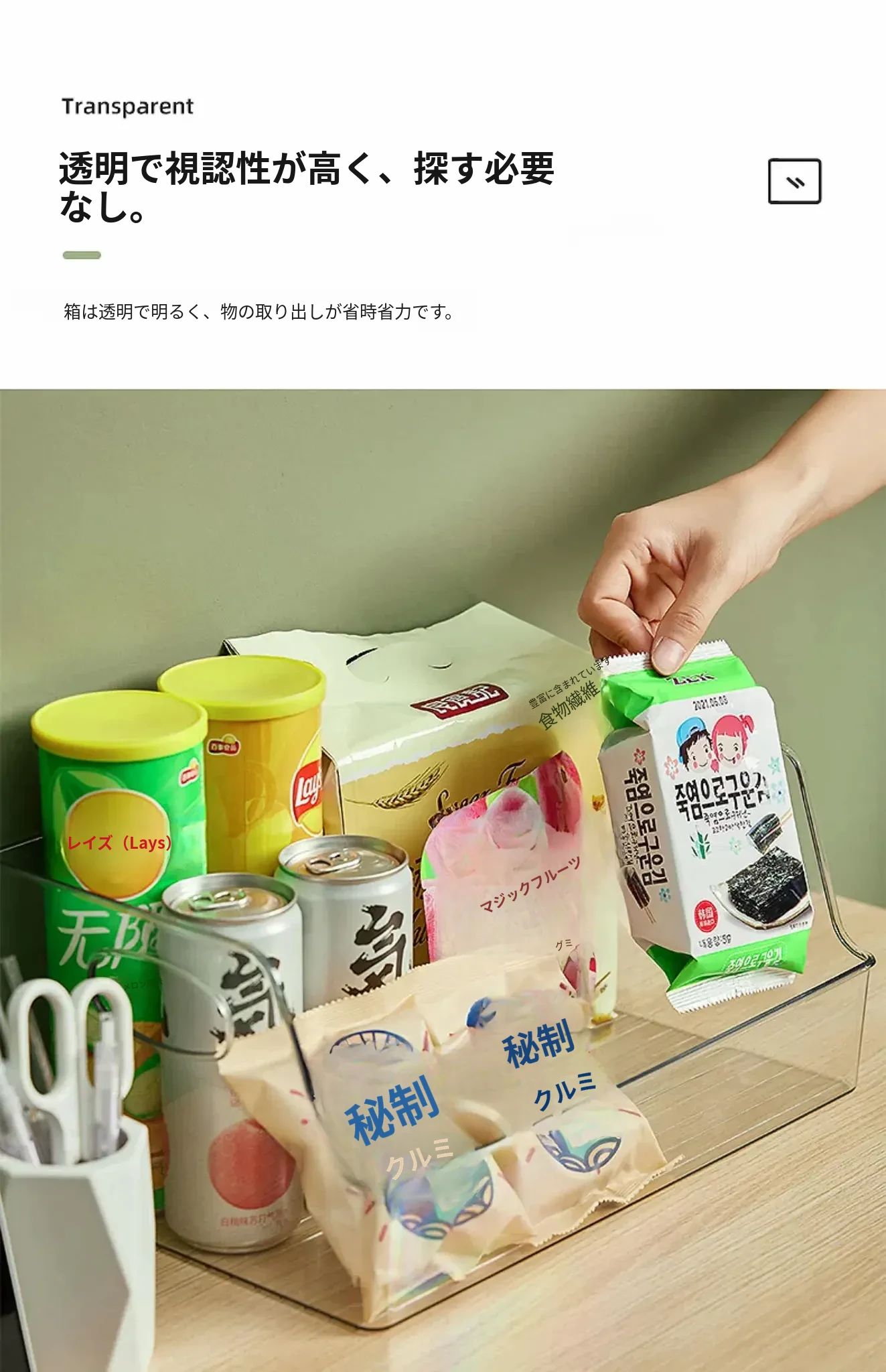 透明スナック収納ボックス - リビングのコーヒーテーブルやキッチンにぴったり!雑貨整理に最適な収納バスケット、本の整理にも役立つ便利アイテム!おしゃれで機能的な収納で、すっきりとした空間を実現!