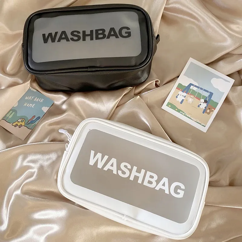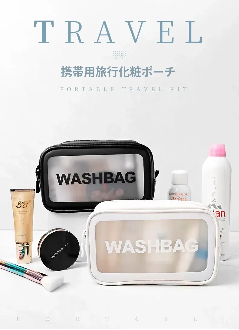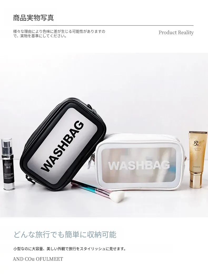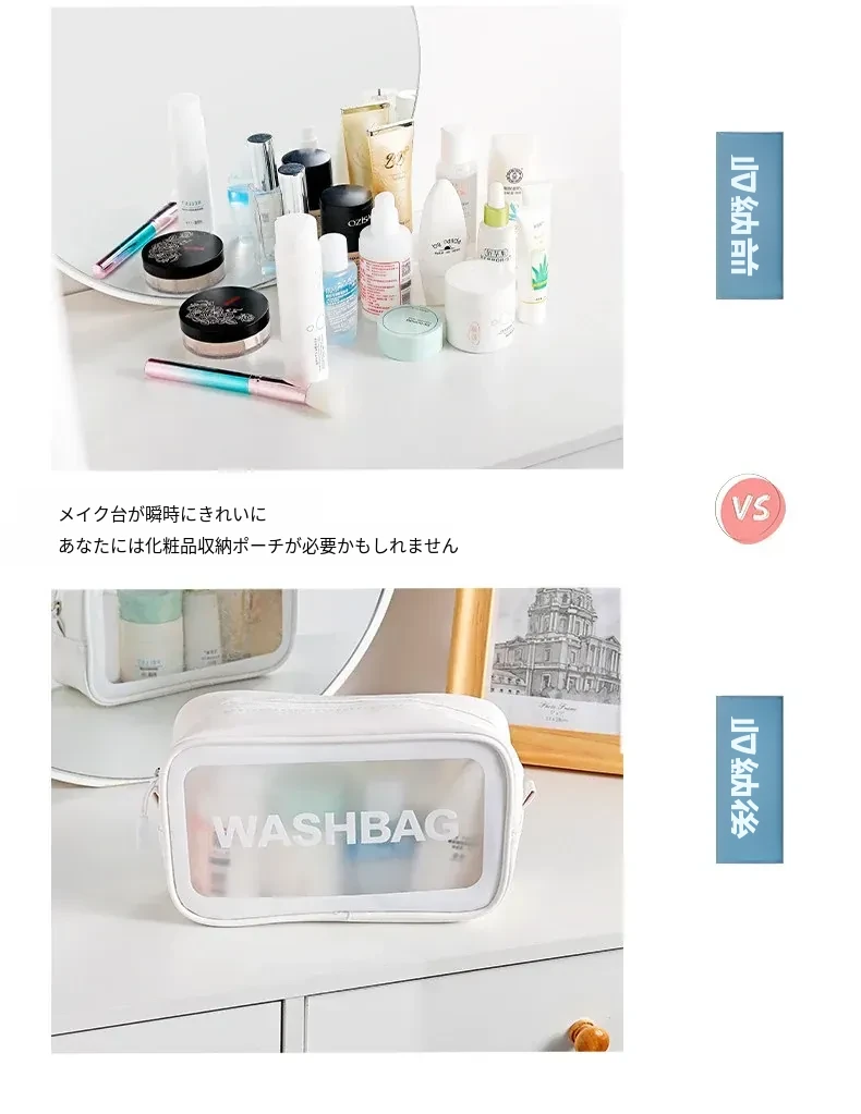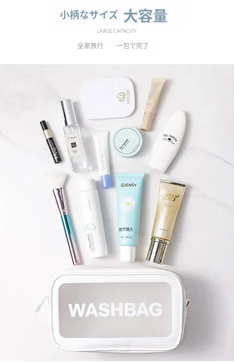 インスタ映えする大人気メイクポーチ!持ち運びに便利な透明デザインで、旅行にも最適。大容量でシンプルな洗面用具収納バッグ。おしゃれな整理整頓アイテムを手に入れよう!