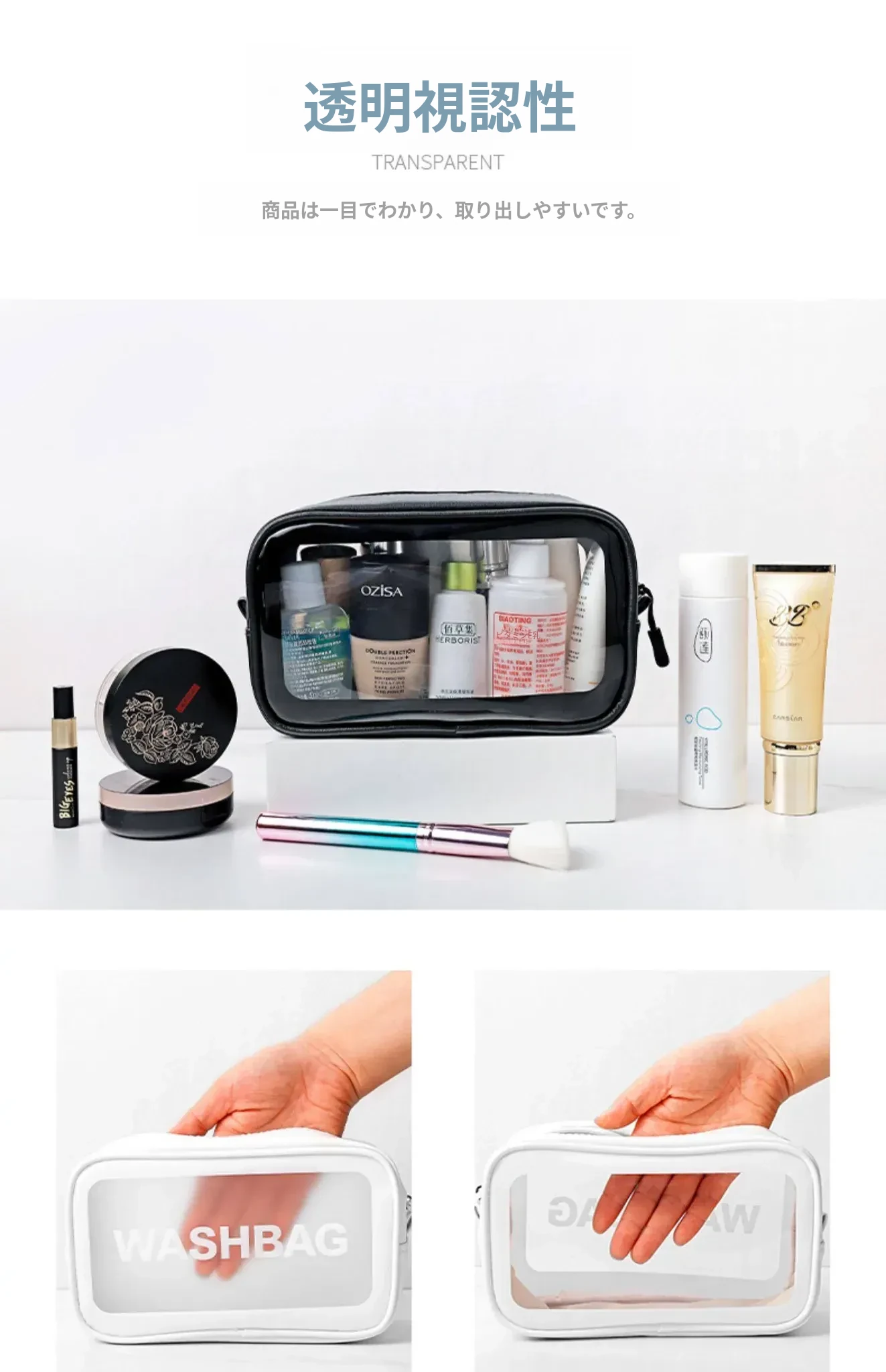 白色透明化粧ポーチ(持ち運びに便利な必需品)