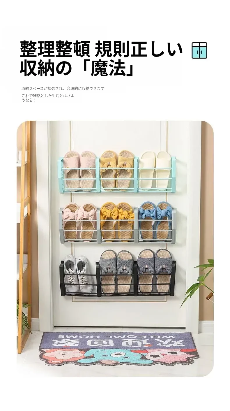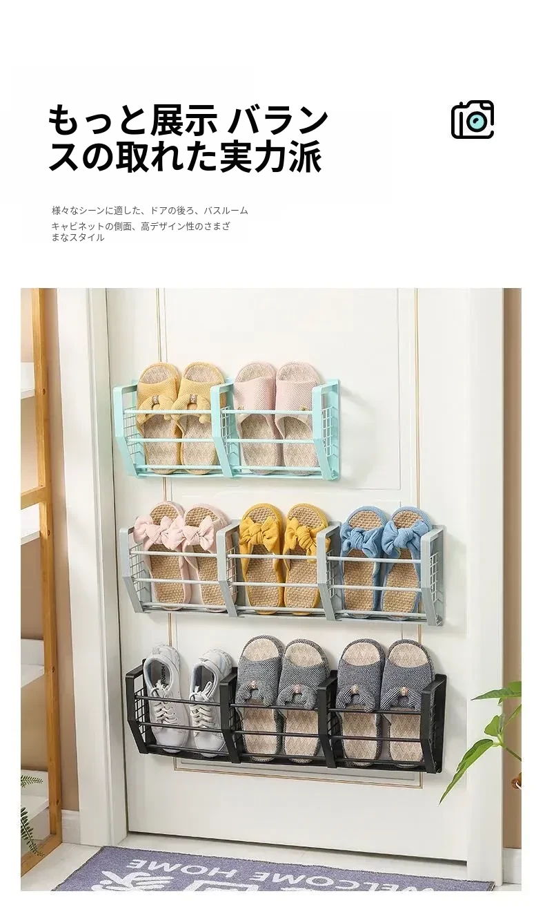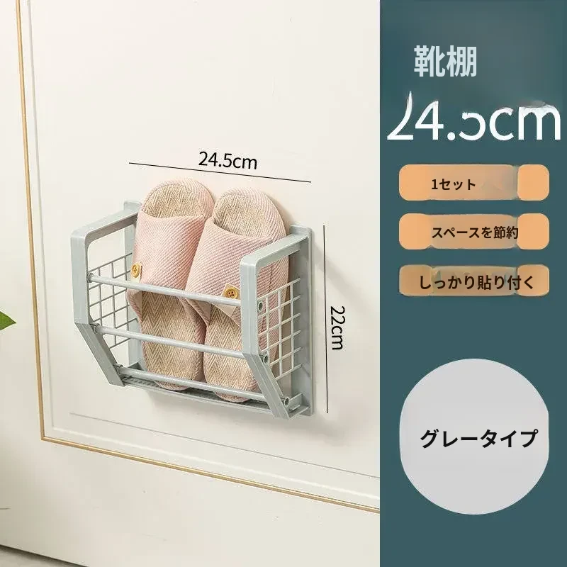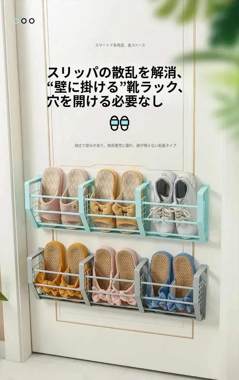 壁掛け式バスルームスリッパラック - トイレ用シューズ収納の必需品!ネジ不要で簡単取り付け、スペースを有効活用!衛生的でスッキリとしたバスルームを実現!
