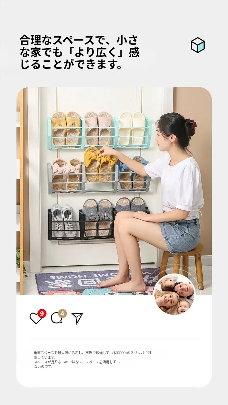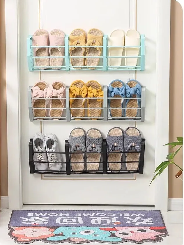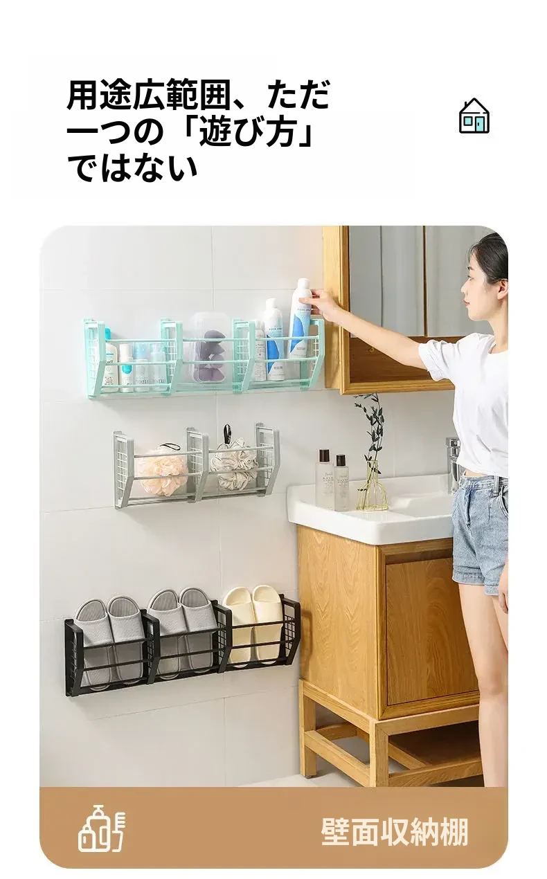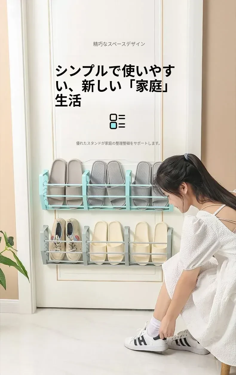 壁掛け式バスルームスリッパラック - トイレ用シューズ収納の必需品!ネジ不要で簡単取り付け、スペースを有効活用!衛生的でスッキリとしたバスルームを実現!