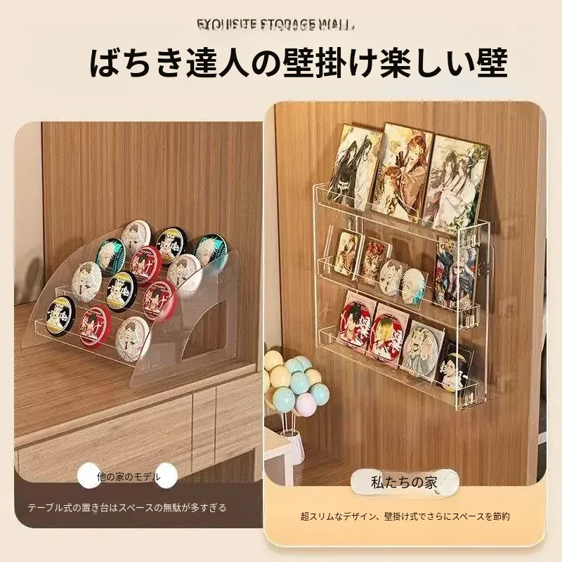 アクリル製カード&バッジディスプレイラック - 壁掛けタイプでお部屋をスタイリッシュに!デスク周りを整理整頓、かわいいアイテムの収納に最適!あなたの個性を引き立てる便利な収納アイテムです。