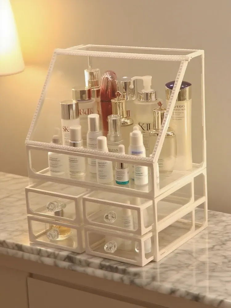 2025年最新!大容量化粧品収納ボックス - ホコリ防止、家庭用デスクトップルージュ&スキンケアアイテムに最適!おしゃれで便利なネットで話題の収納ラック!